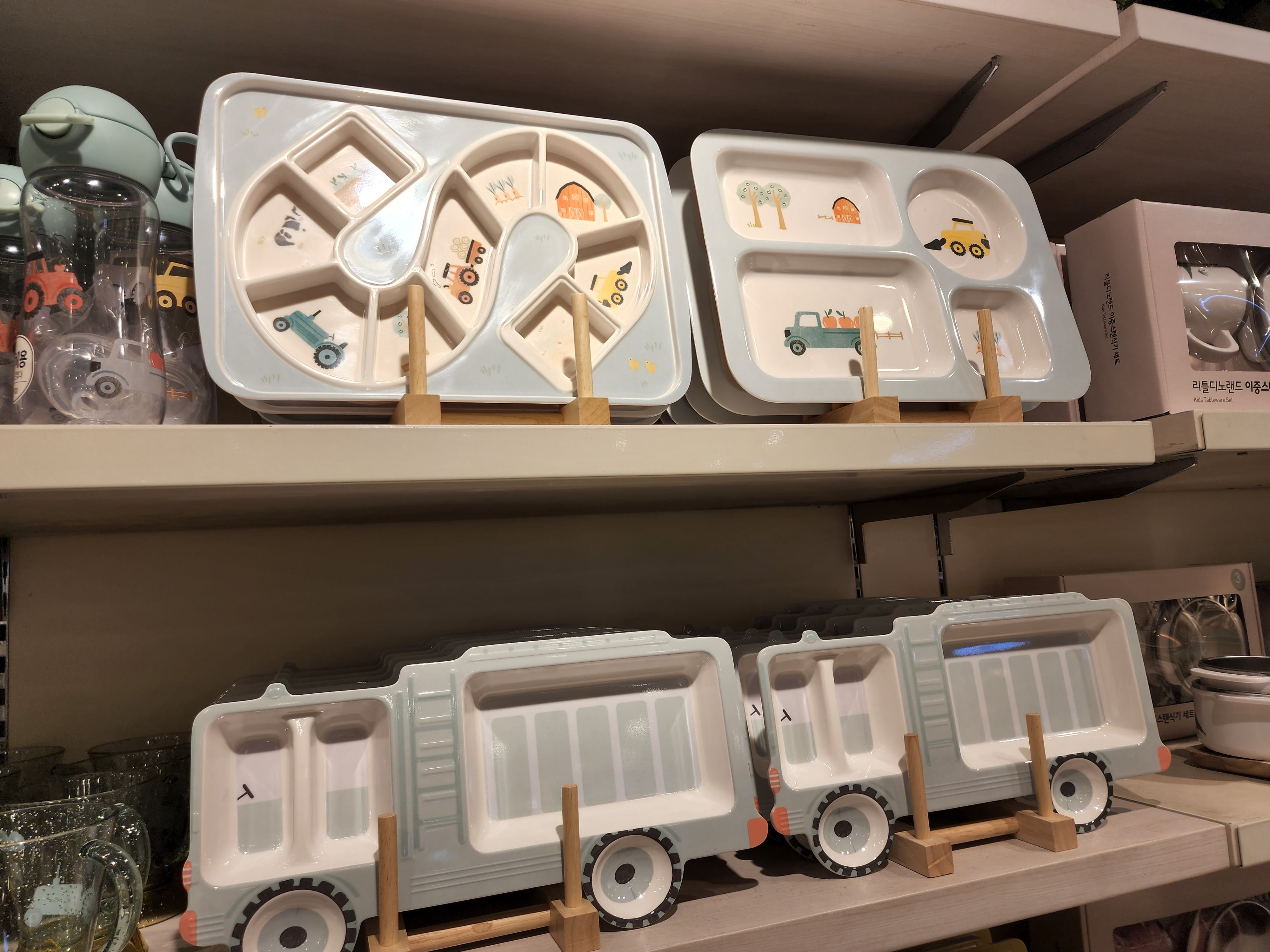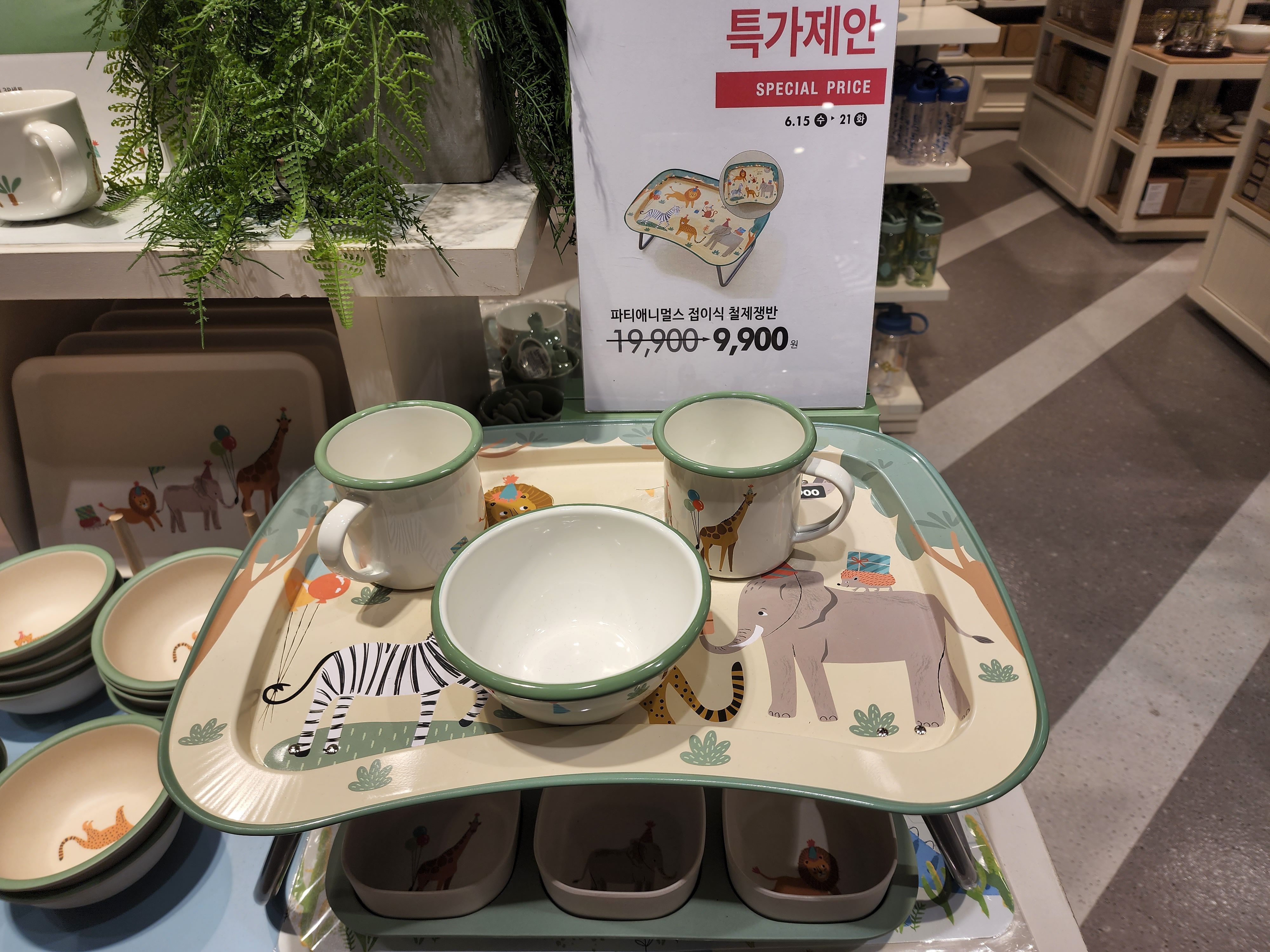 아기용 그릇과 소품도 있다. 귀여운 코끼리 철제쟁반과 그릇들!