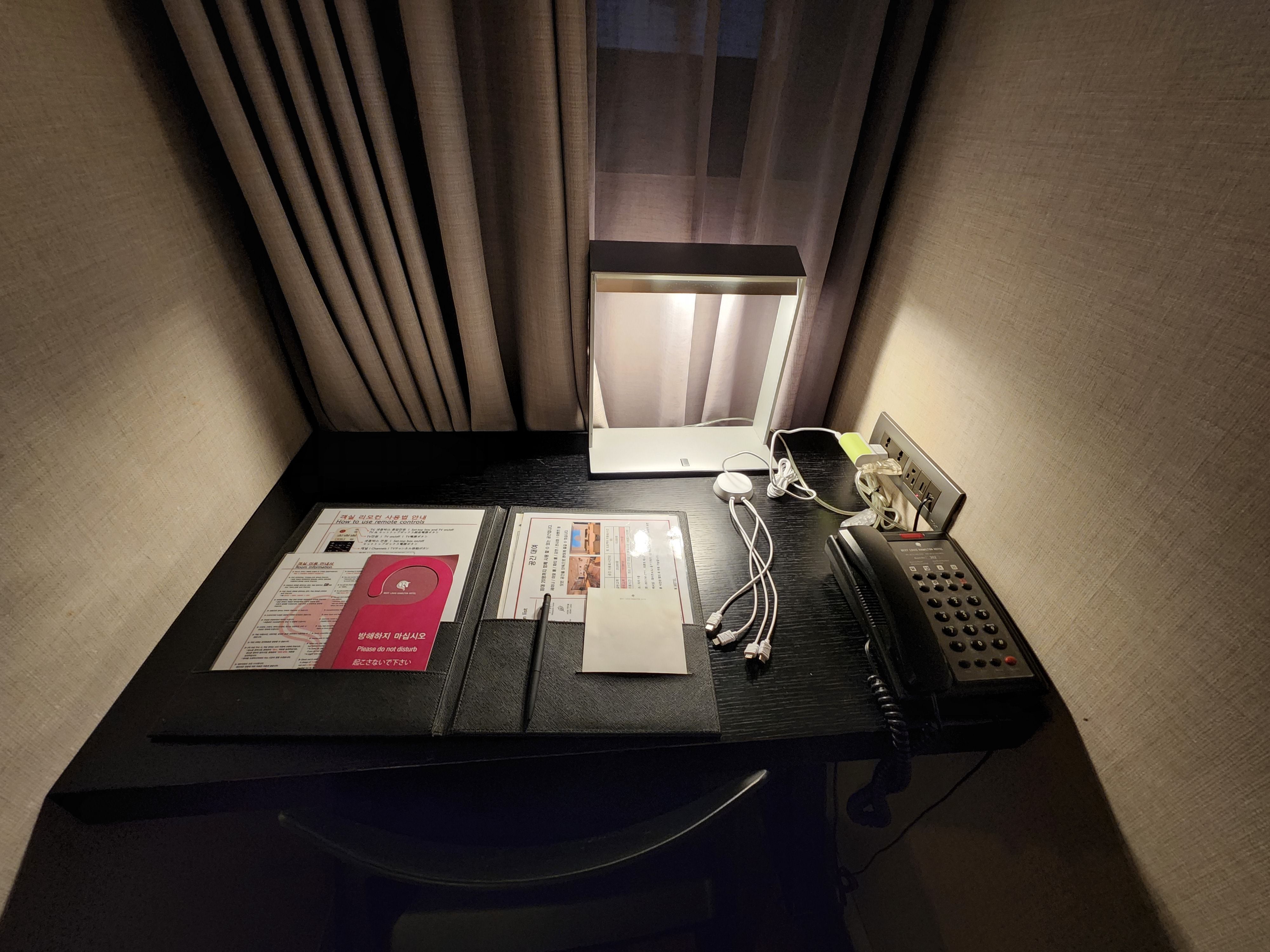 어매니티에 대해 말씀드리면, 있을 건 다! 잘! 준비되어있다. 핸드폰 충전기도 있어서 굉장히 편리하고, 샴푸/린스/샤워젤, 칫솔&치약, 비누, 빗, 물, 가운, 슬리퍼 다 있다. 수건도 충분히 잘 준비되어있어서 전반적으로는 마음에 들었다.