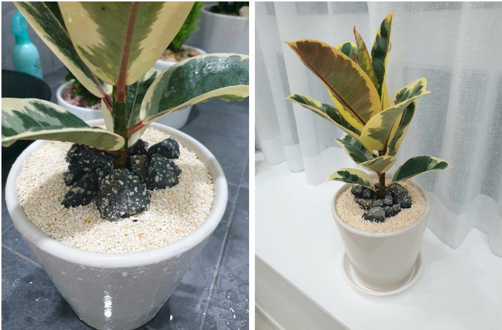 사실 수채화고무나무는 분갈이 해주시는 분이 보시더니 아직 화분에 뿌리가 나오거나 한 건 아니고 수채화고무나무는 성장이 엄청 빠른 건 아니라 분갈이가 시급한 건 아니라고 하셨는데 그래도 온 김에 조금 넓은 곳으로 옮겨주었다. 더 무럭무럭 자라자! 예쁜 수채화고무나무야💚