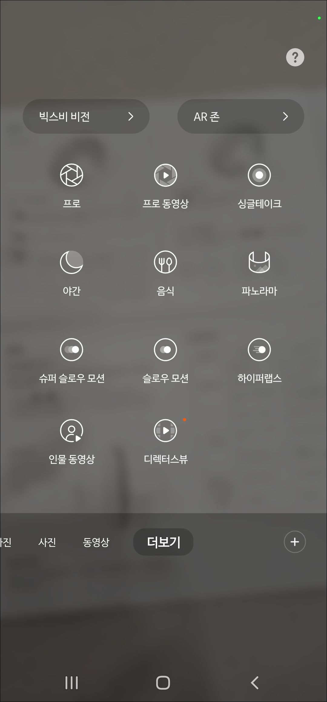 카메라를 켜고 '더보기' 클릭 후 '빅스비 비전'을 클릭하면 자동으로 번역이 된다. 완전 자연스러운 번역은 아니지만 카메라에 보이는 화면이 바로 번역이 되니 완전 편했다.