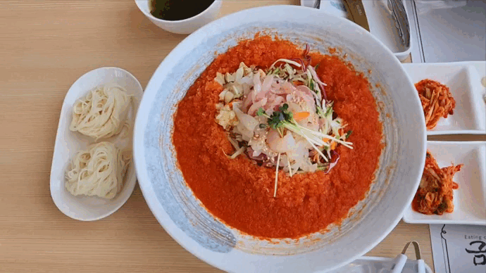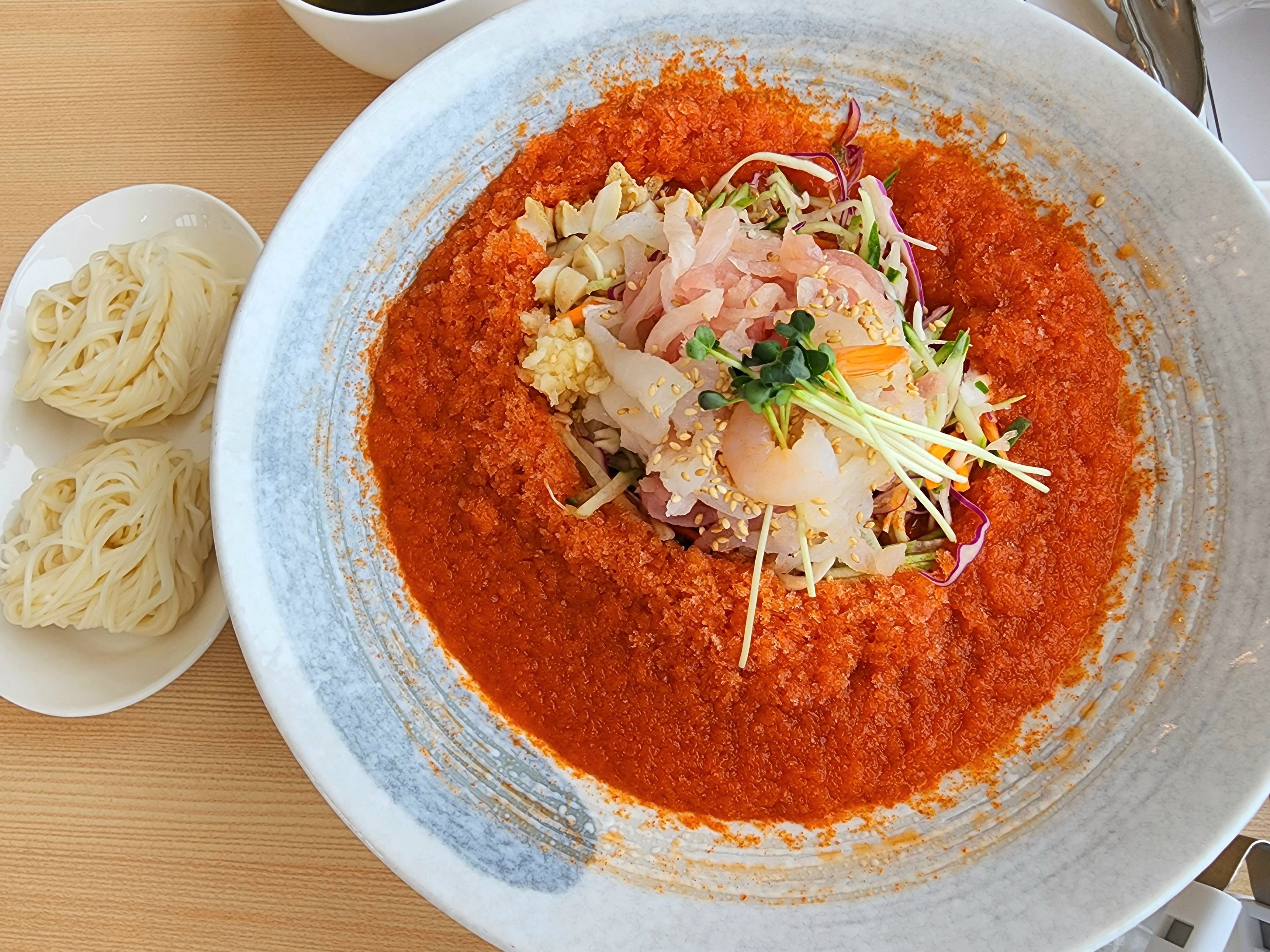 1. 물회 : 소면도 2개나 같이 나오고 시원하게 먹기 딱 좋다! 메인으로 먹기보다는 하나 시켜서 나눠먹으면 좋다👍