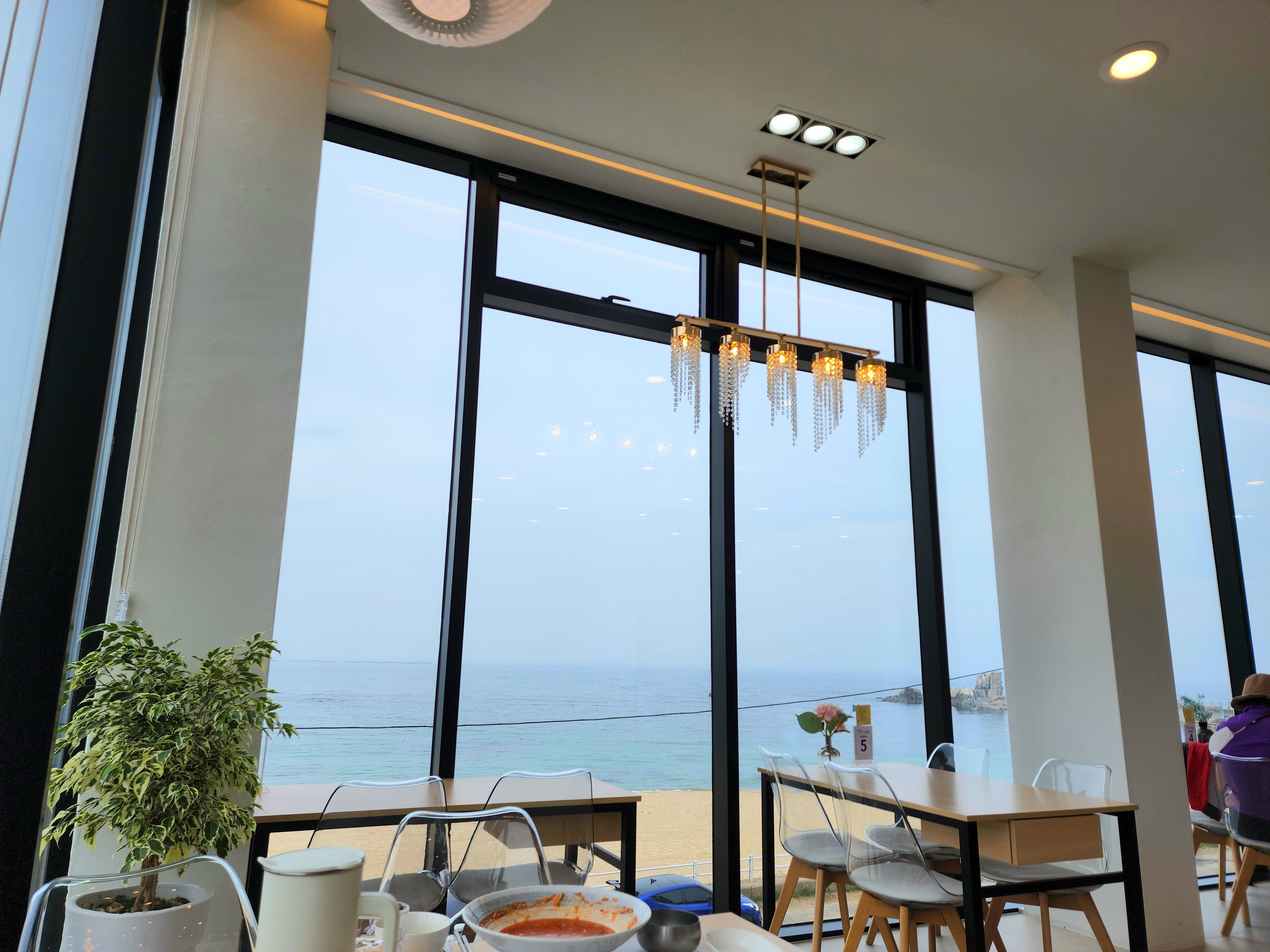 덕분에 창가자리는 비어있지 않아서 나는 안쪽 테이블에 자리를 잡았다. 그래도 여러분들께 바다뷰는 꼭 보여드리고 싶어서 아래 사진과 같은 느낌이라 생각해주시면 됩니다!