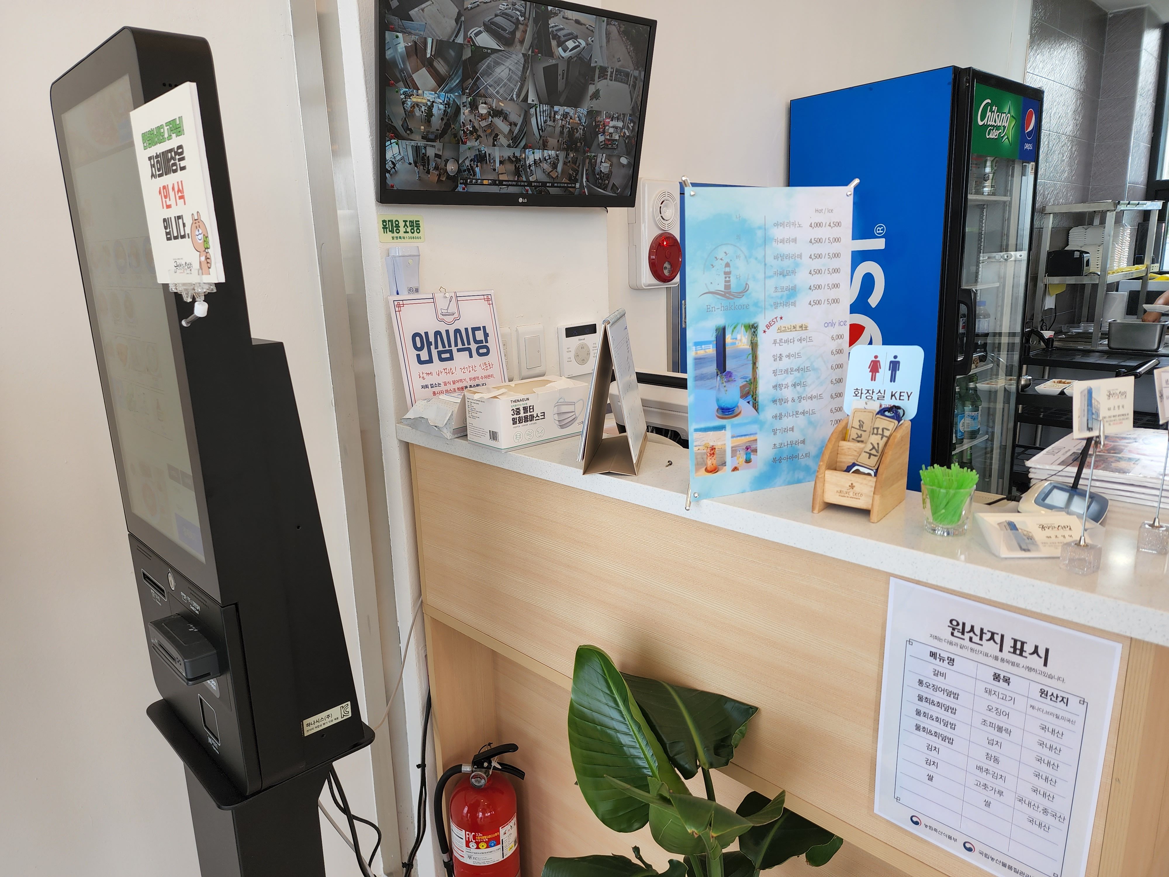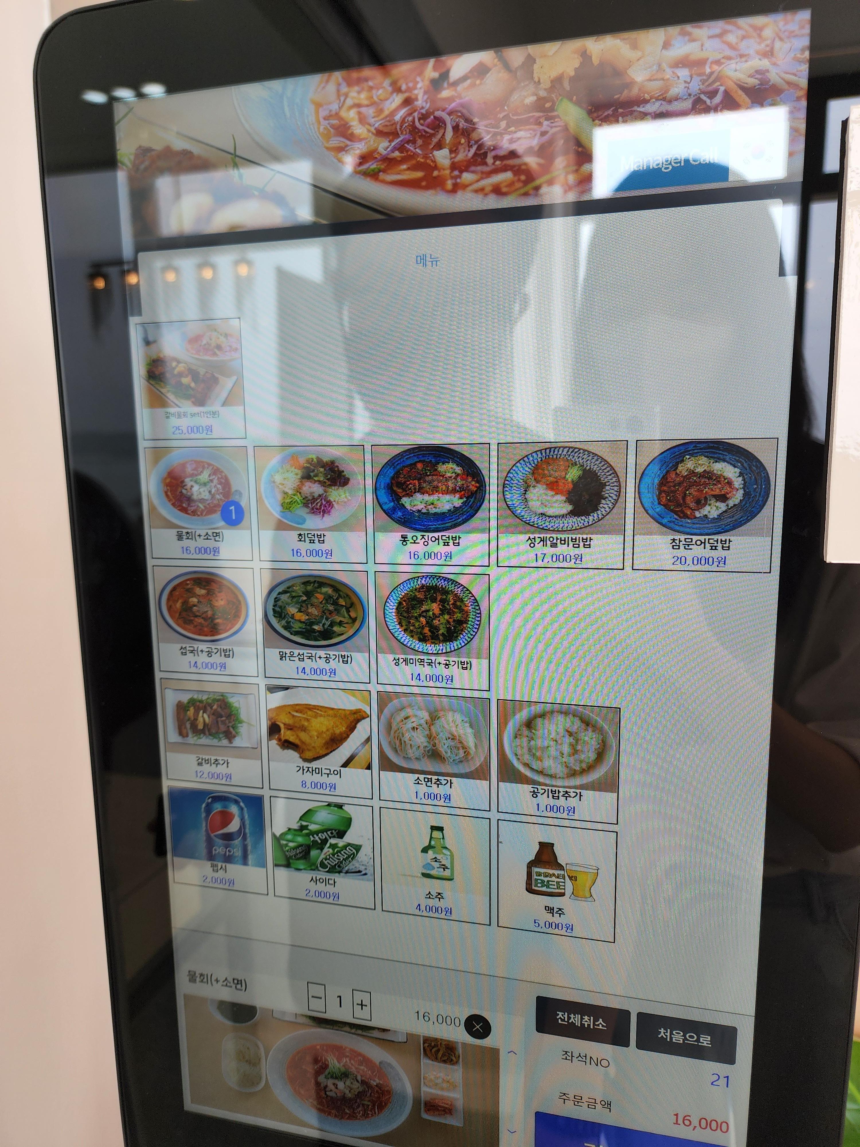 뷰에 눈을 빼앗겨서 구경을 좀 하고 주문을 하기로 했다. 입구에 있는 키오스크에서 주문을 하면 되는데 내 경우는 주문이 어렵지 않았지만 해당 방식이 어색한 어르신분들은 조금 어색하실 수도 있겠다는 생각이 들었다. 그래도 친절한 종업원분들이 도움 주실 거라서 크게 걱정하진 않으셔도 될 것 같다.