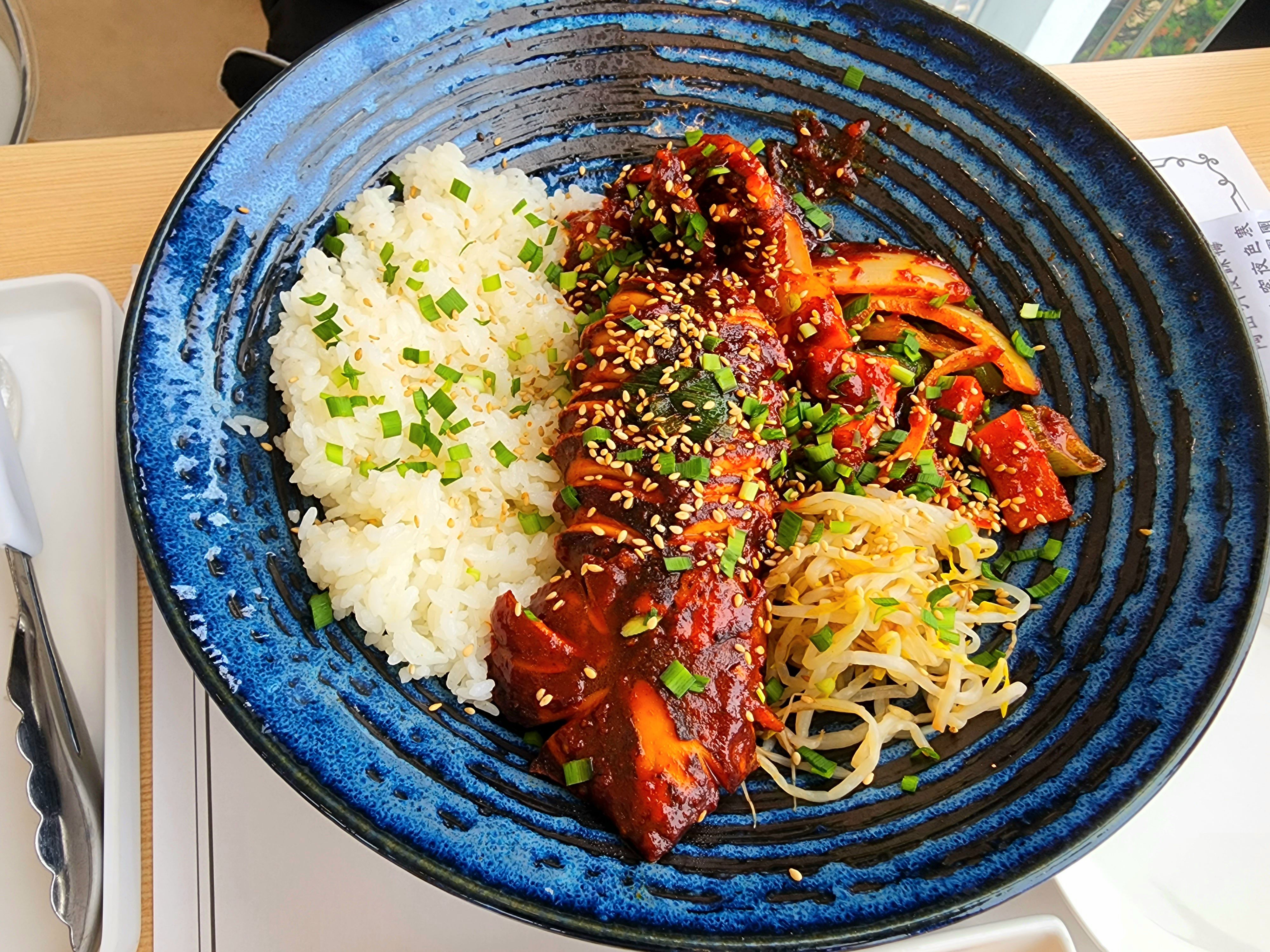 2. 통오징어덮밥 : 불맛도 나고 약간 매운 편이다. 친구의 최애 메뉴! 오징어가 통으로 나오고 오징어가 진짜 맛있다.