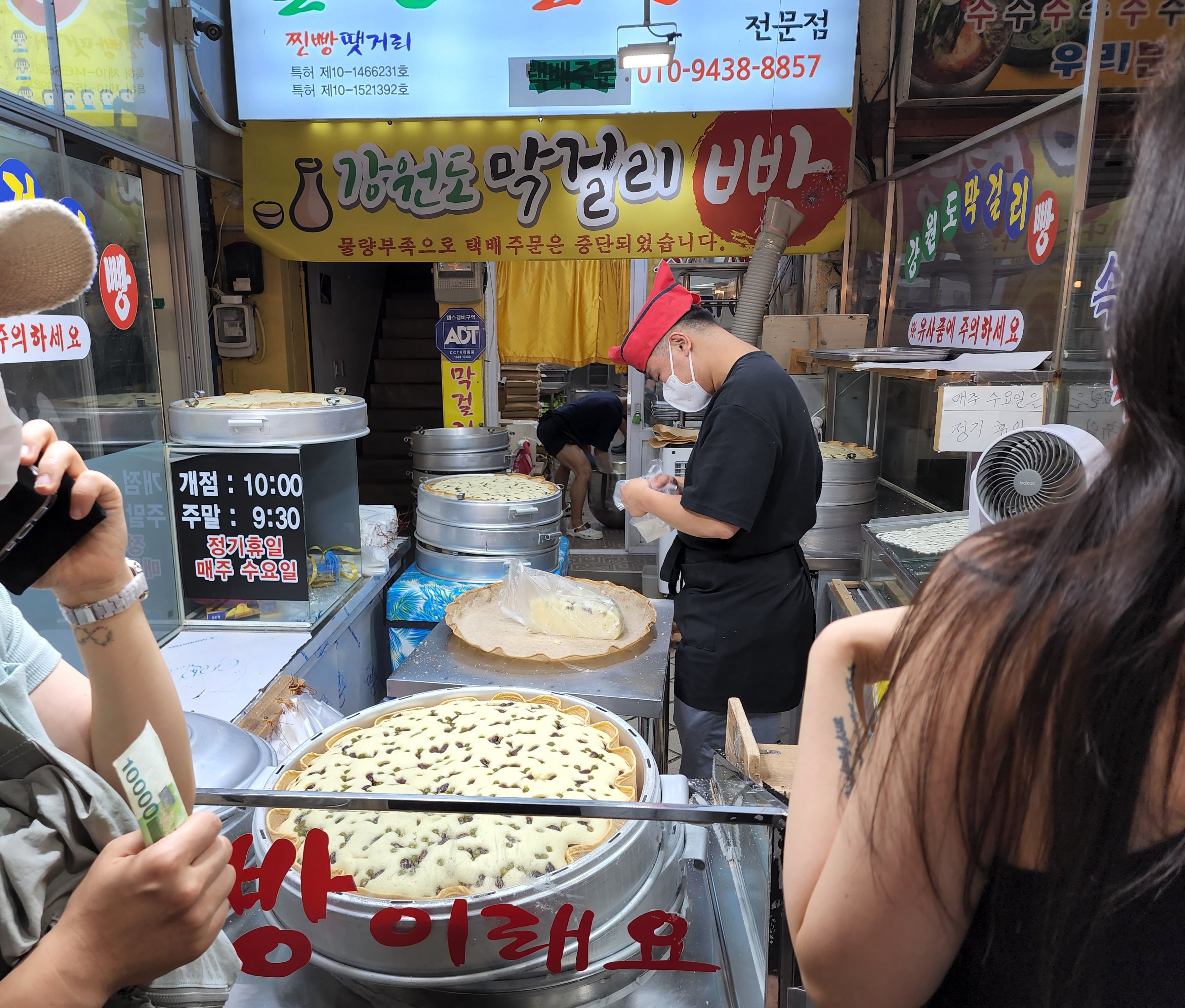 이번에 처음 본 곳인데 바로 막걸리빵(술빵)을 사는 곳이었다. 여긴 평일, 주말 상관없이 계~~속 사람이 많았다. 얼마나 맛있는지 궁금해서 나도 사서 먹어봤는데 이건 조금 있다 자세히 이야기하는 걸로...!