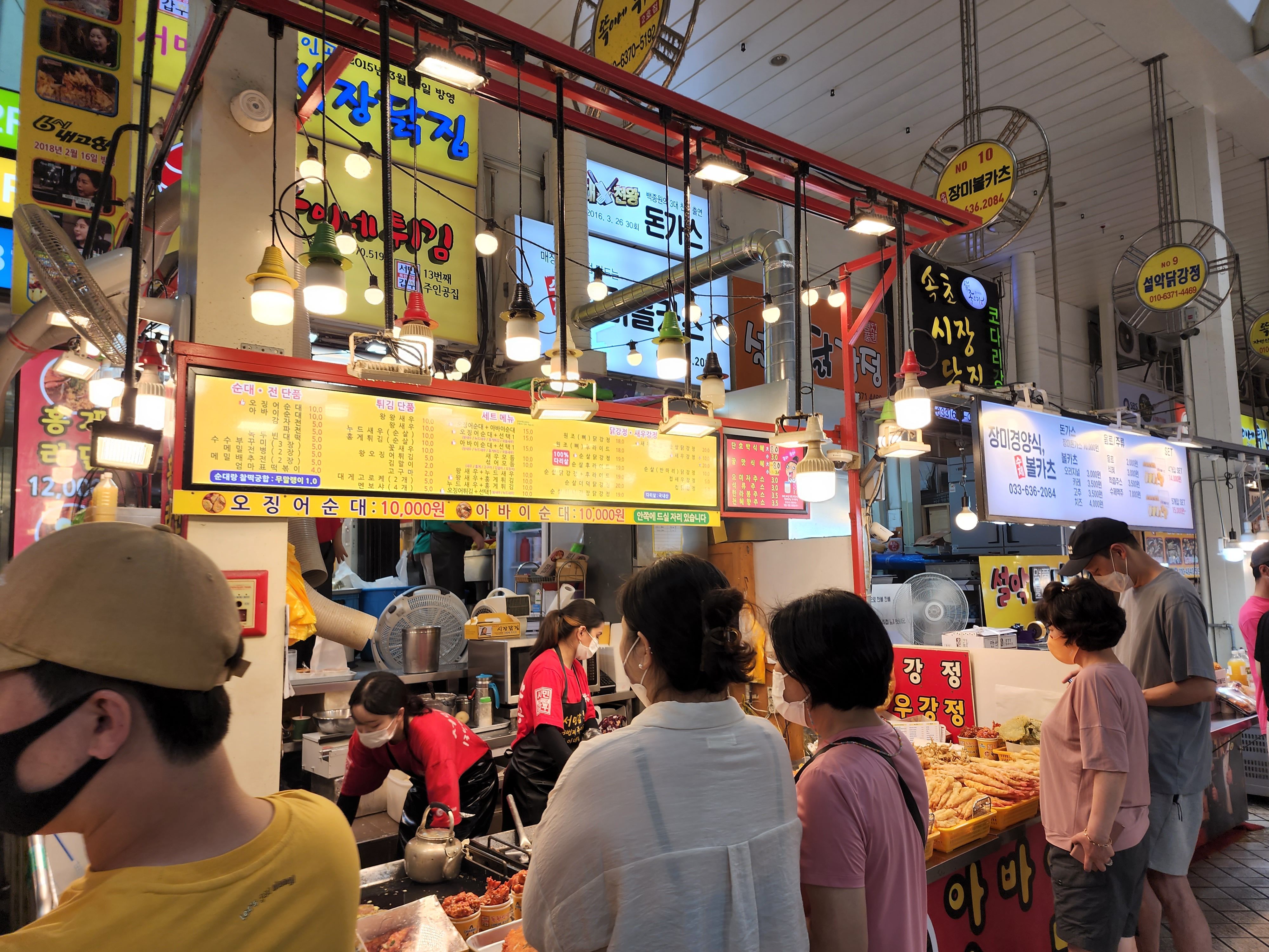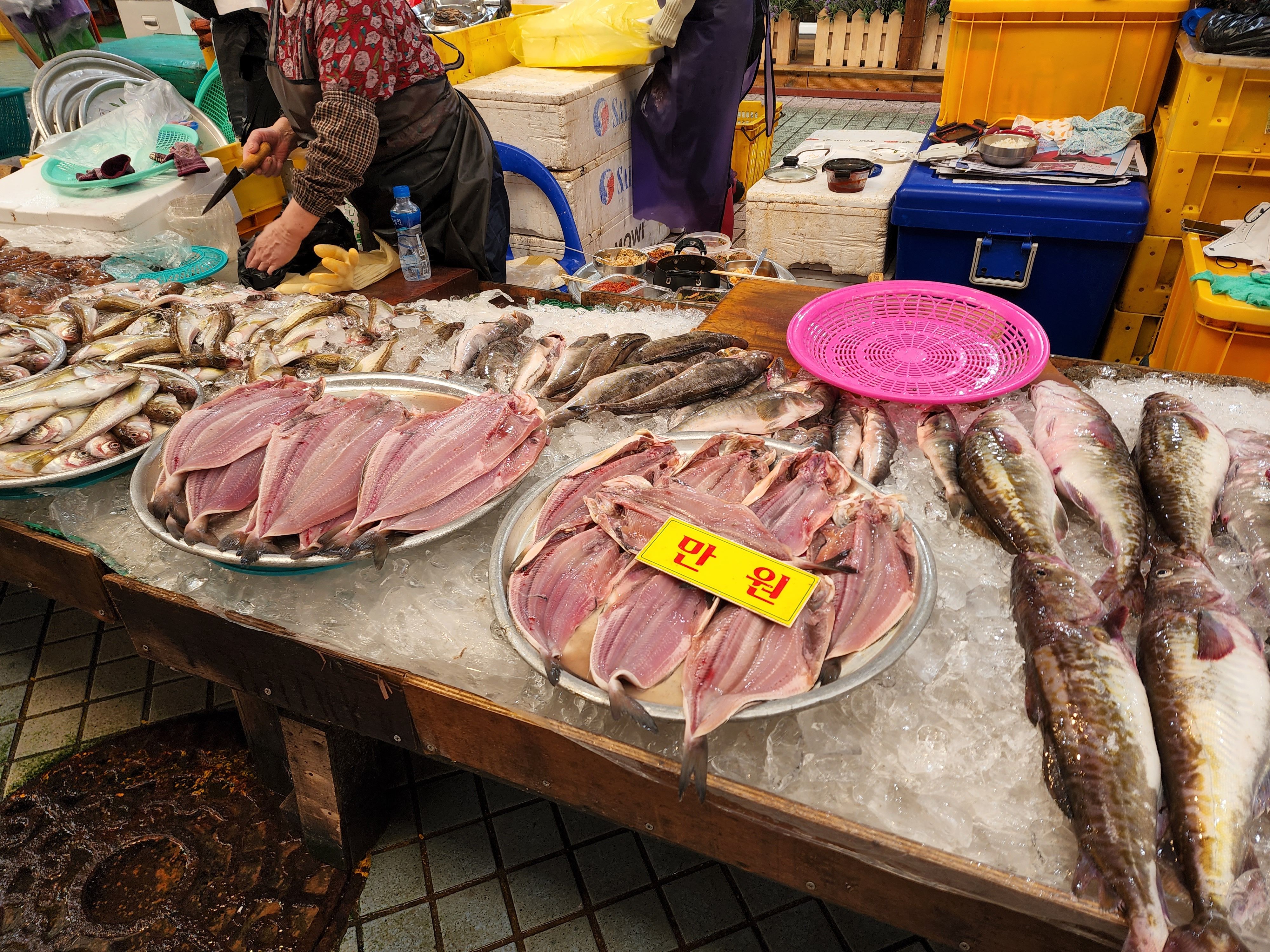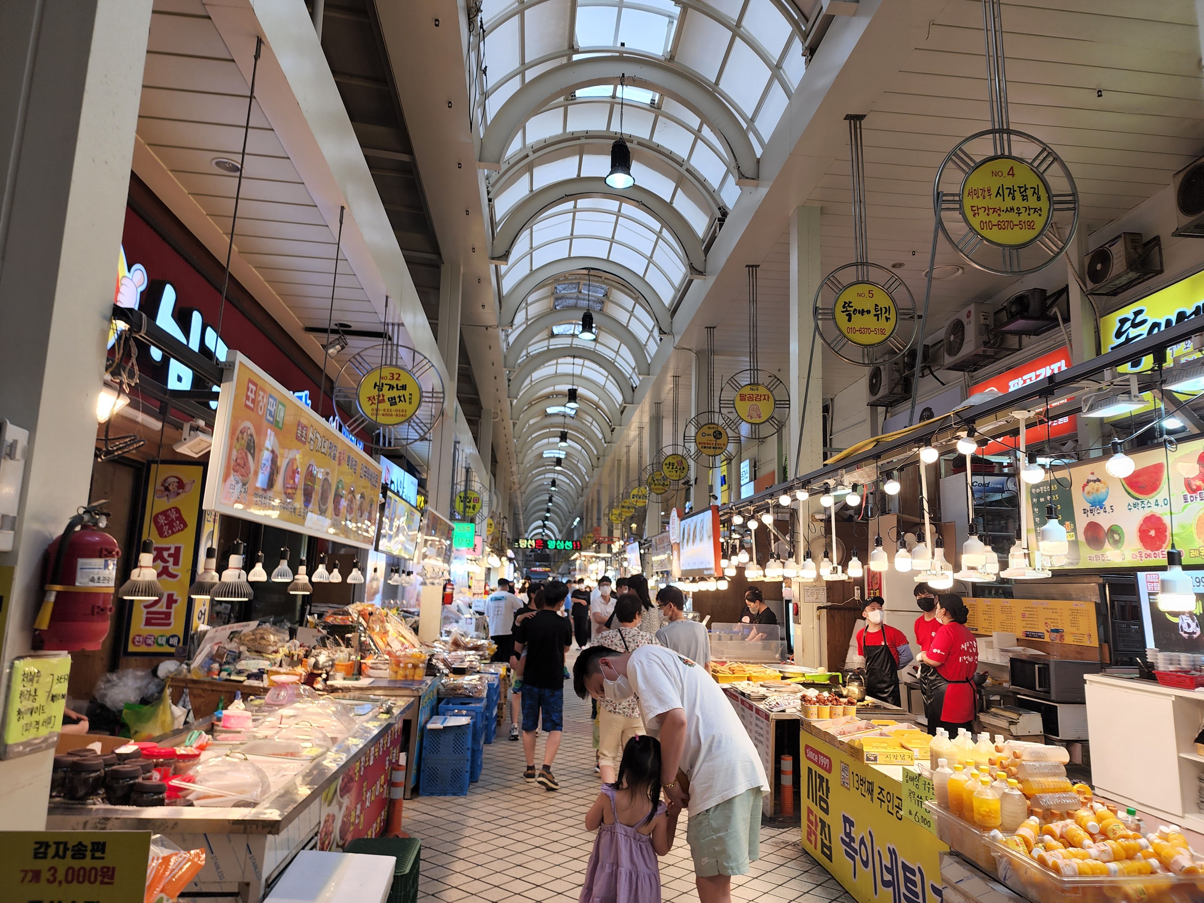 지난 글에 쓴 것처럼 7월 초에 강원도 고성 여행을 다녀왔다. 고성은 속초와 무척 가까운 편이라 (사실 거리가 가까운 건 아닌데 차가 많지 않다 보니 진짜 쉽게 왔다 갔다 할 수 있다😆) 고성 여행기간 동안 저녁 간식을 사러, 가족들에게 사다 줄 기념 먹거리(?!)를 사러 속초 관광수산시장/속초 중앙시장을 두 번이나 갔었다. 한 번은 평일, 한 번은 토요일이었는데 / 한 번은 낮, 한 번은 저녁이라 시장 곳곳을 잘 구경할 수 있었다. 오늘은 그 이야기를 들려드리려고 한다!