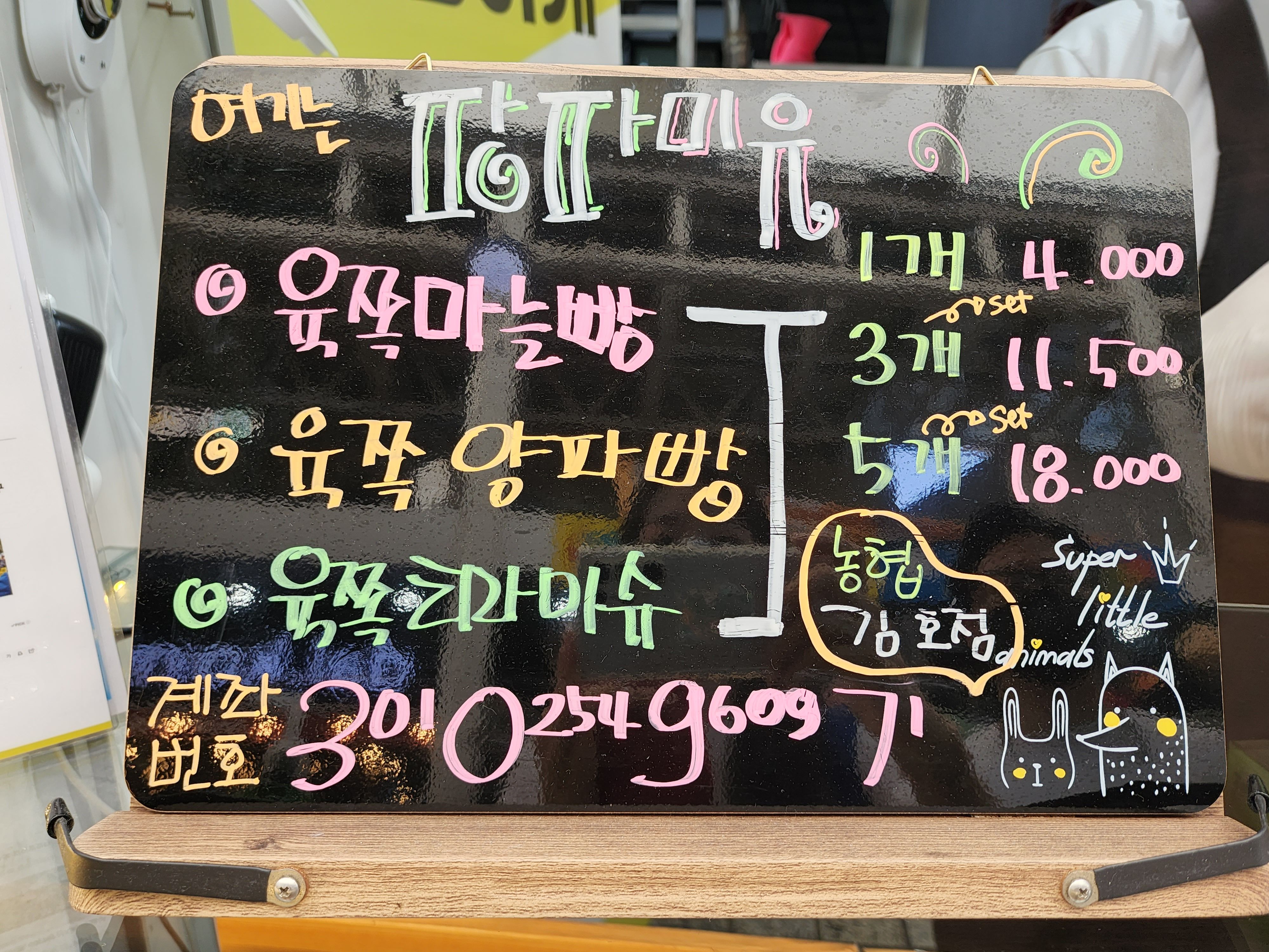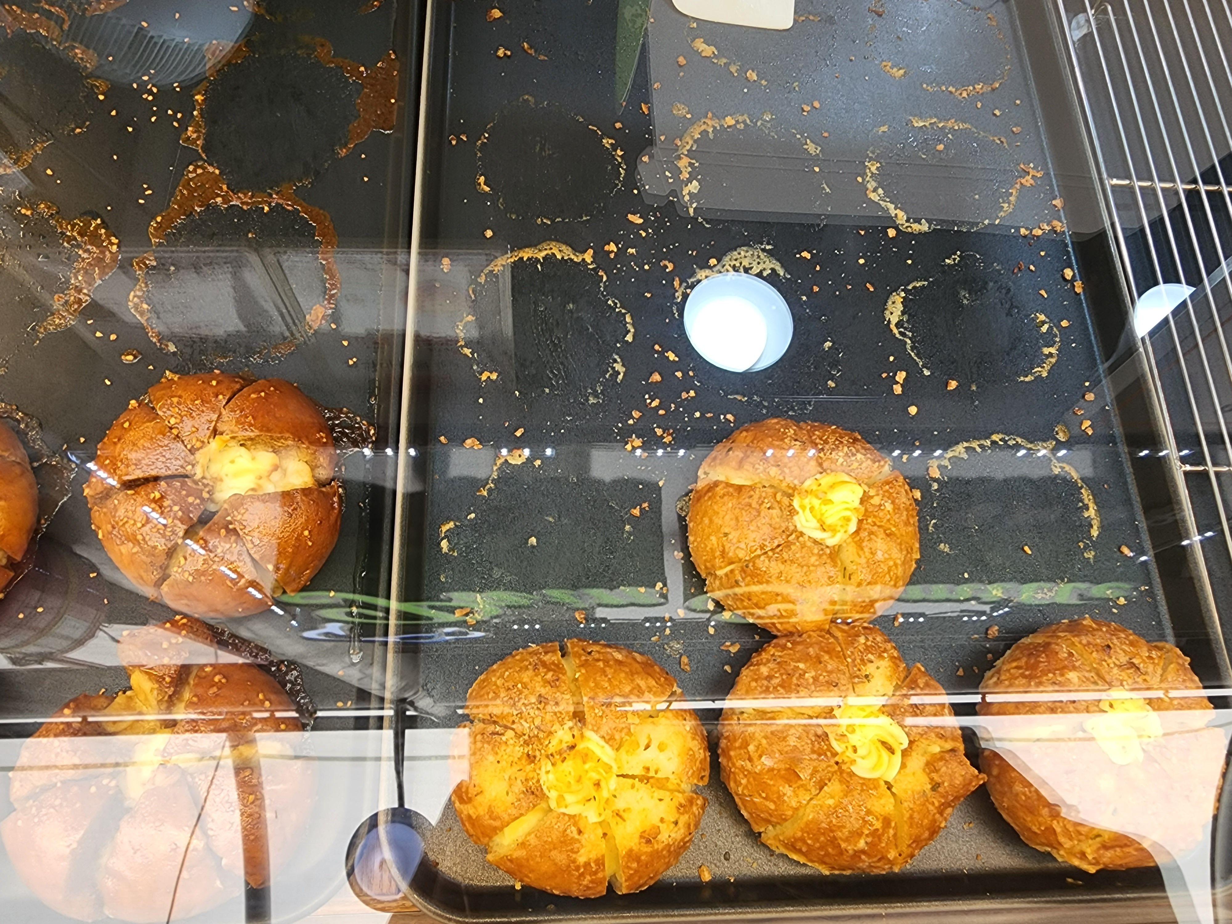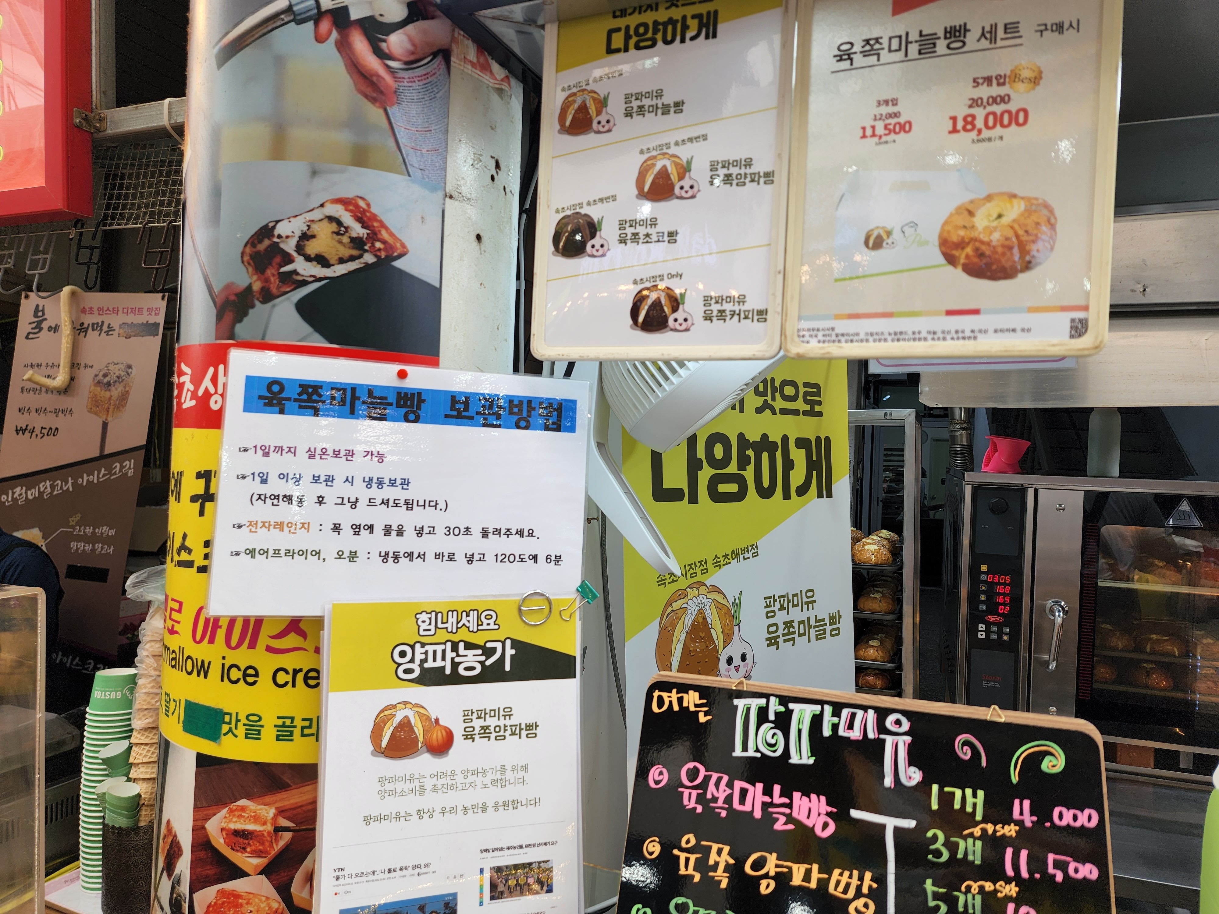 예전에는 마늘빵 1종류였던 것 같은데 마늘빵, 양파빵, 티라미슈, 초코빵 총 4가지 맛으로 늘어났고 속초에는 초코를 제외한 나머지 3가지를 판매하였다. 이왕 사는 김에 나는 5개 세트로 구매했다. 냉동 보관도 가능해서😁