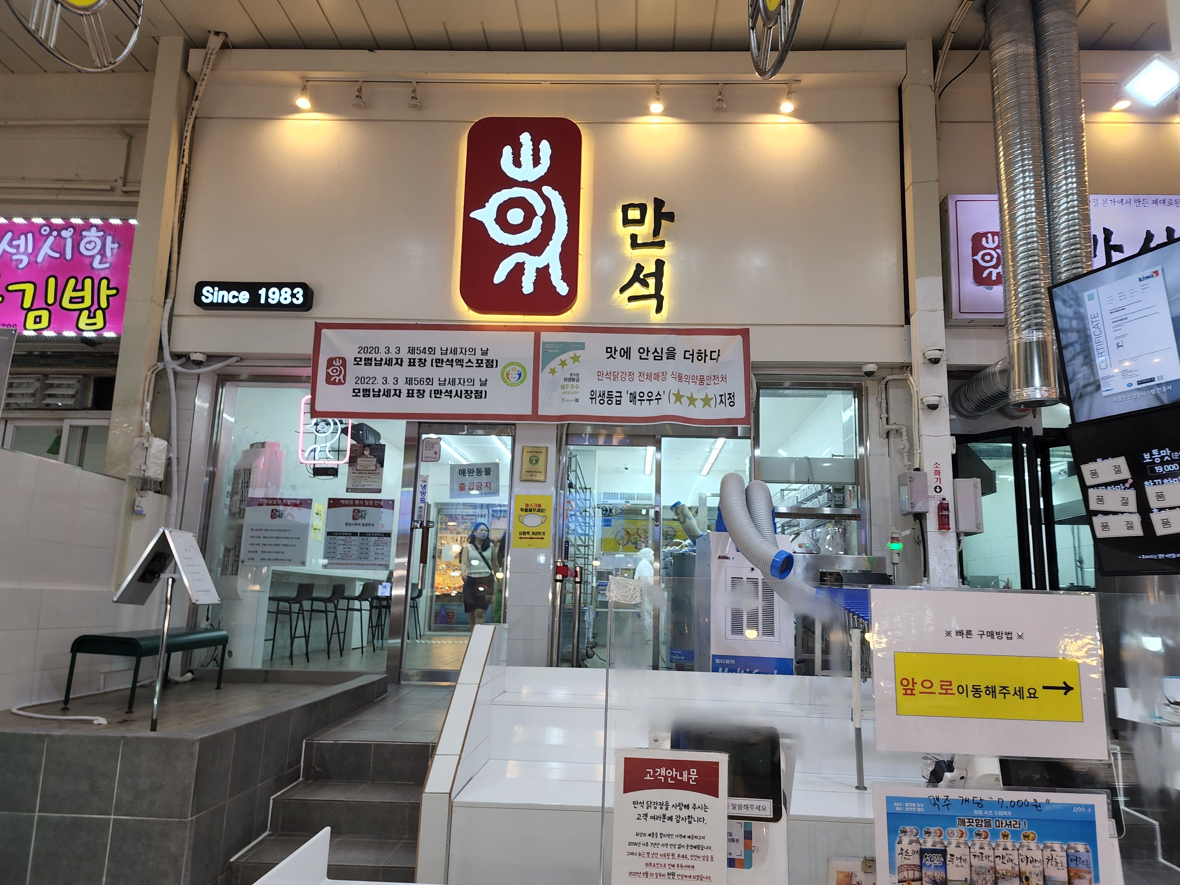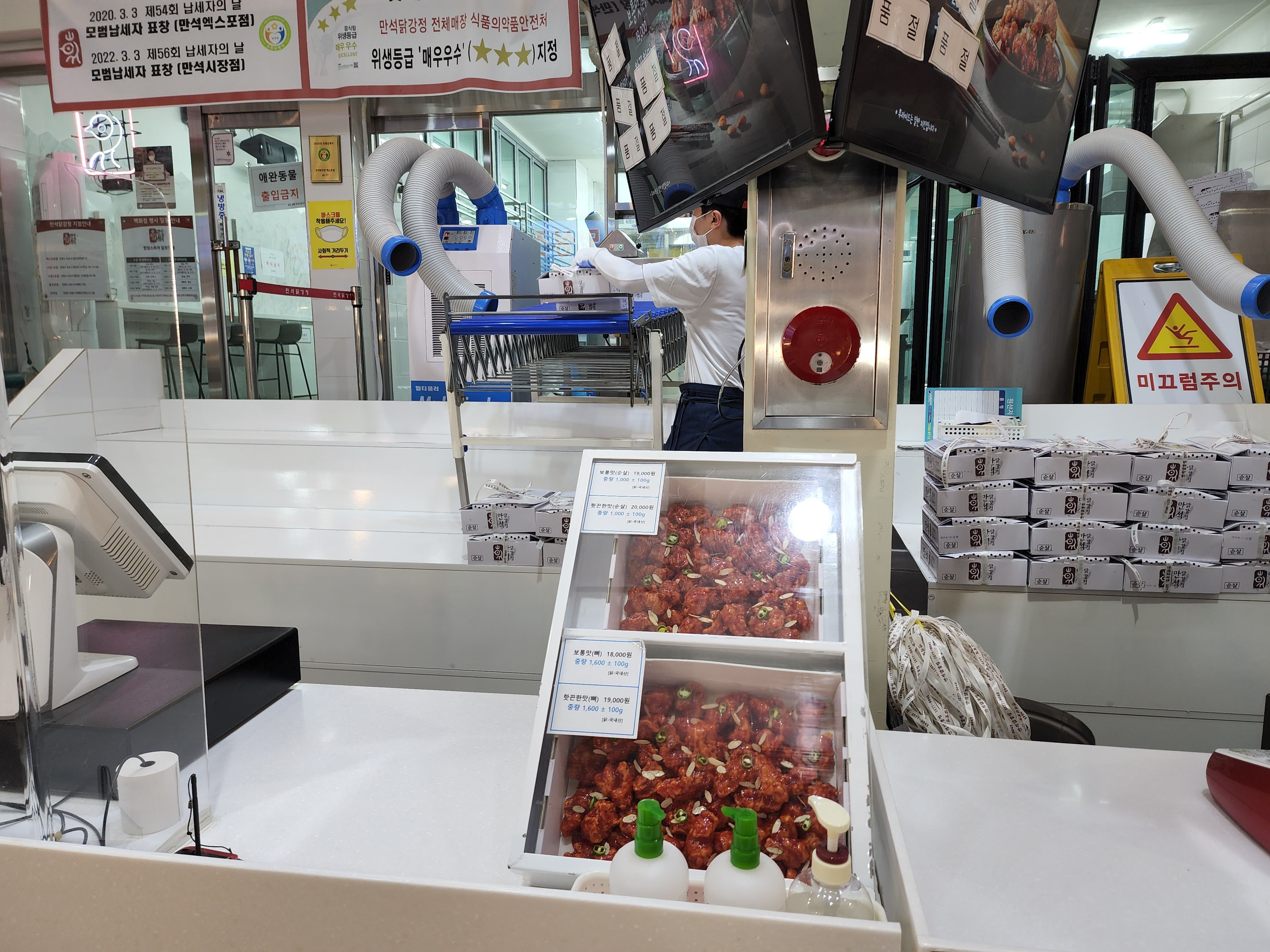 유명한 닭강정집 중 하나인 만석닭강정! 여기는 우오~ 이제는 거의 공장이다. 컨베이어 벨트가 계속 돌아가고 있었고 사람들이 그냥 척척척 계산만 해주셨다. 대부분 맛은 품절인 점(선택지가 없음😨)은 조금 아쉬웠다.