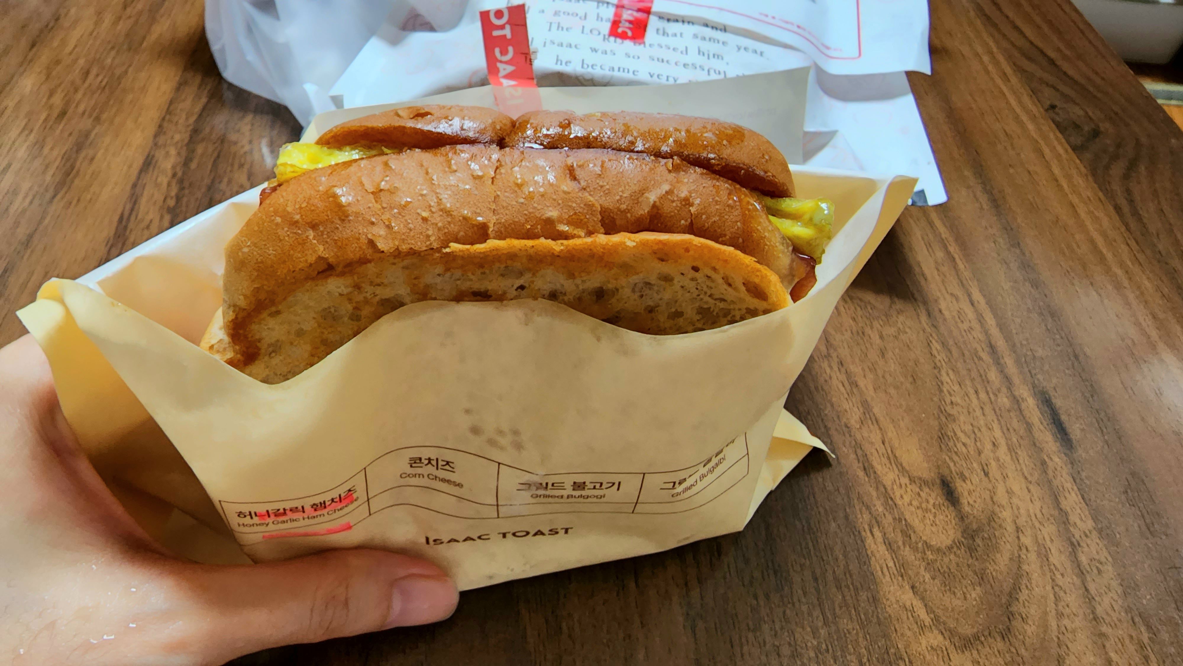 어찌 되었든 이삭토스트는 참 맛있는 곳이다. 햄치즈는 진리고 거기서 하나 더 추천한다면 허니갈릭브레드, 하나 더 추천하자면 베이컨치즈베이글 추천하고 싶다. 나는 이 3가지가 가장 맛있었다👍