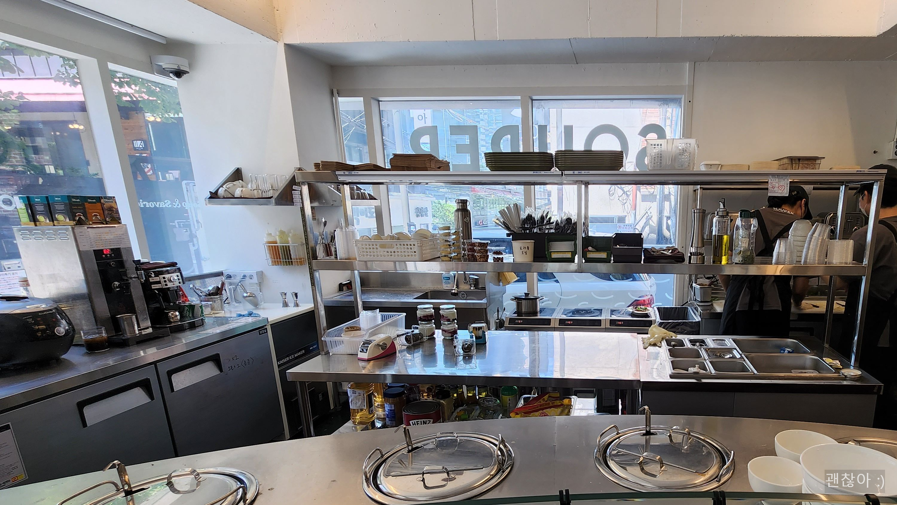 주방 쪽 모습! 오픈형 주방이라 안이 잘 보이고 테이블보다 주방 쪽이 훨씬 더 큰 편이다. 추석 연휴 전에 매장 리뉴얼 공사를 한다고 하는데 어떻게 바뀔지 기대가 된다. 지금 이 사진은 리뉴얼 전 모습이다.
