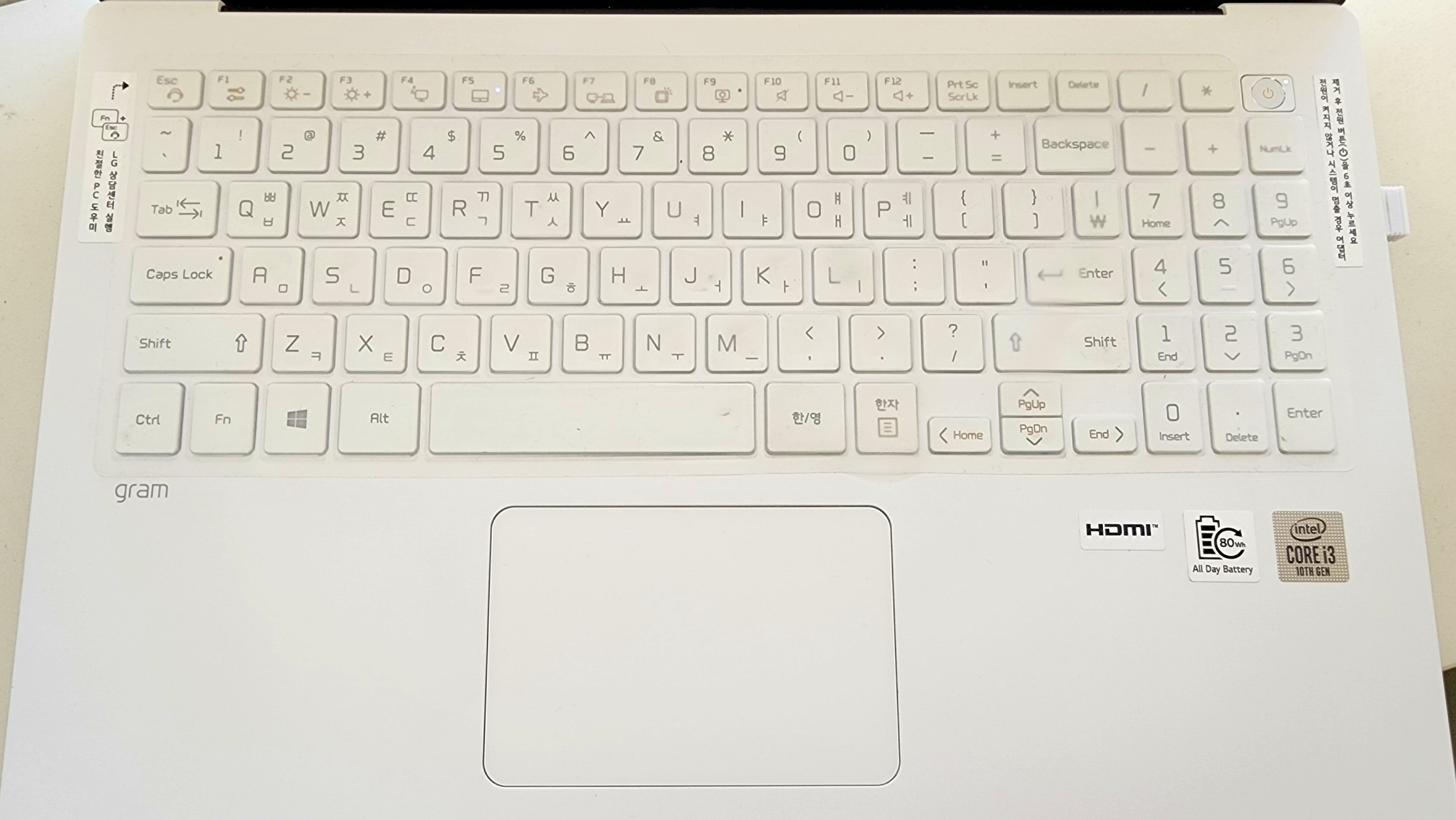 대신 내가 잘 관리를 해주진 못해서 자판에 검은 그을음이 생겼다😭 키스킨이 노트북에는 그리 좋지 않다는 걸 들었지만 그래서 어쩔 수 없이 키스킨을 씌워서 쓰고 있다. (키스킨도 벌써 한 5번은 바꾼 것 같다)