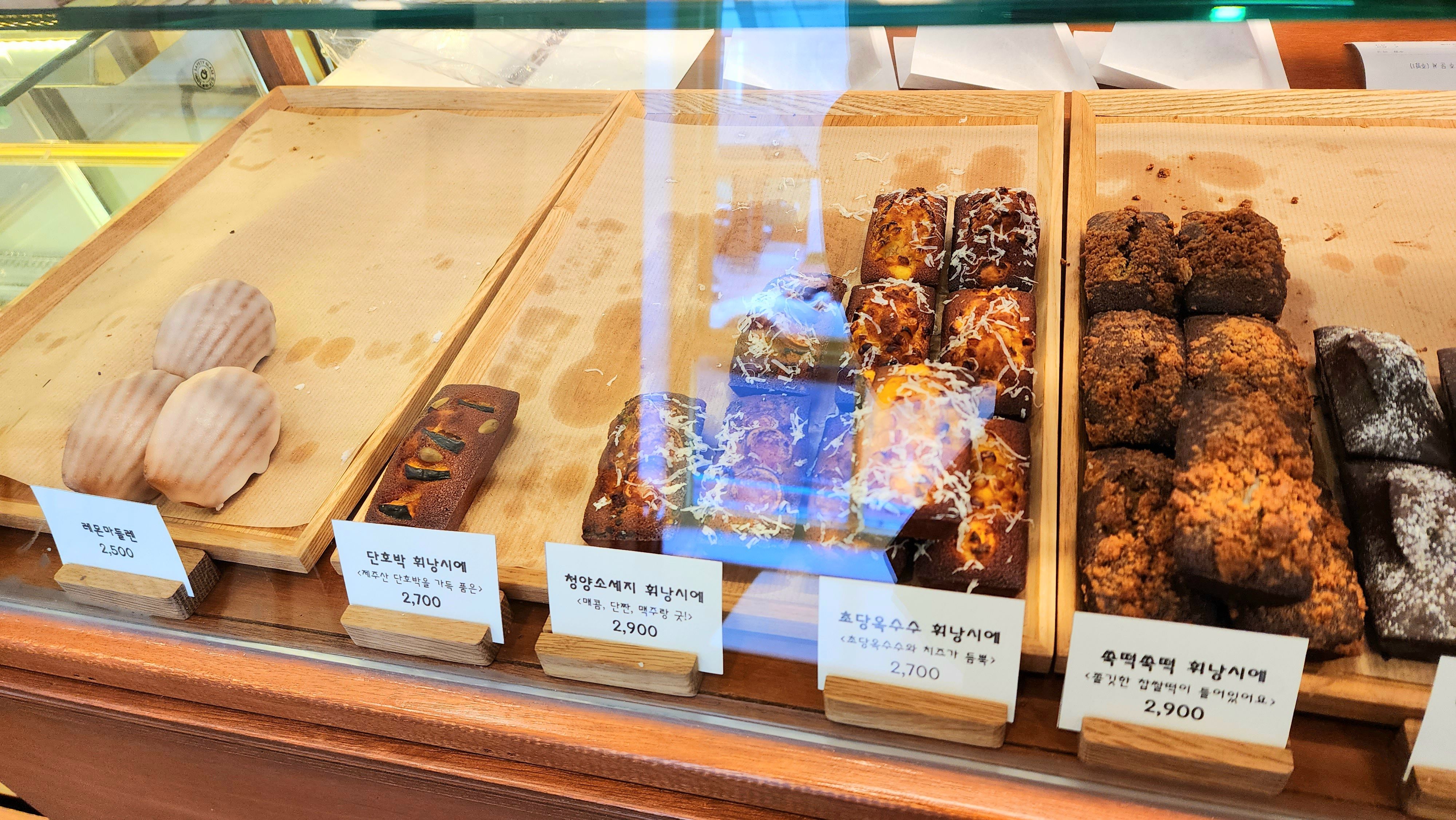 휘낭시에 종류가 굉장히 다양했다. 고민 끝에 너무 맛있어 보이는 에그타르트 2개와 단호박 휘낭시에 1개를 골랐다. 더 많이 사고 싶었지만 혼자서 먹기엔 너무 욕심인 것 같아서🤣