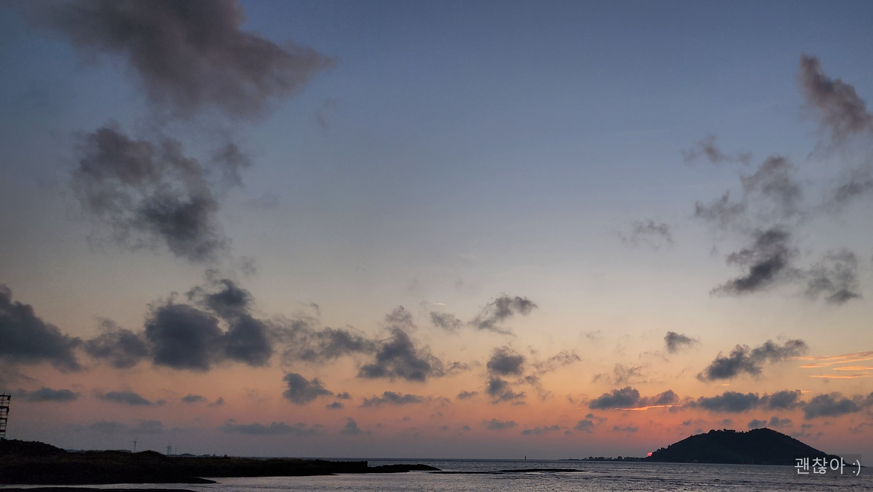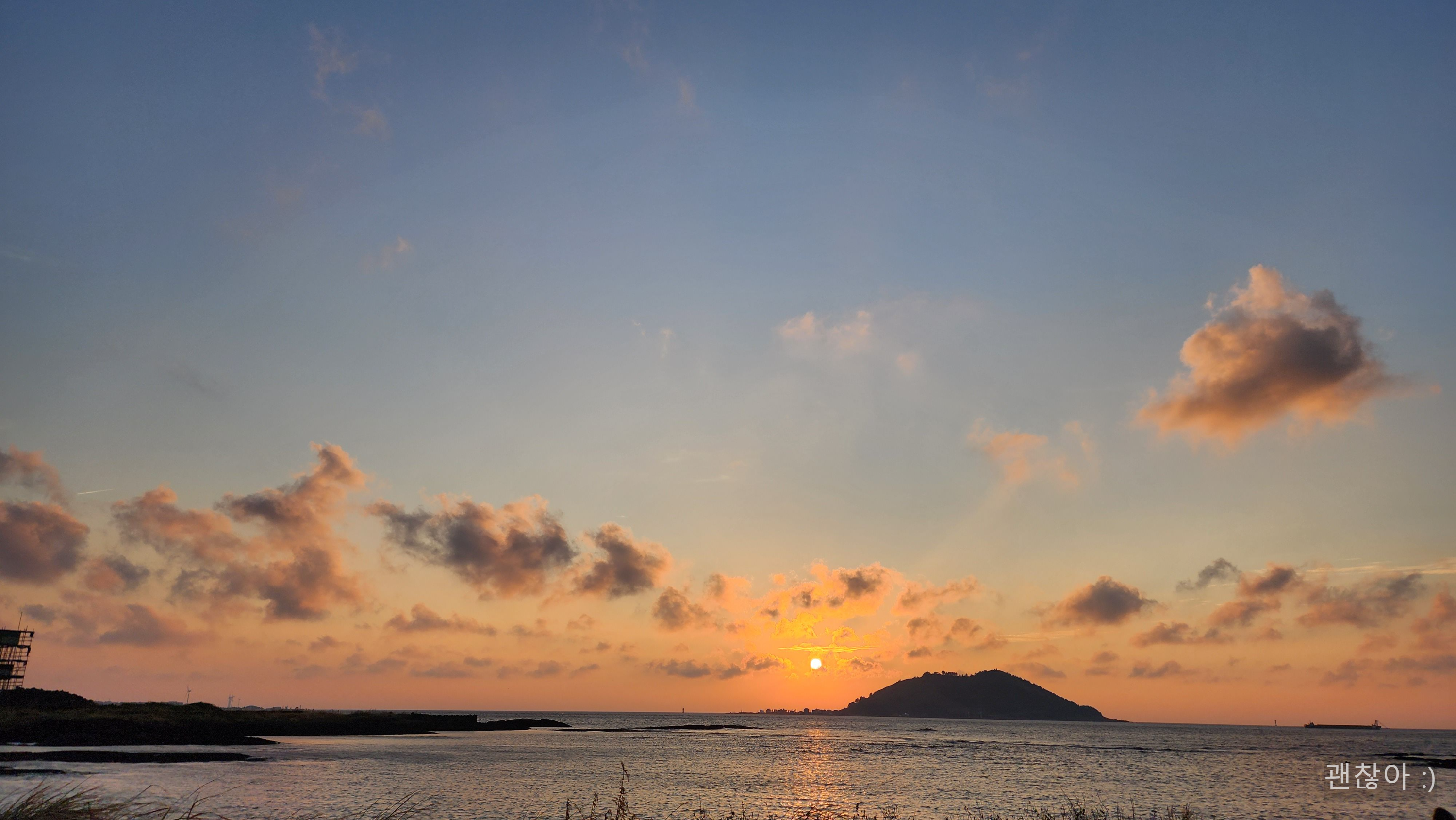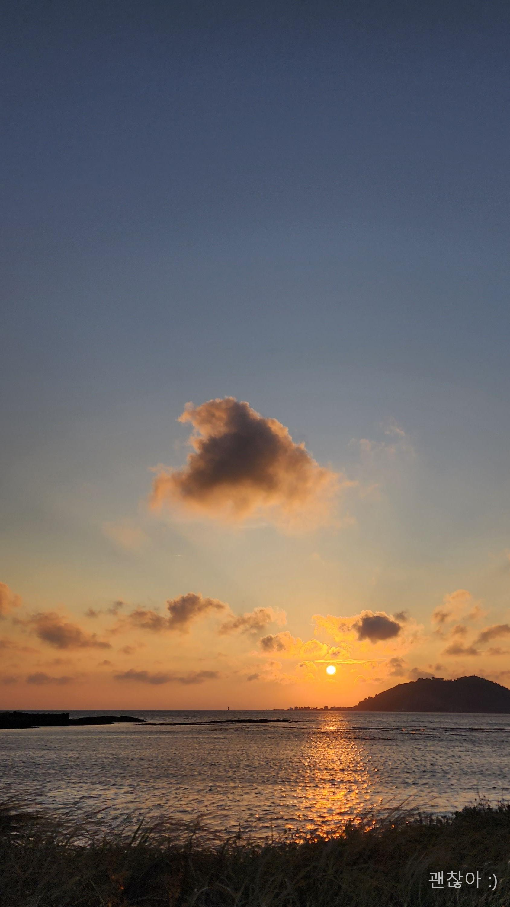 나는 해지기 1시간 전쯤 도착하였는데 (22년 10월 초 기준 제주도는 6시 15분쯤 해가 졌다) 그 때도 참 아름다운 풍경이었다. 본격적으로 6시가 지나면 해가 쭉 내려오는 게 느껴지는데 노을이 예쁘지 않은 날임에도 하늘이 참 예뻤다.
