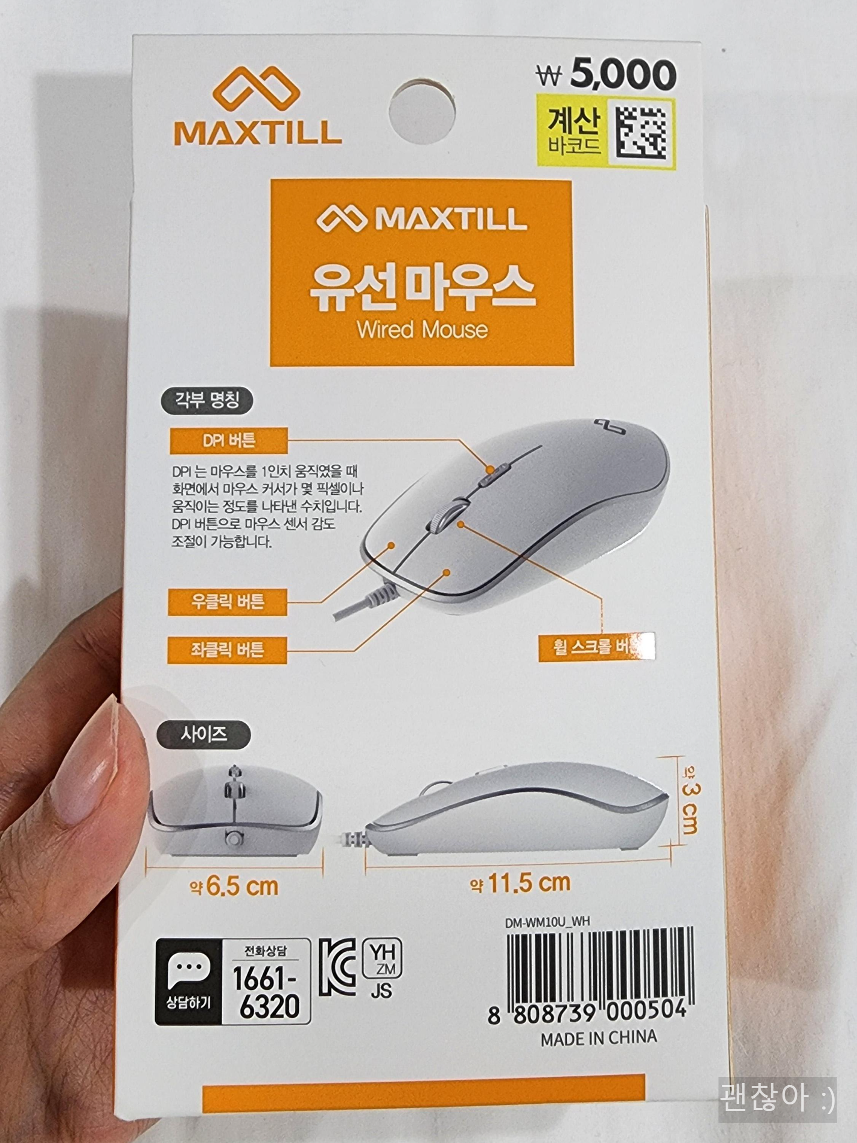 나는 임시적으로 쓸 걸 사는 거라서 불량 위험이 적고, 5,000원으로 해결할 수 있는 다이소 유선마우스를 사기로 했다. 색은 검정과 흰색 중에 흰색으로 결정!