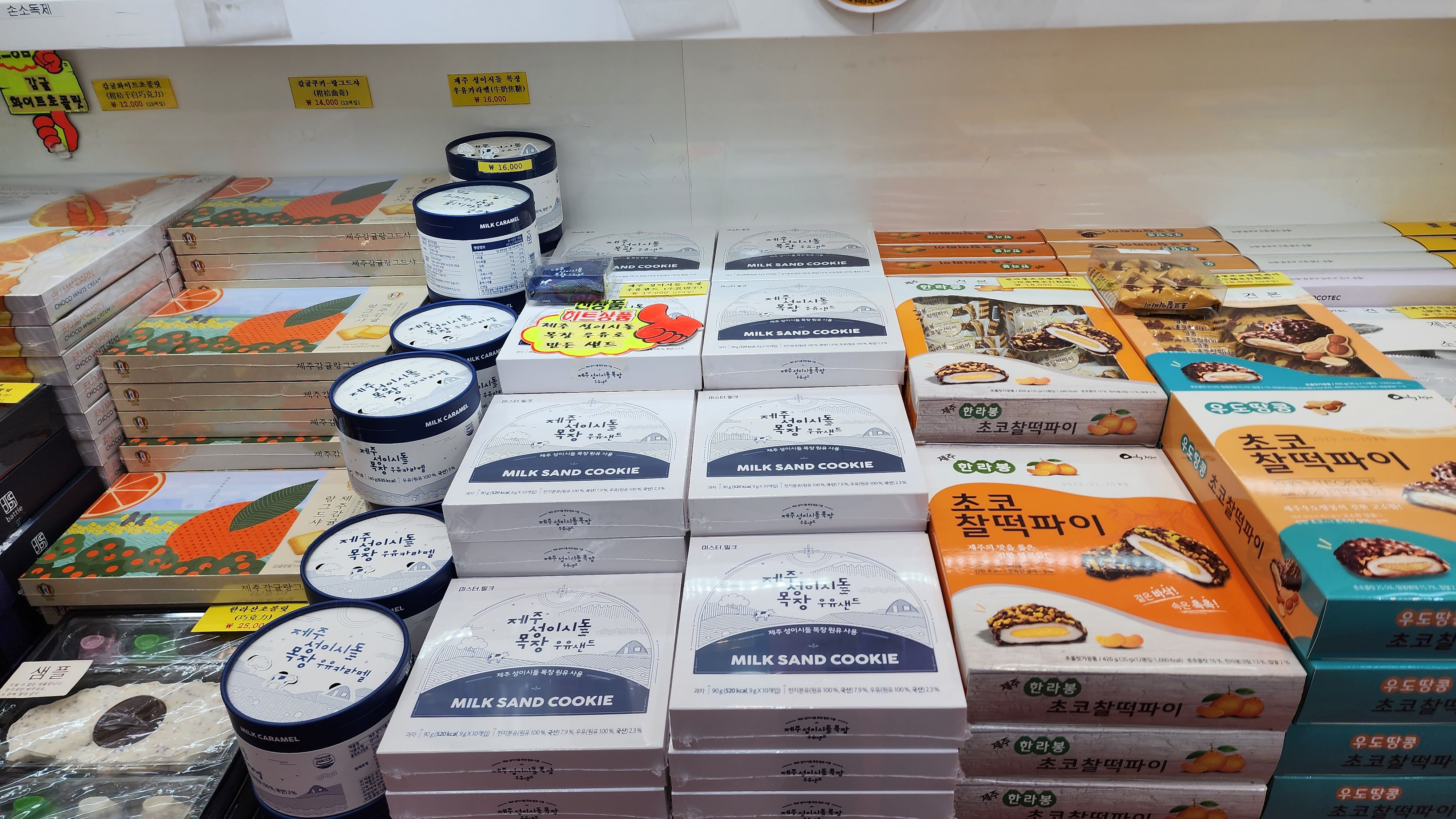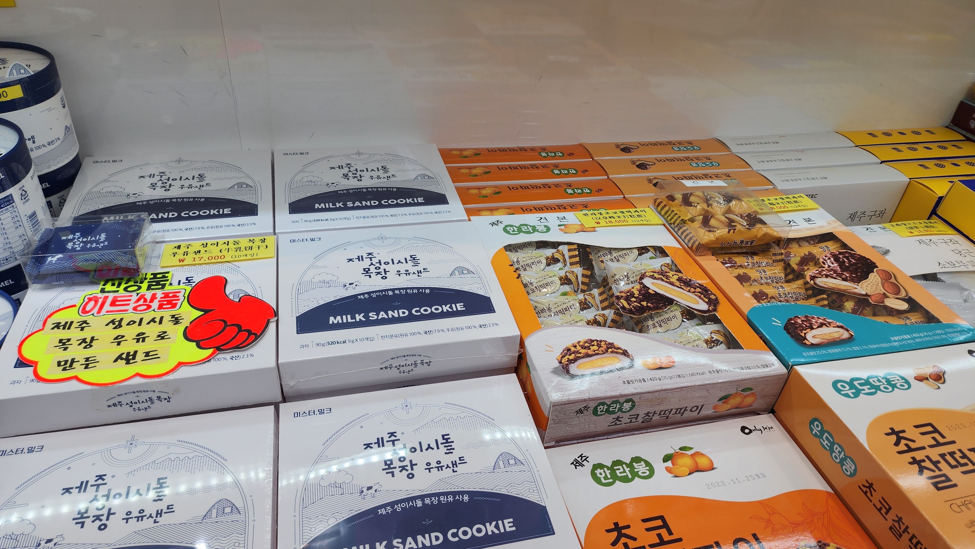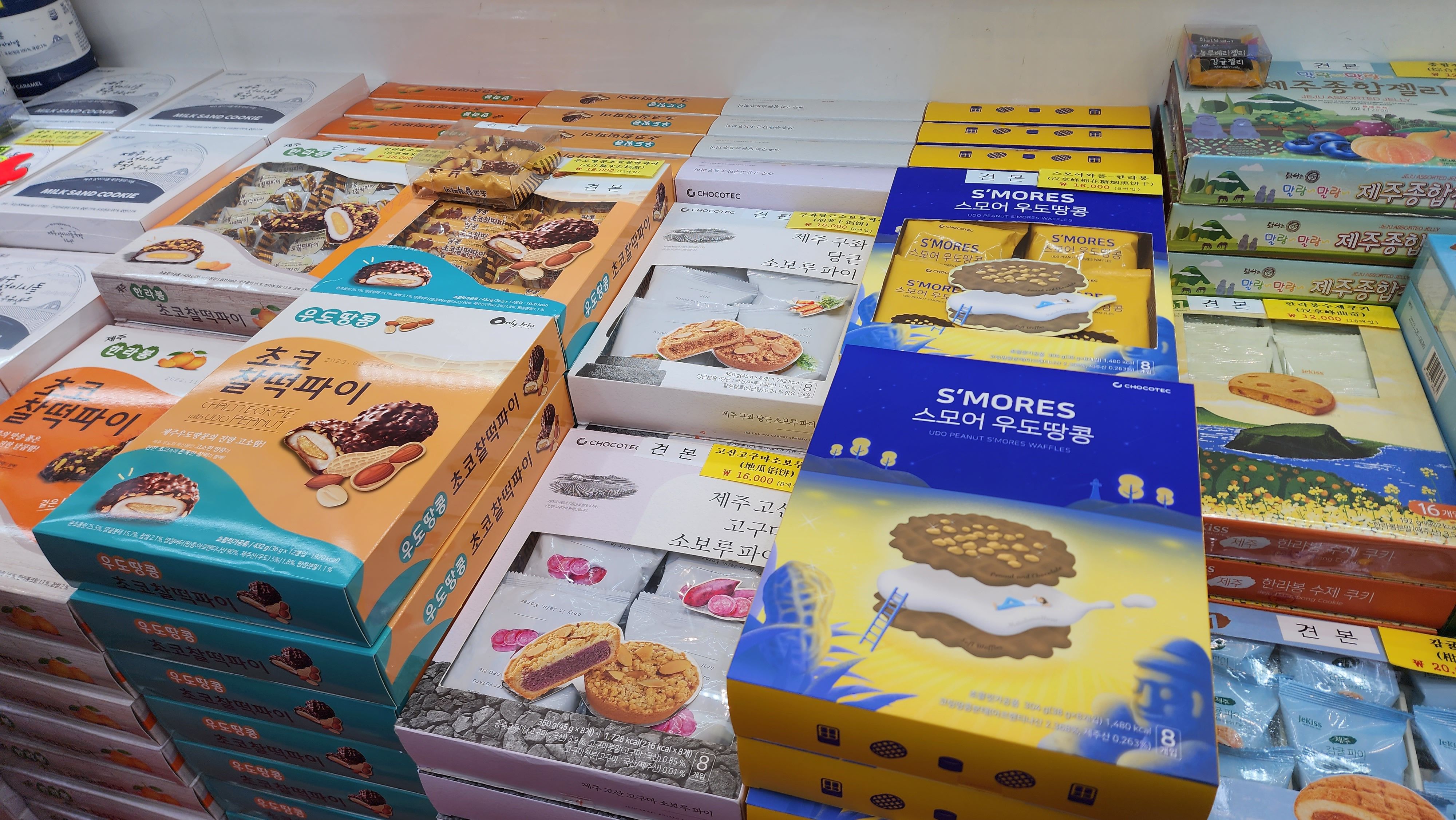 파리바게뜨를 아쉬운 마음으로 돌아서 나오고 과자를 판매하는 곳으로 갔다. 가보신 분들은 아시겠지만 진~짜 다양한 상품들이 있다. 맛을 보고 살 수 있는 게 아니기 때문에 "히트상품"이라 표시된 것과 판매하시는 직원분의 조언을 참고하여 구매하기로 했다.