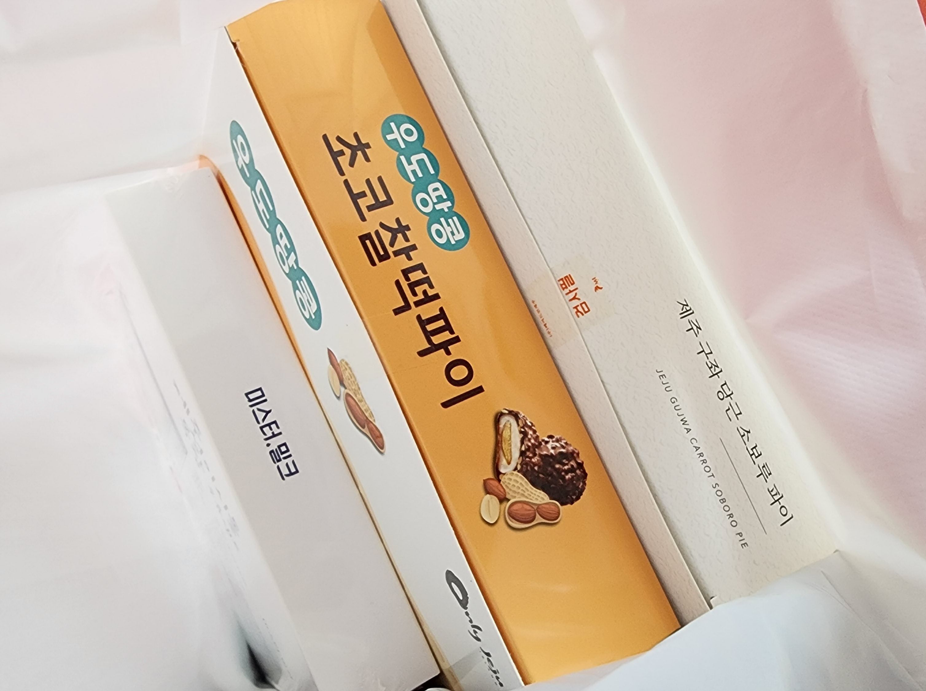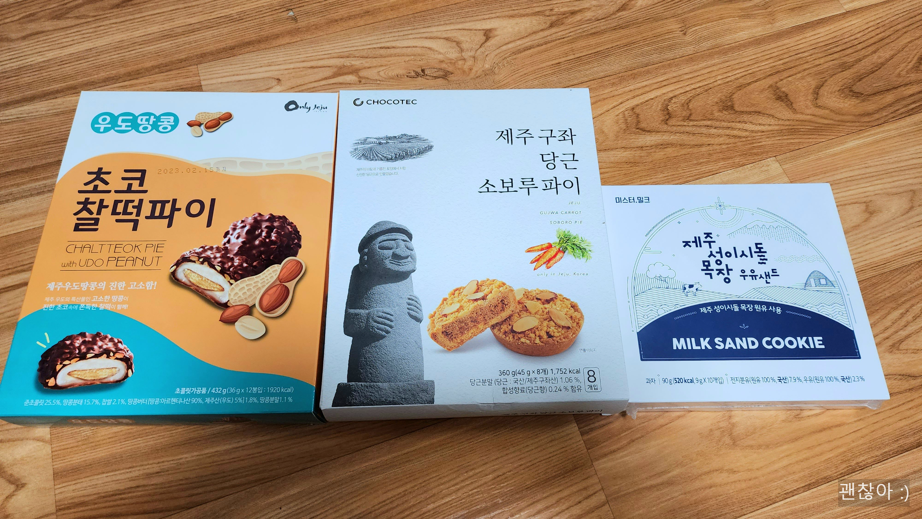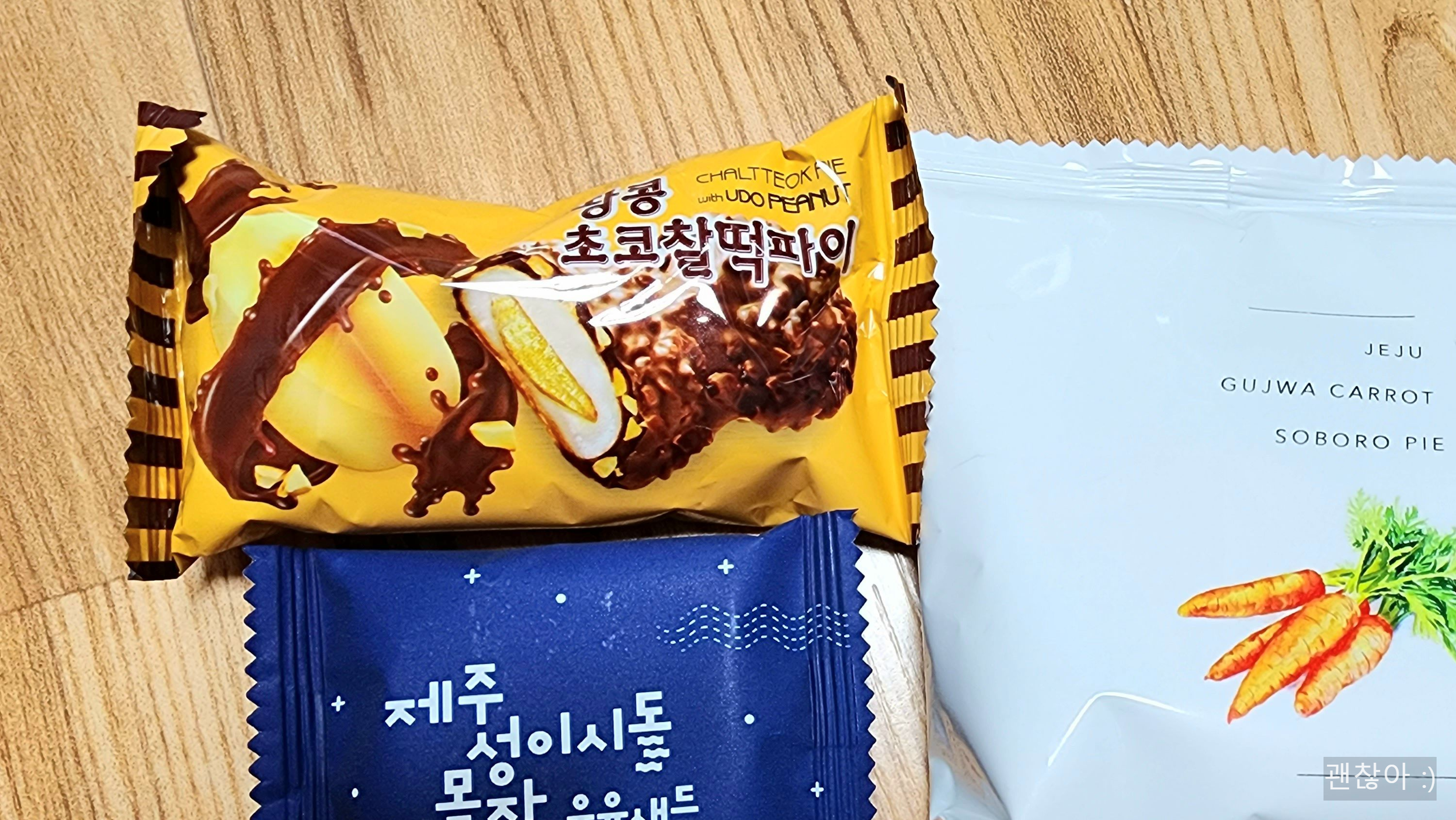 결과적으로, 우도땅콩 초코찰떡파이, 성이시돌 우유샌드, 제주 구좌당근소보루파이 3개가 나의 픽이 되었다.
