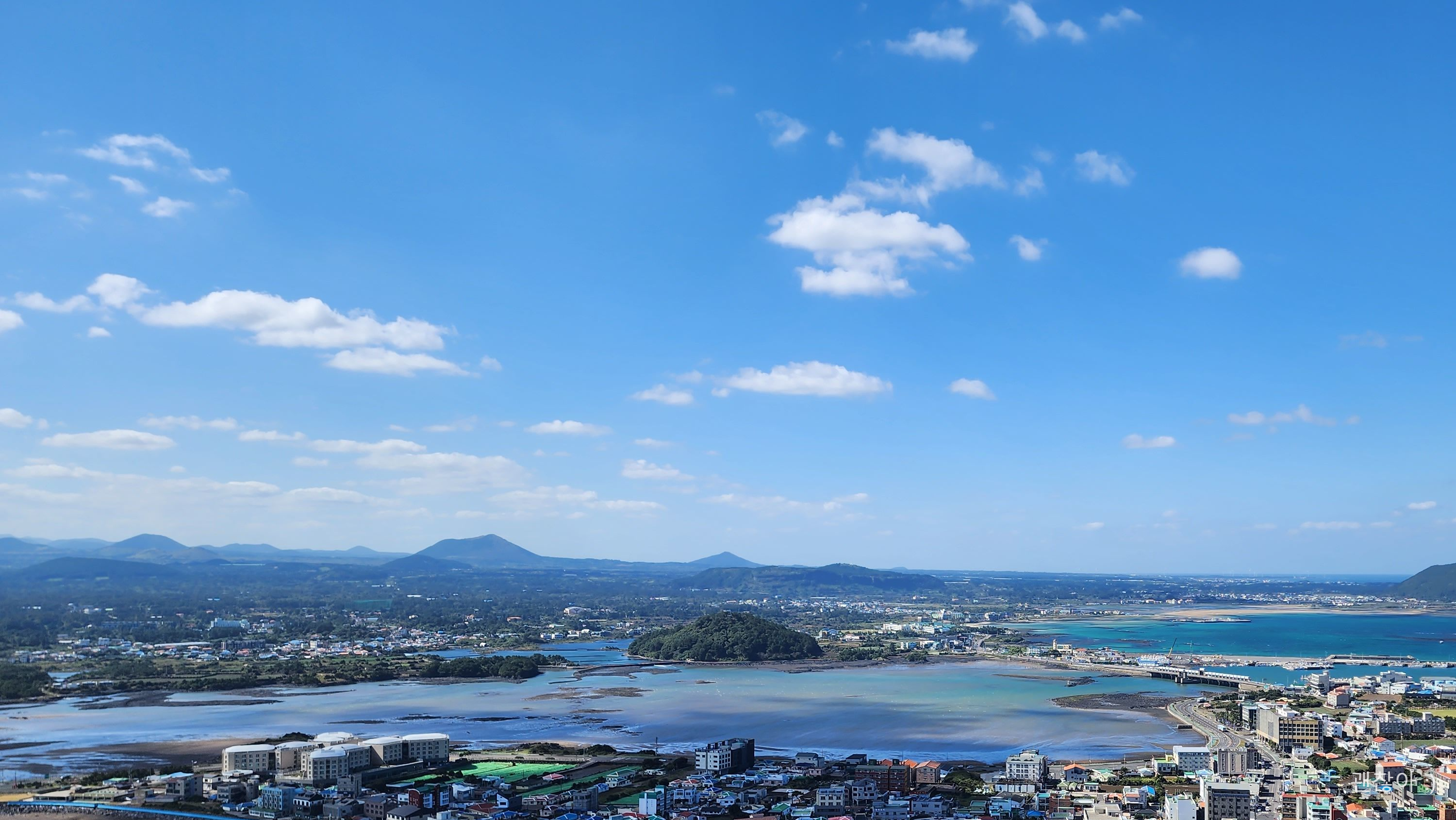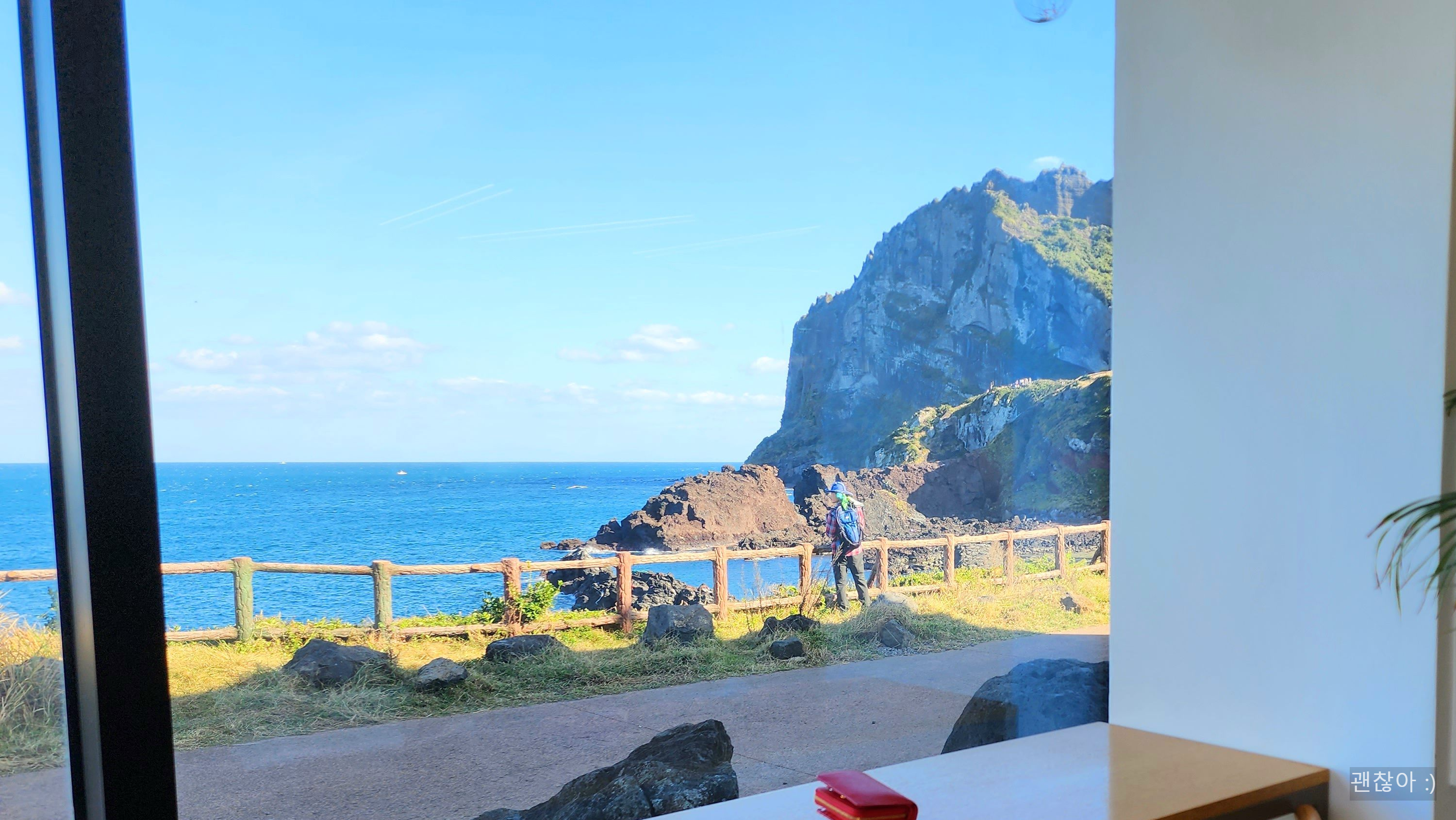 - 바다와 성산일출봉이 잘 보인다.