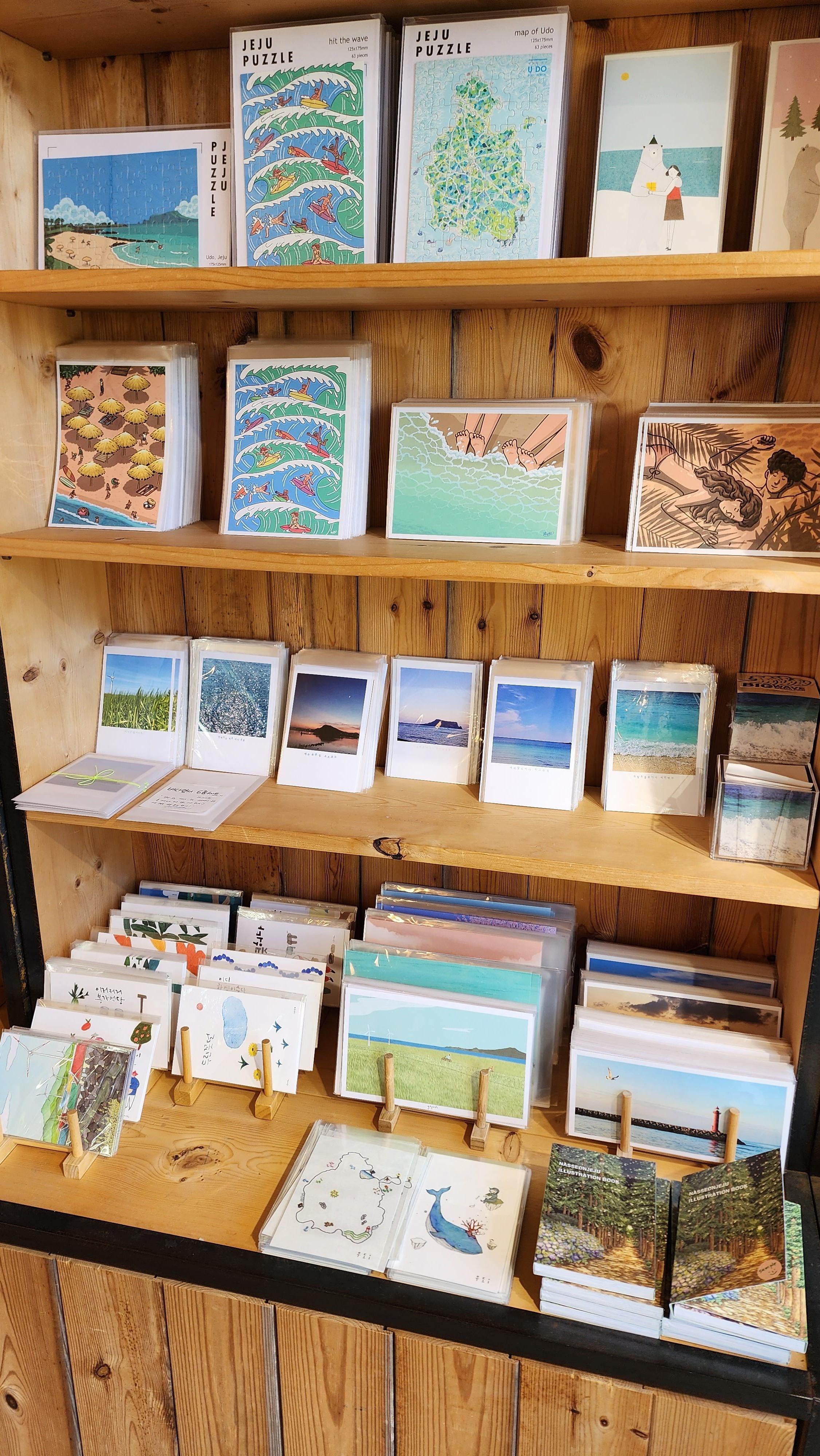 제주도 이미지를 담은 엽서, 퍼즐, 공책 등 물품이 다양하다. 일부만 사진으로 찍어 이렇게 공유드리는데 진~짜 가보셔서 직접 보시면 더 좋을 것 같다.