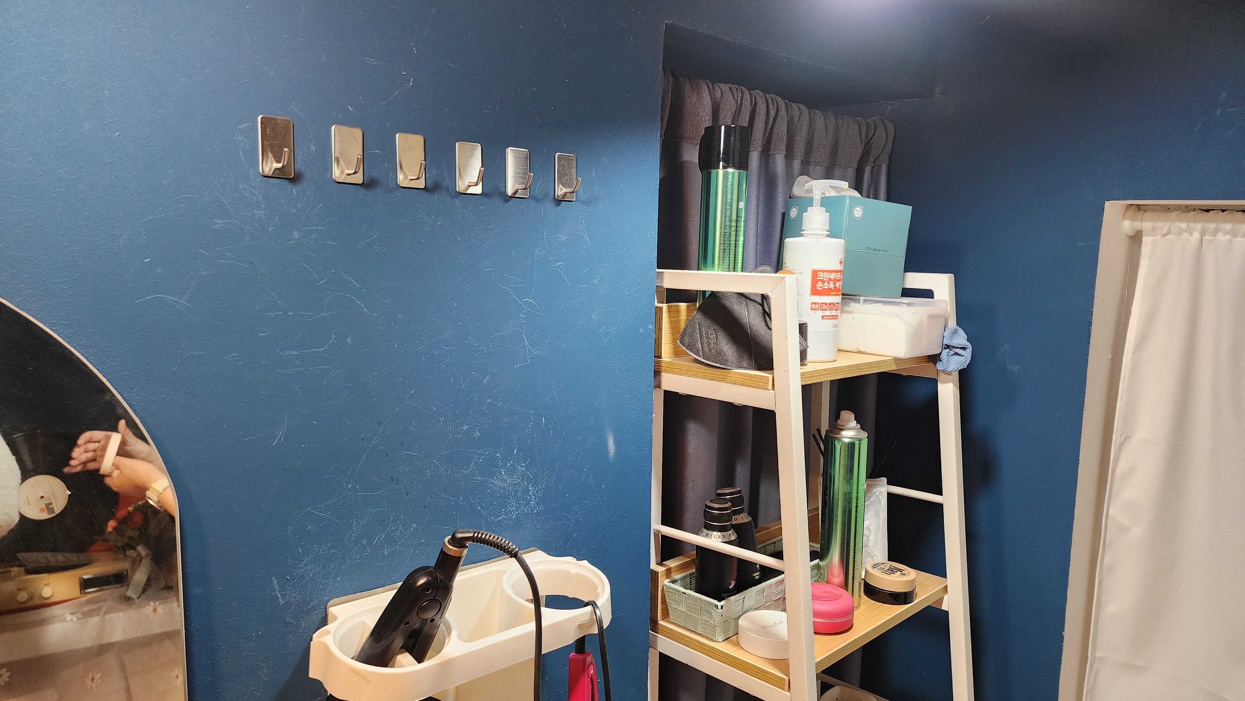 숨겨진 장소에 메이크업을 고칠 수 있는 공간이 있는데 고데기도 2개나 있고, 반드시 필요한 건 다 있어서 편하게 사용하면 된다. 작가님도 매우 친절하시고 충분한 시간을 주시기 때문에 사진 찍기 전 마지막 단장을 하면 된다.