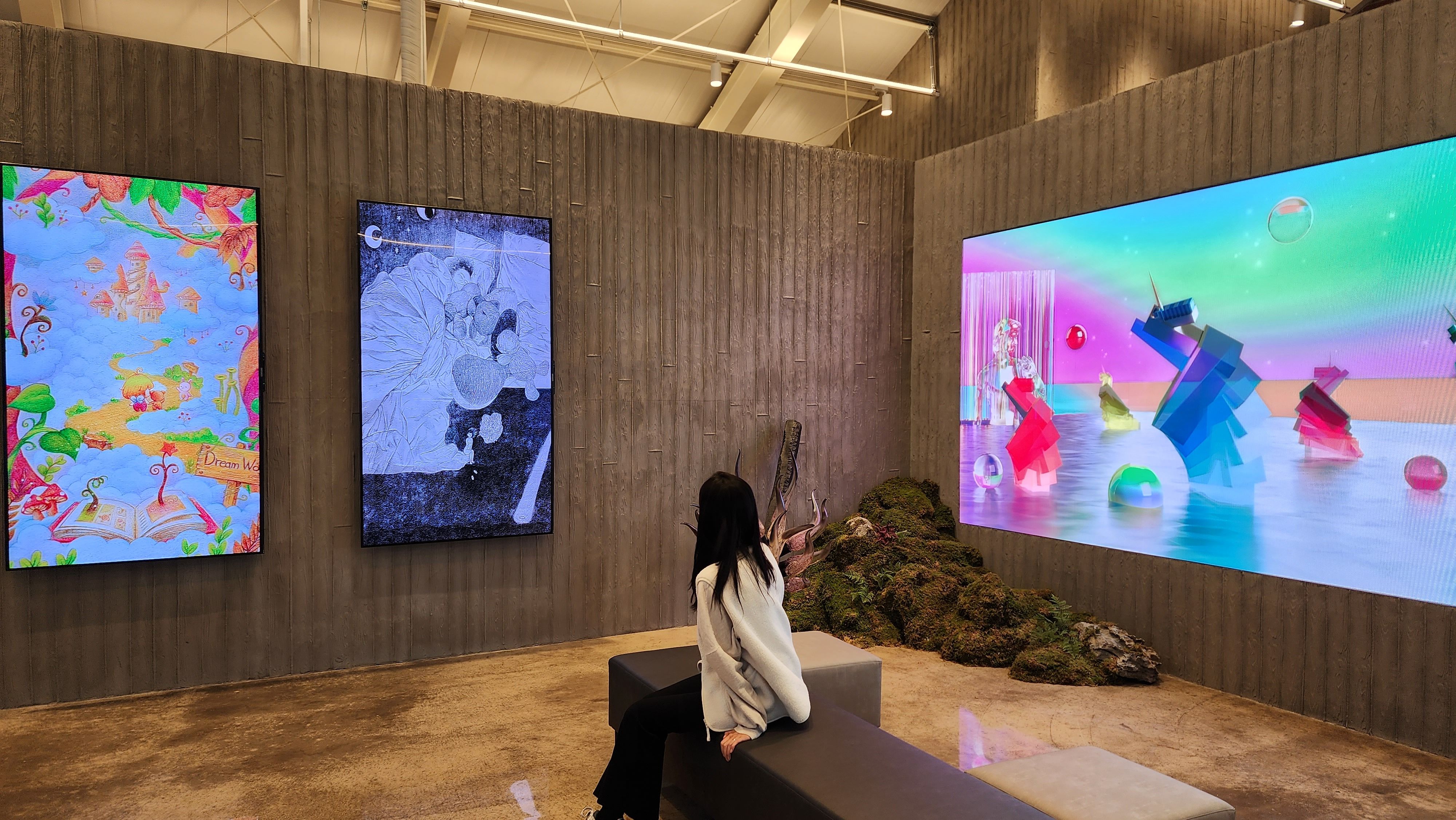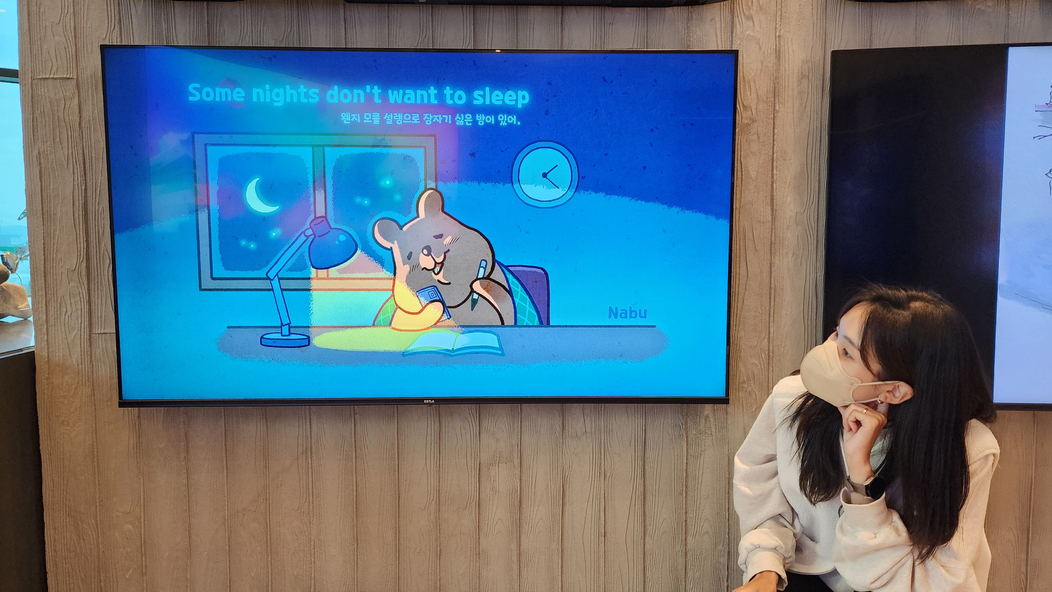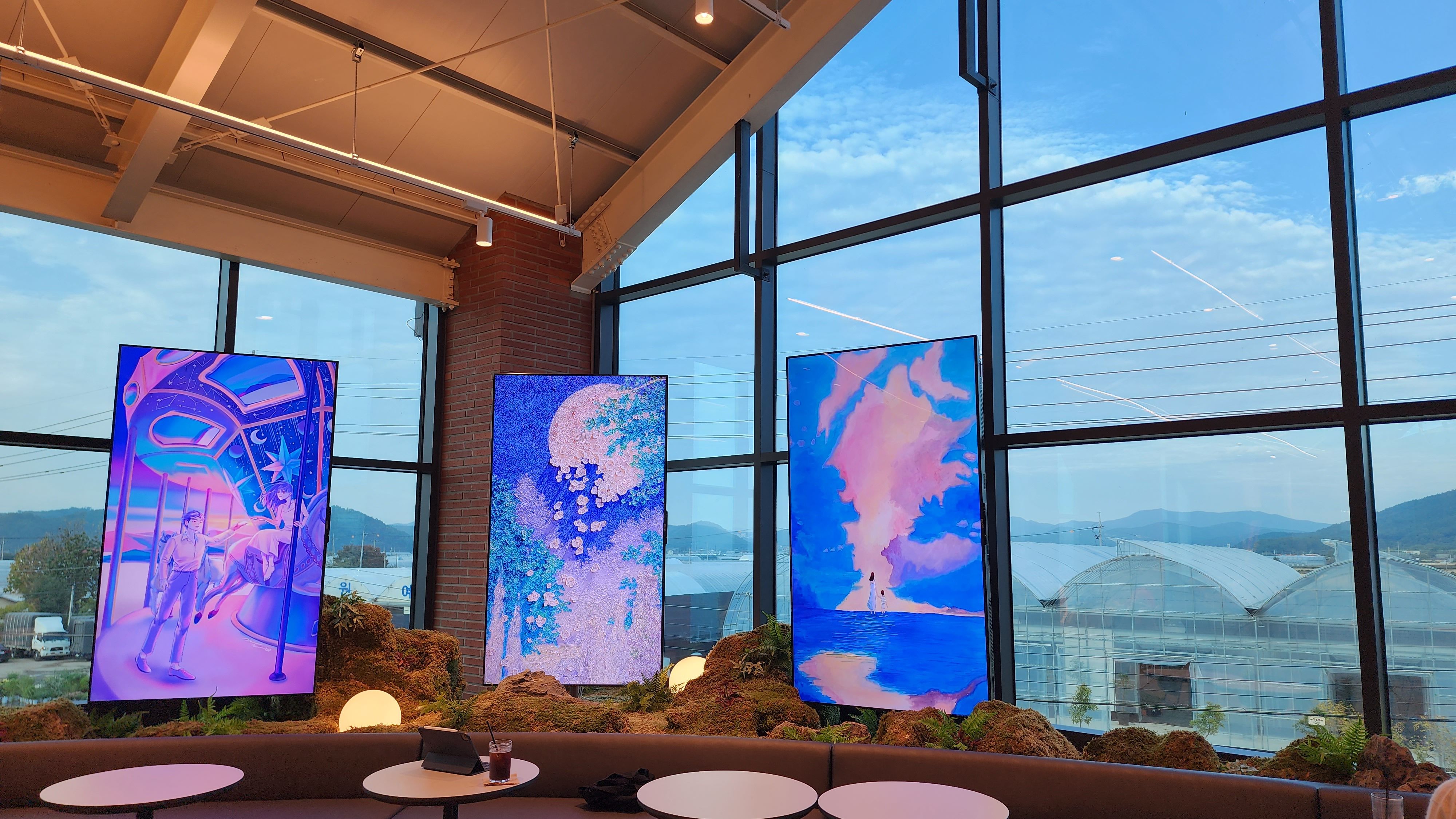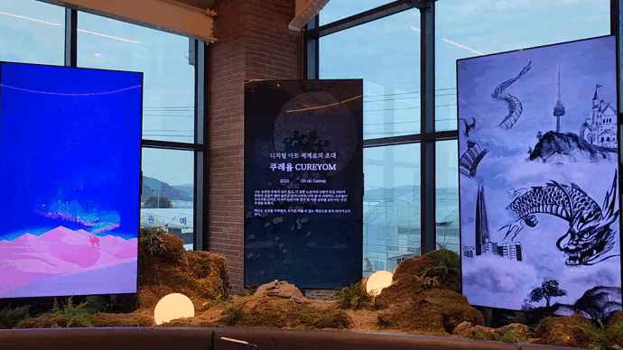 2층에 올라가면 본격적으로 디지털 아트 작품을 구경할 수 있다. 생각보다 작품수가 많았고 디지털 아트라는 게 좀 생소하긴 하지만 일반적인 카페와는 또 다른 느낌이라 신기했다. 설명된 내용을 살펴보니 월마다 작품이 달라지는 것 같았다. NFT 식물원 카페라고 해서 궁금하긴 했지만 약간은 이상한 곳(?!)이겠다 싶었는데 내가 느끼기엔 미술관+카페의 느낌이라 좋았다.