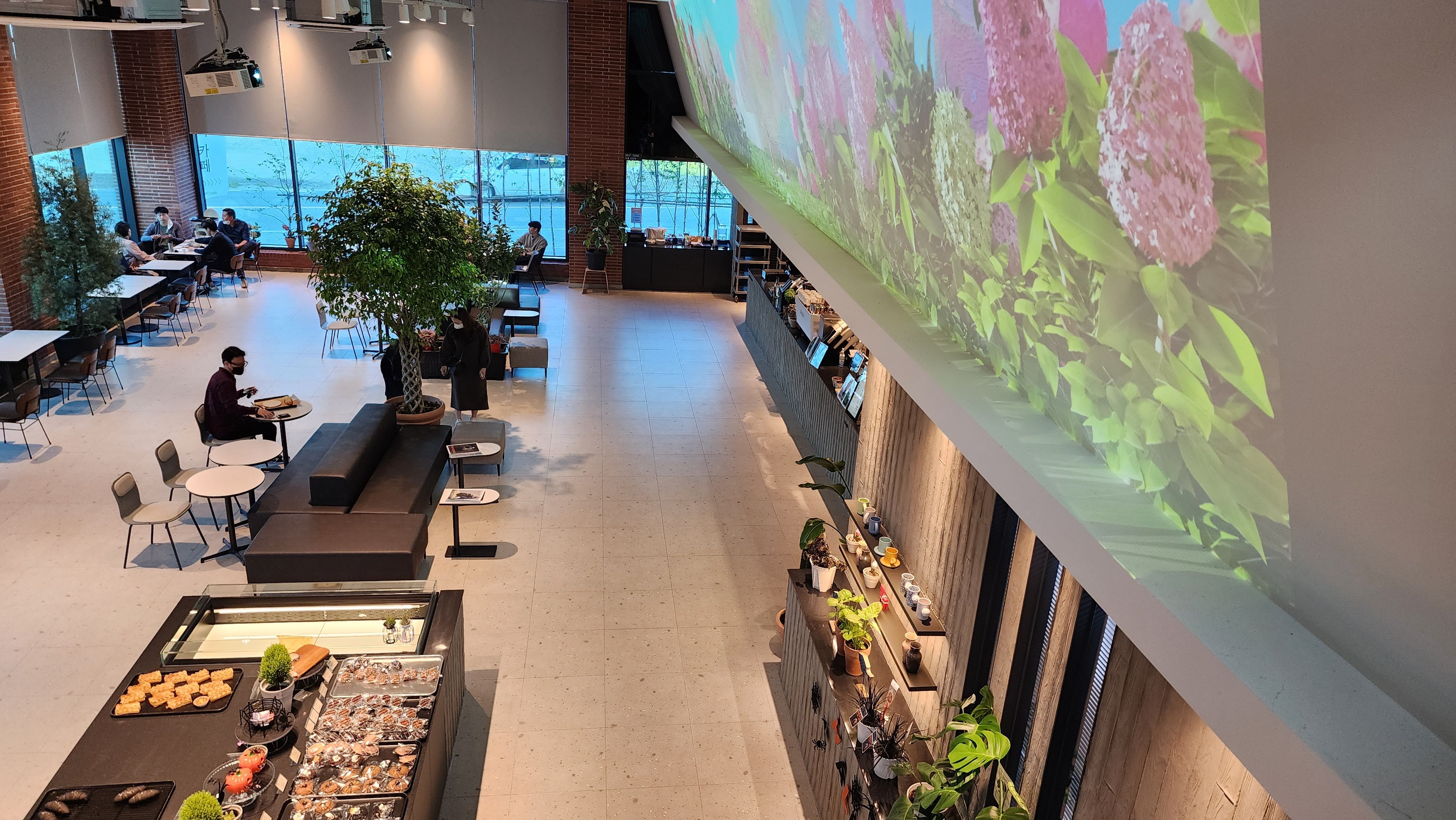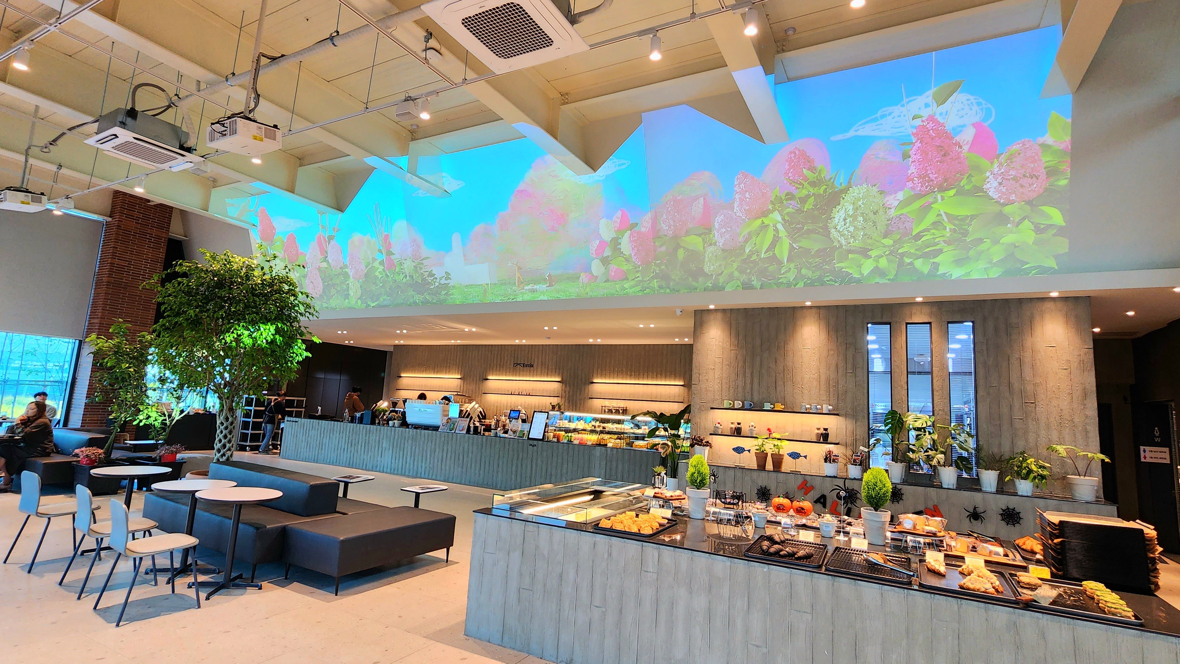 딱 봐도 엄~~~청 큰 땅에 위치해있다. 건물은 크게 2개동으로 이뤄져 있는데 B동은 식물을 구매할 수 있는 그린플랫폼, A동은 카페 및 디지털 아트를 구경할 수 있는 공간이라고 생각하면 된다. 주차장도 엄청 커서 근교 카페다운 규모를 자랑한다.