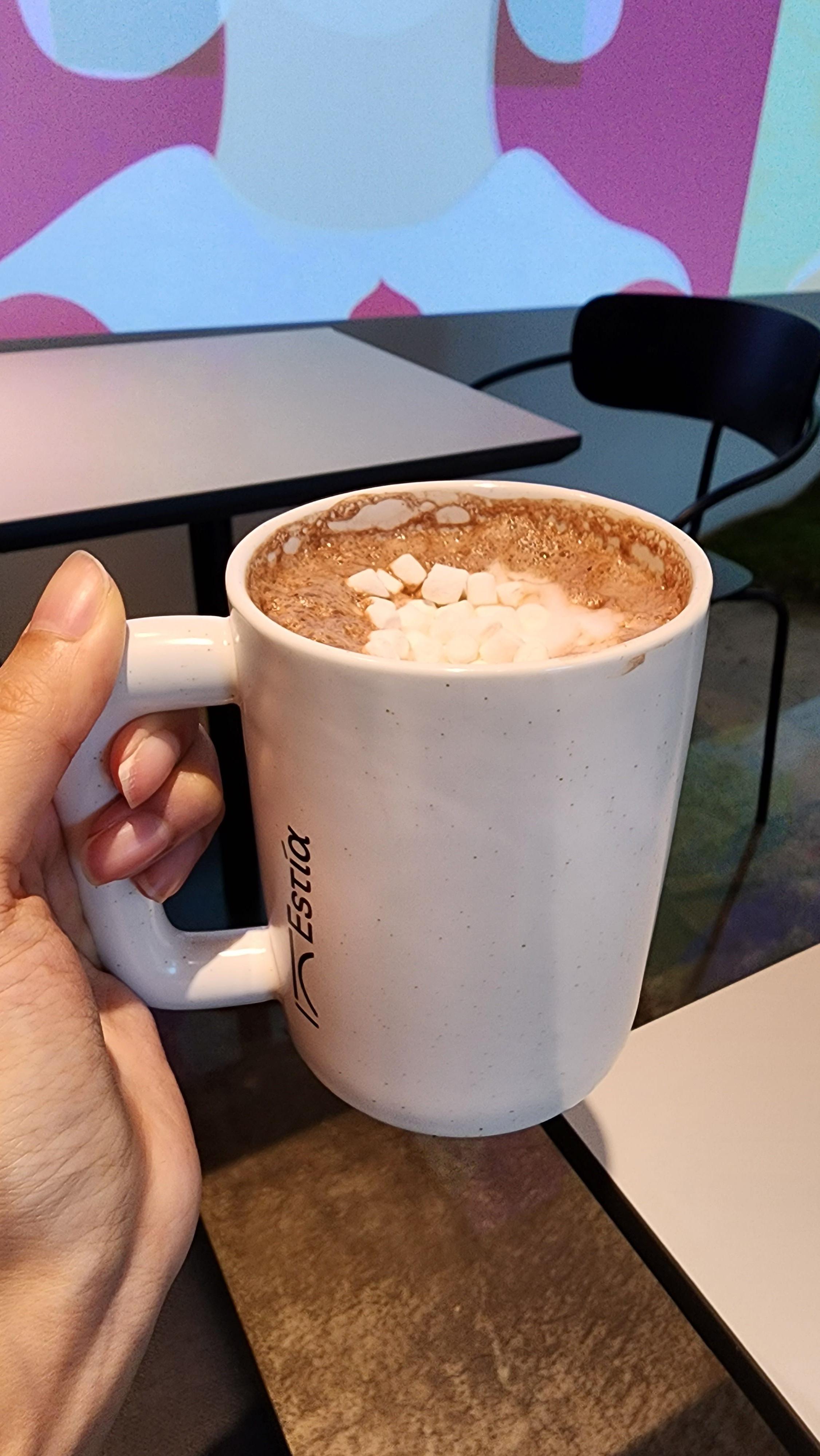 이렇게 구경하다보니 음료가 나왔다. 내가 시킨 초코라떼에는 마시멜로가 가득 들어있었는데 아주 달달했다. 당충전하기엔 딱! 음료나 빵은 전반적으로 보통 수준이라 생각해주시면 된다.