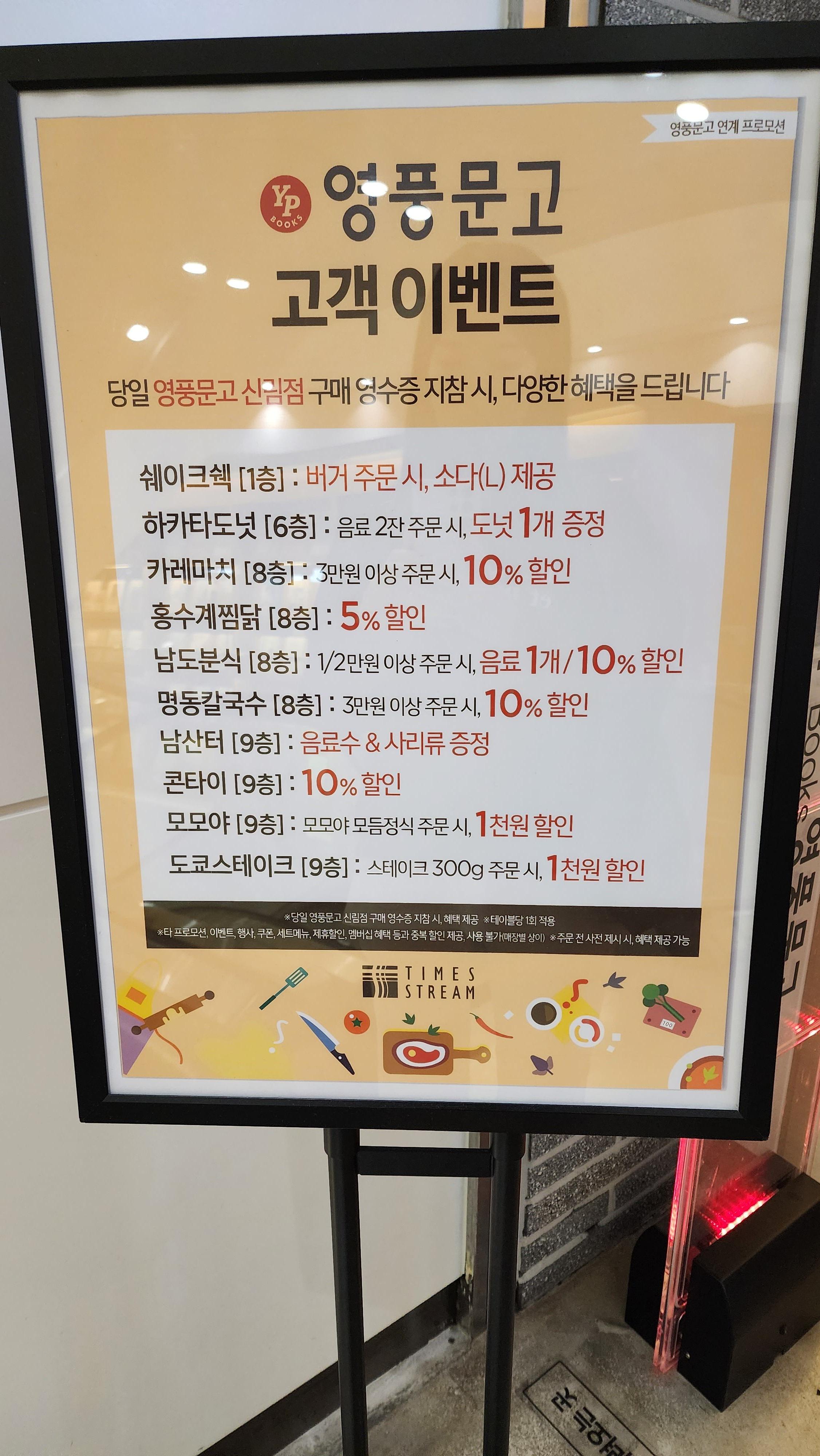 영풍문고 신림 혜택 (음식점 제휴)