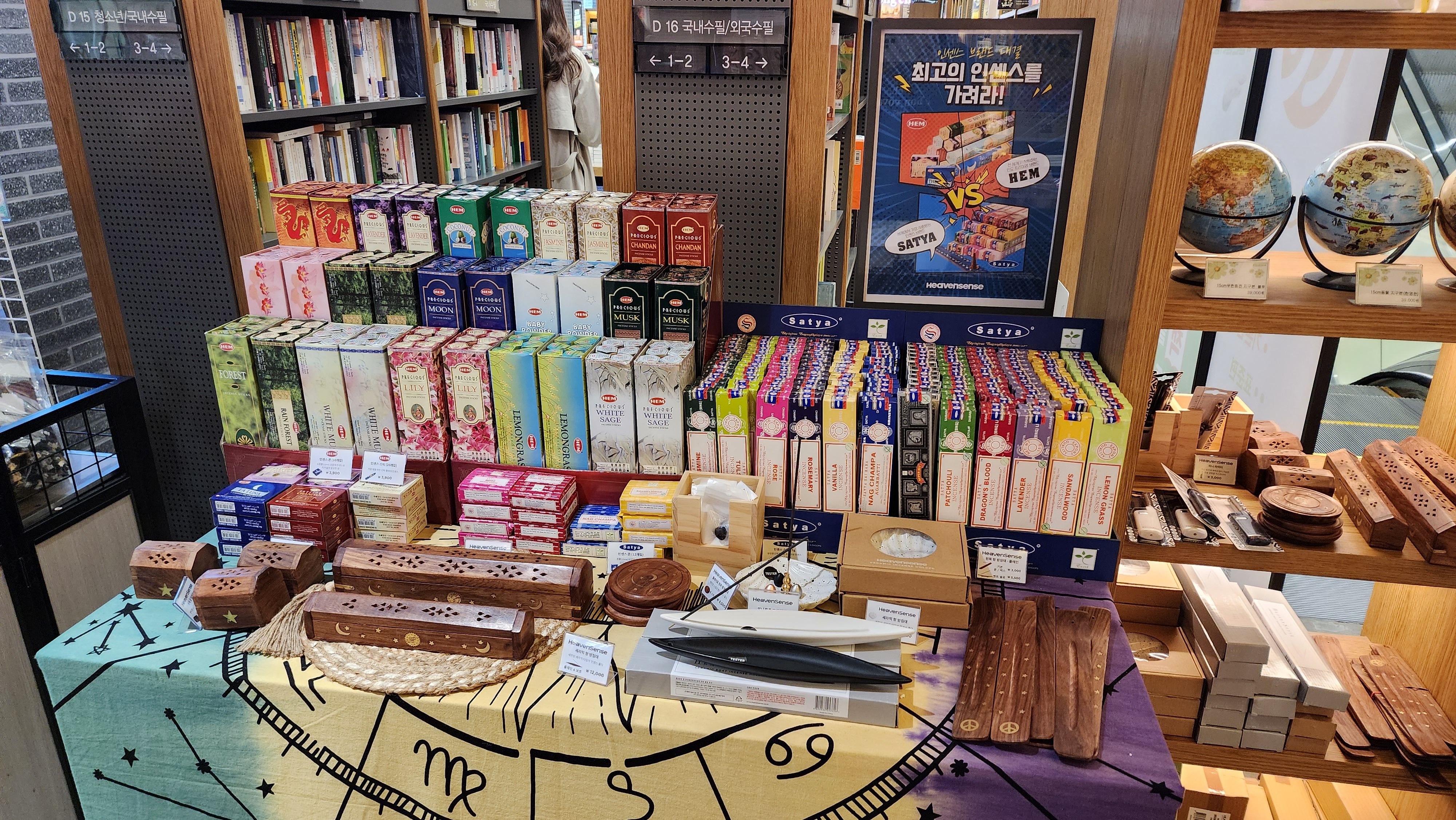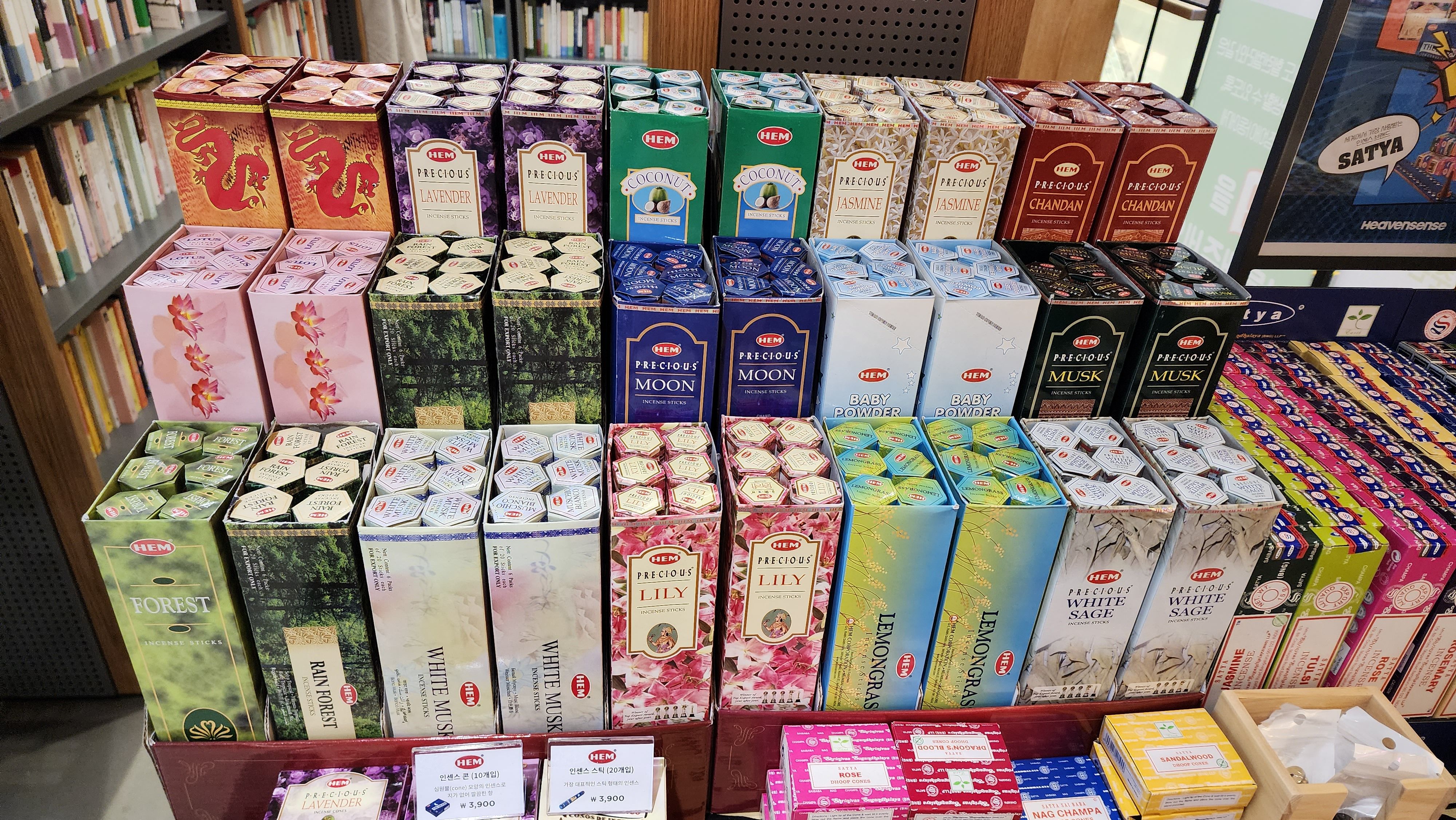 인센스스틱을 파는 곳은 많지만 내가 좋아하는 HEM사 인센스스틱까지 구매할 수 있는 곳은 많지 않은데 여기는 HEM사 인센스스틱이 꽤 많은 편이었다. 내가 좋아하는 최애 향은 없었지만 그다음 좋아하는 향인 레인포레스트가 있어서 반가웠다.