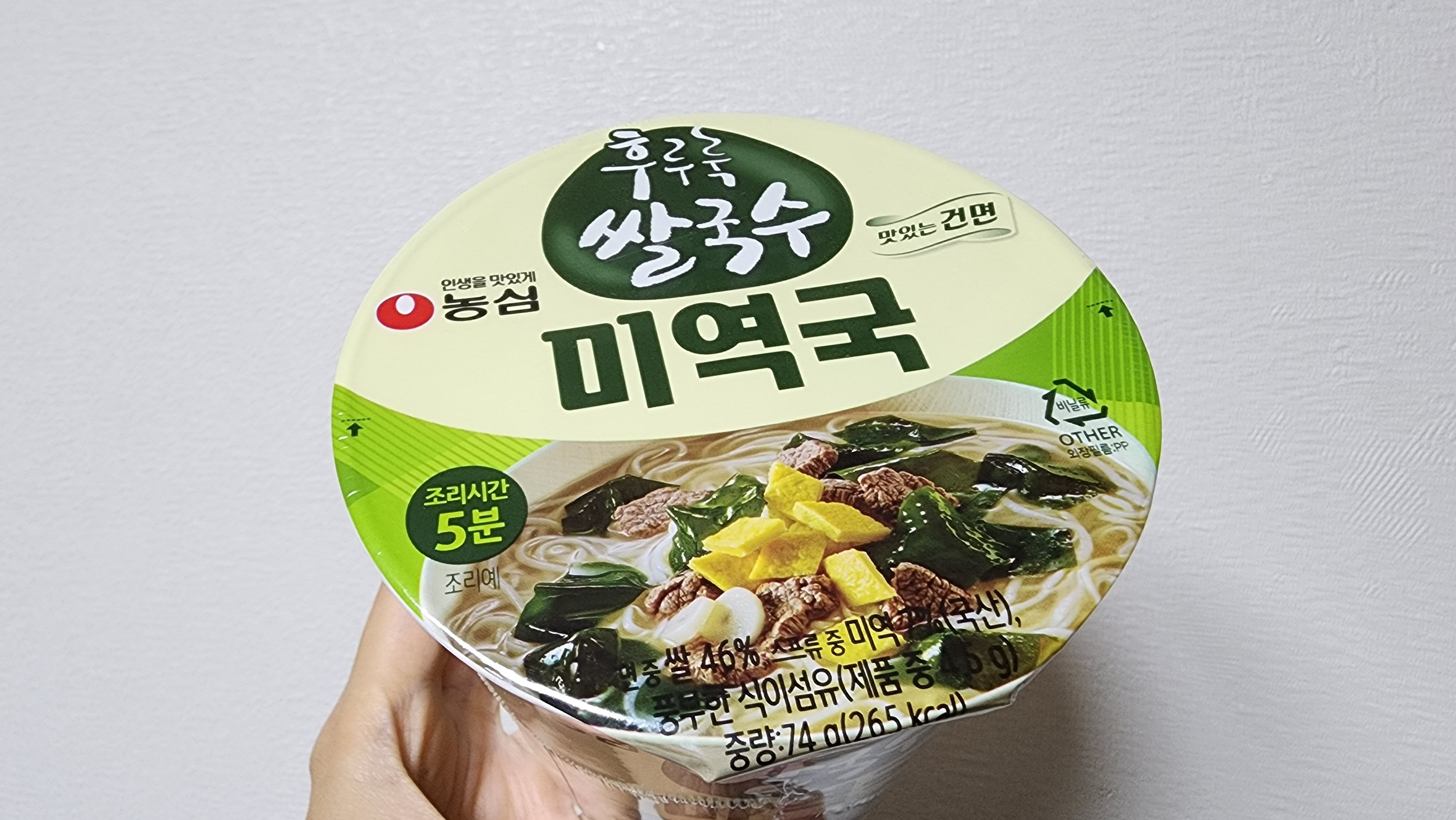 아침 출근 전에 후루룩 먹어서 사진을 찍진 못했지만 내 생각보다는 훨씬 더 괜찮았다. 건면 + 쌀면이라서 밀가루면처럼 부담스럽지 않았고, 일반적인 미역국 국물보다는 가루로 맛을 낸 미역국 국물에 가까웠지만 그래도 '미역국' 범주에 들어가는 맛이었다.