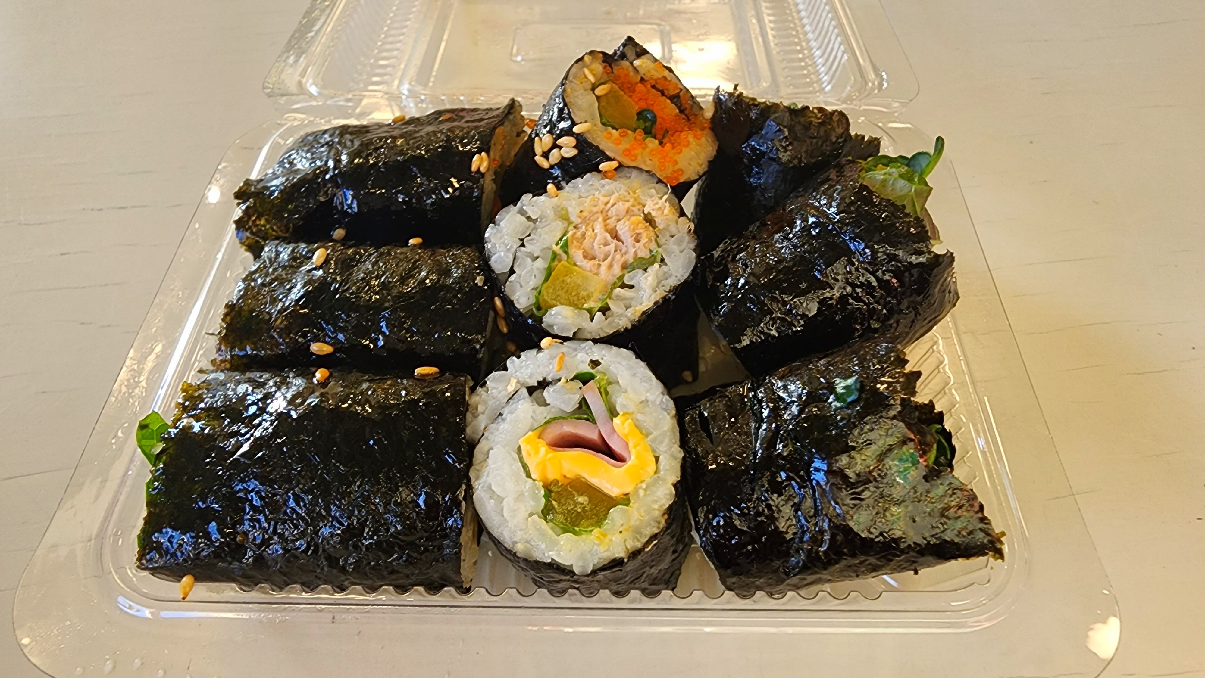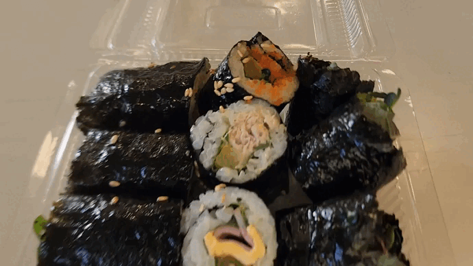 일부러 단면이 잘 보이도록 돌려보았다. 이미 보시면 아시겠지만 맨 위부터 날치알마리, 참치마요마리, 햄치즈마리 순서이다. 워낙 미니미하기에 금방 뚝딱! 다 먹었는데 모두 맛있었다. 엄청나게 특별한 맛이다!!!! 그런 건 아니지만 지금 막 만든 김밥 그 맛이다.