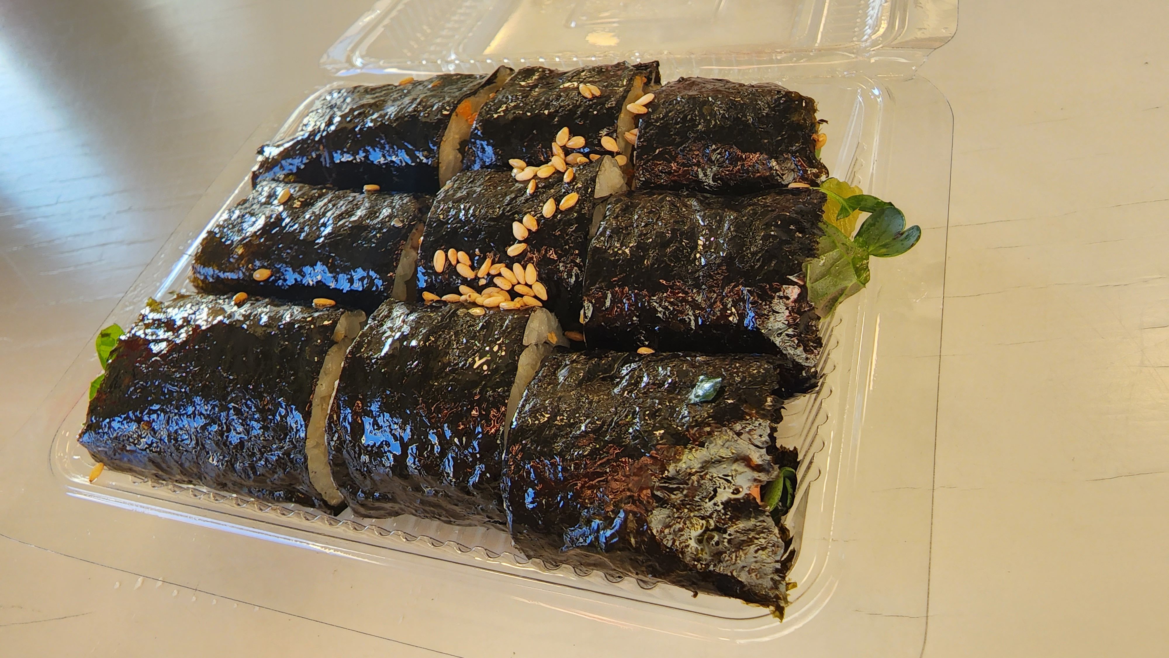 김밥은 먹기 좋게 3조각으로 잘라져 있다. 한입으로 먹기 딱 좋다.