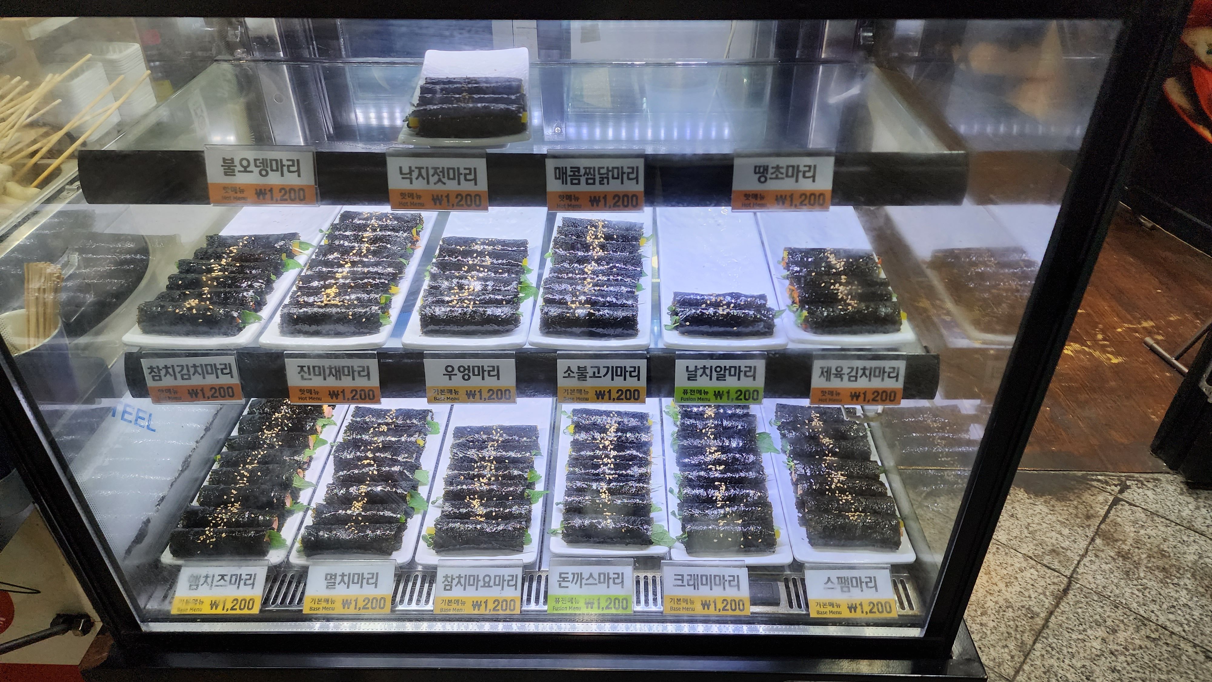 오뎅, 떡볶이, 순대가 있지만 나는 꼬마김밥만 먹기로 했다. 궁금해하실 테니 다른 메뉴 말씀드리면, 아래와 같다.