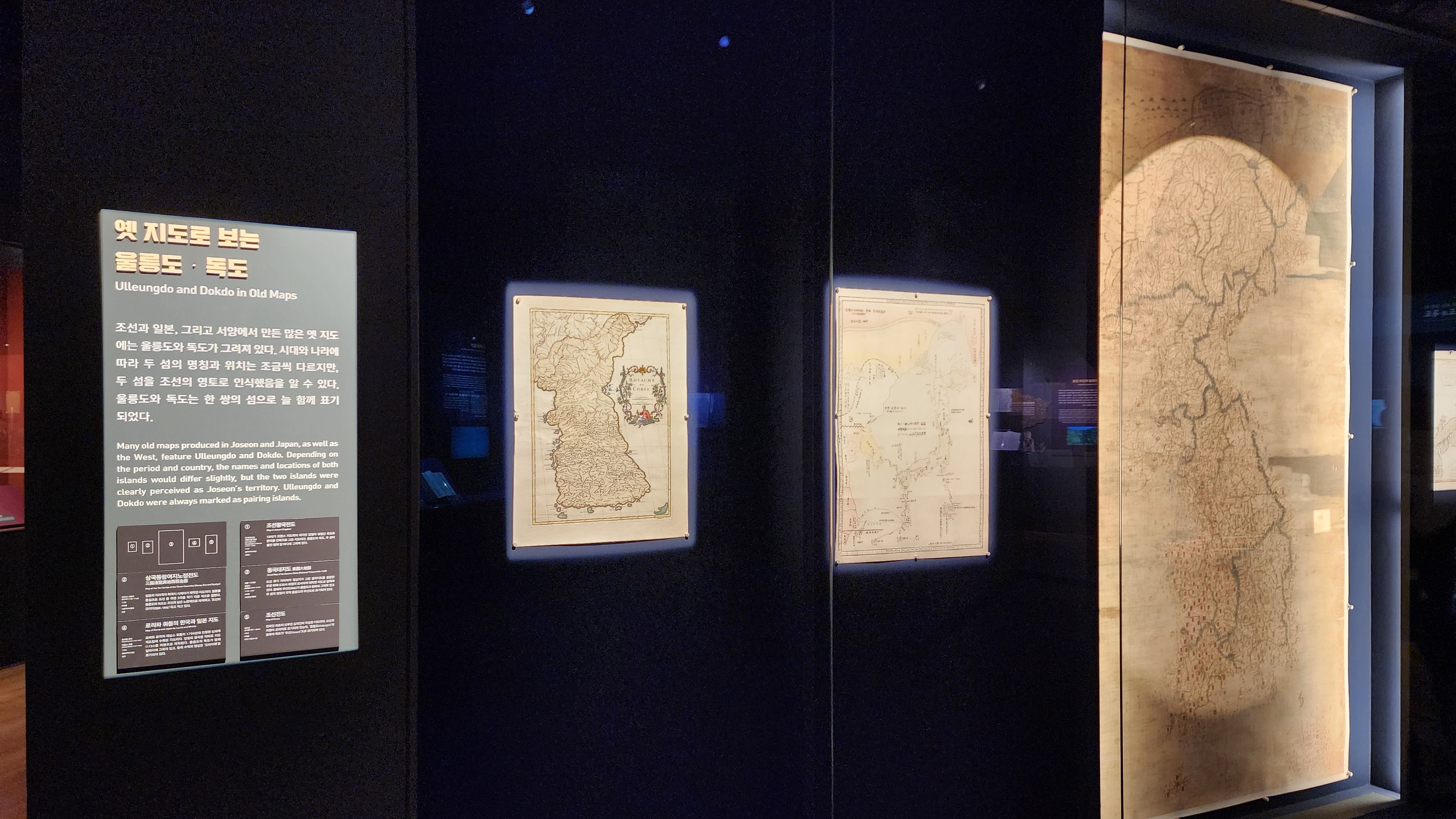 그다음 공간에서는 옛 지도로 보는 울릉도와 독도를 확인할 수 있다. 이 공간에는 다양한 지도들을 확인할 수 있는데 진짜 보면서 마음이 뭉클했다. 저렇게 오래된 지도에도 한반도의 일부로 명확하게 기재되어있는데 왜 자꾸 한국 땅이 아니라고 하는 건지!