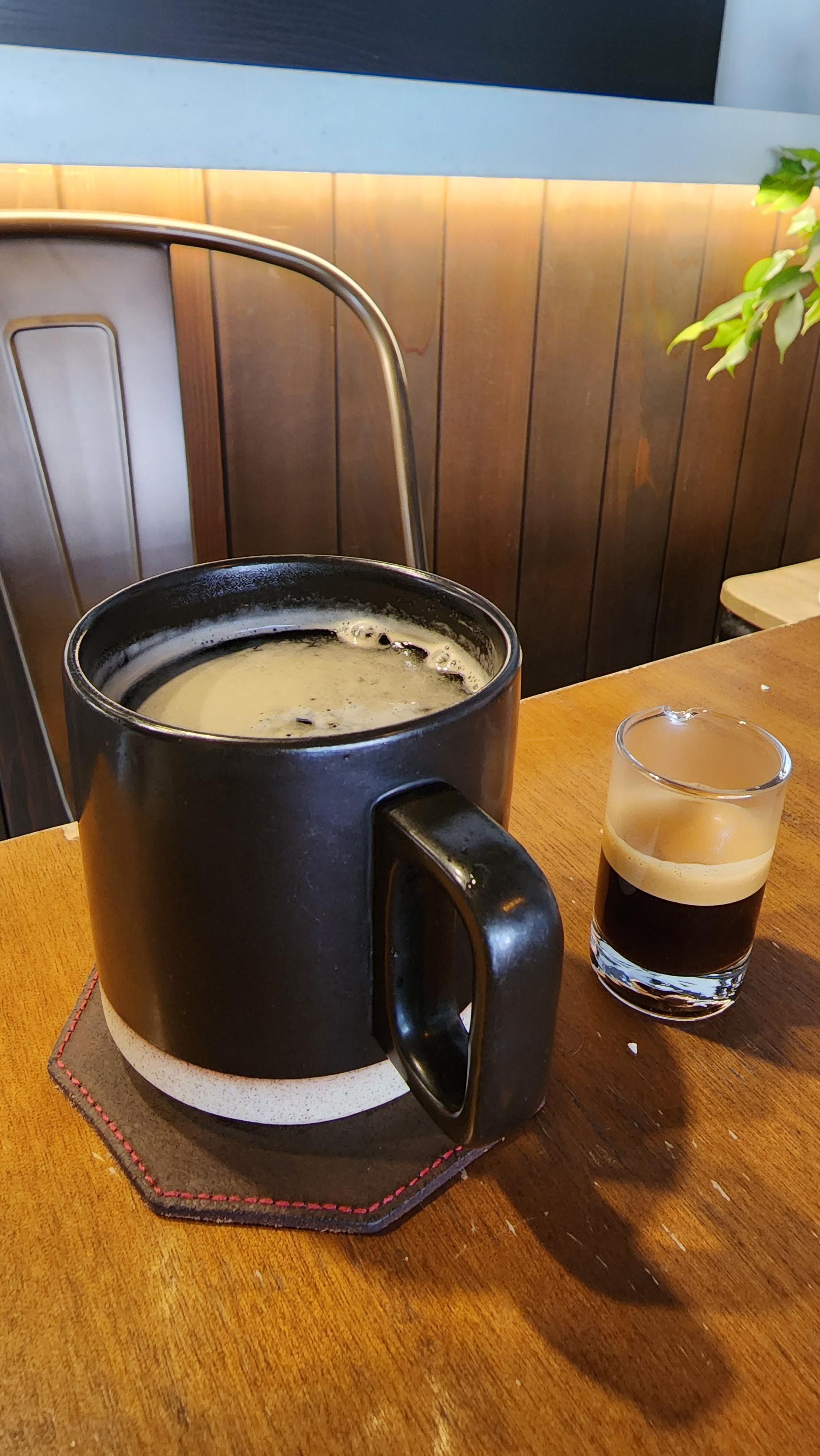 잠시 기다렸더니 나온 음료! 근데 샷 하나를 따로 주셨다.