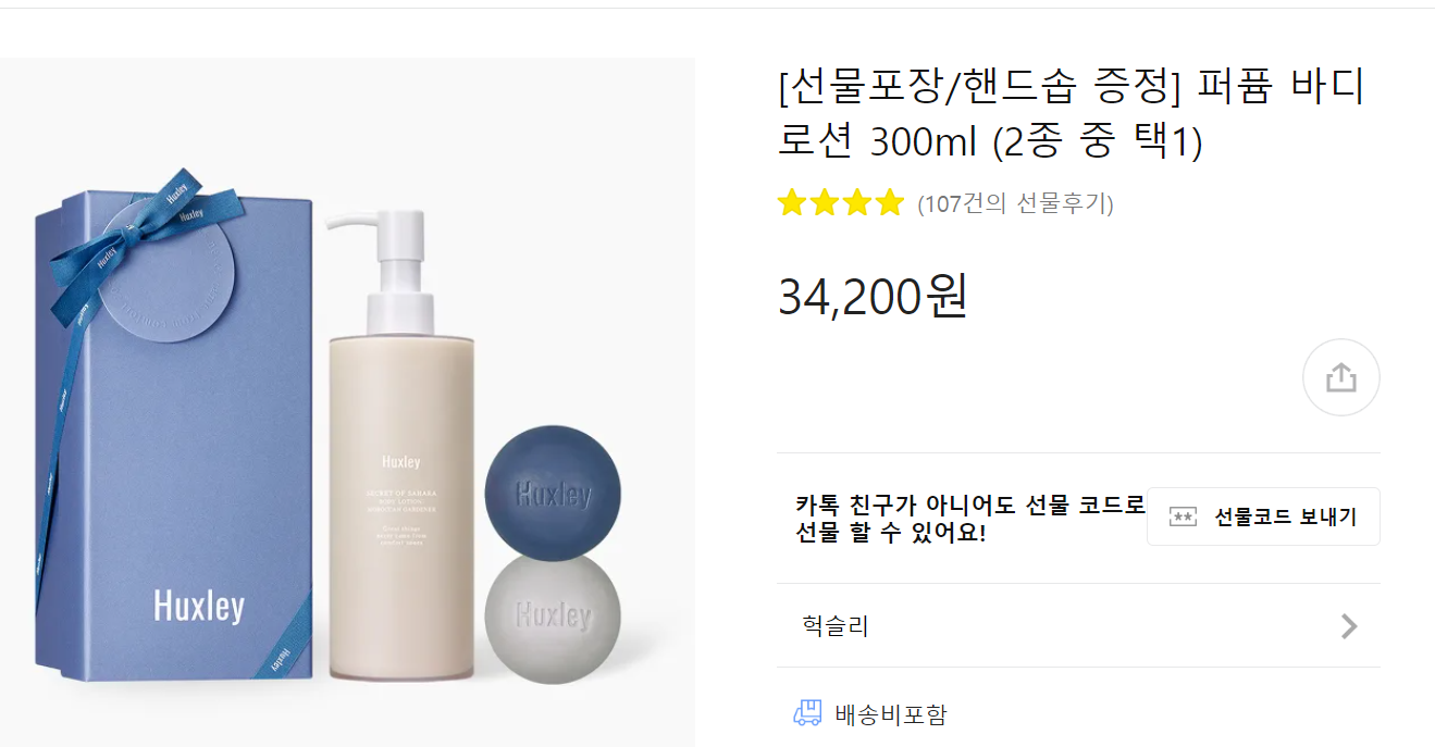 내가 선물받은 건 바로 이 상품이다. 정확한 이름은 "헉슬리 퍼퓸 바디로션"