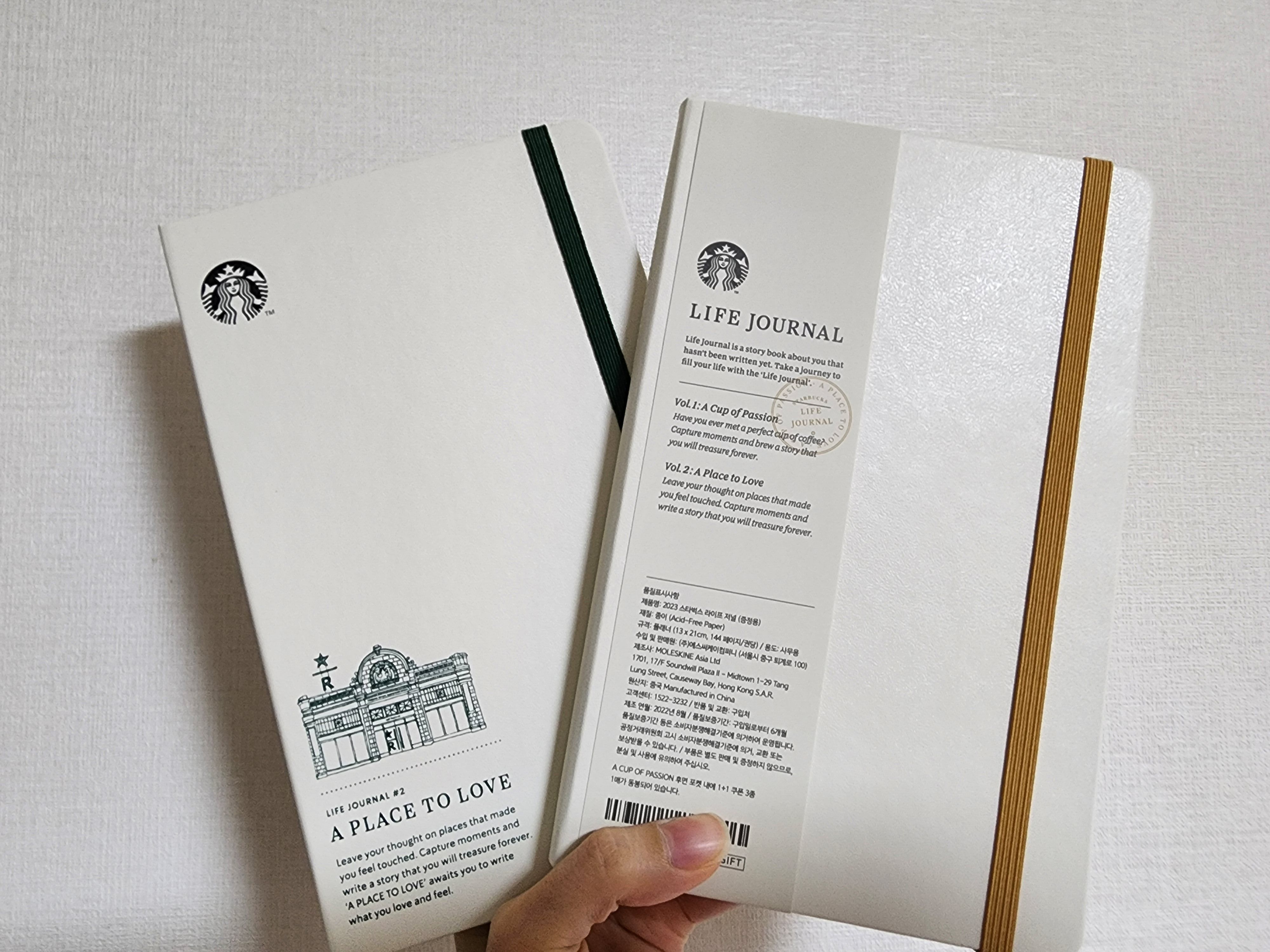 위 3가지 중 무엇을 선택할까 고민하다가 스타벅스에 가서 실물을 보기로 했다. 디자인이나 전체적인 느낌은 다이어리가 훨씬 더 예뻤다. 근데 다이어리의 경우 날짜가 모두 기재된 속지라서 다이어리를 쓰지 않는 나에게는 불필요하다는 생각이 들었다. 또한 무게감도 있기에 그냥 가볍게 들고 다니면서 메모하기에는 부적합하다는 생각이 들었다.