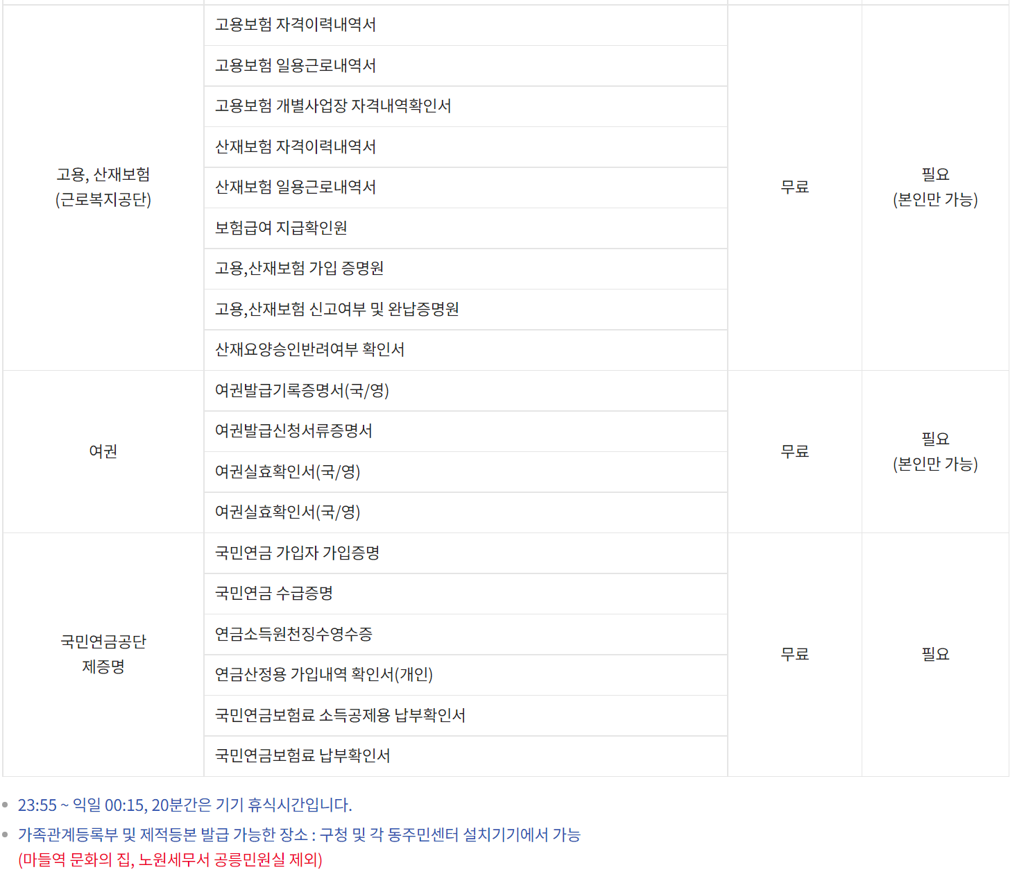 ※ 나는 노원 무인민원발급기를 소개해드렸지만 각 구청마다 동일한 자료가 잘 정리되어 있다.
