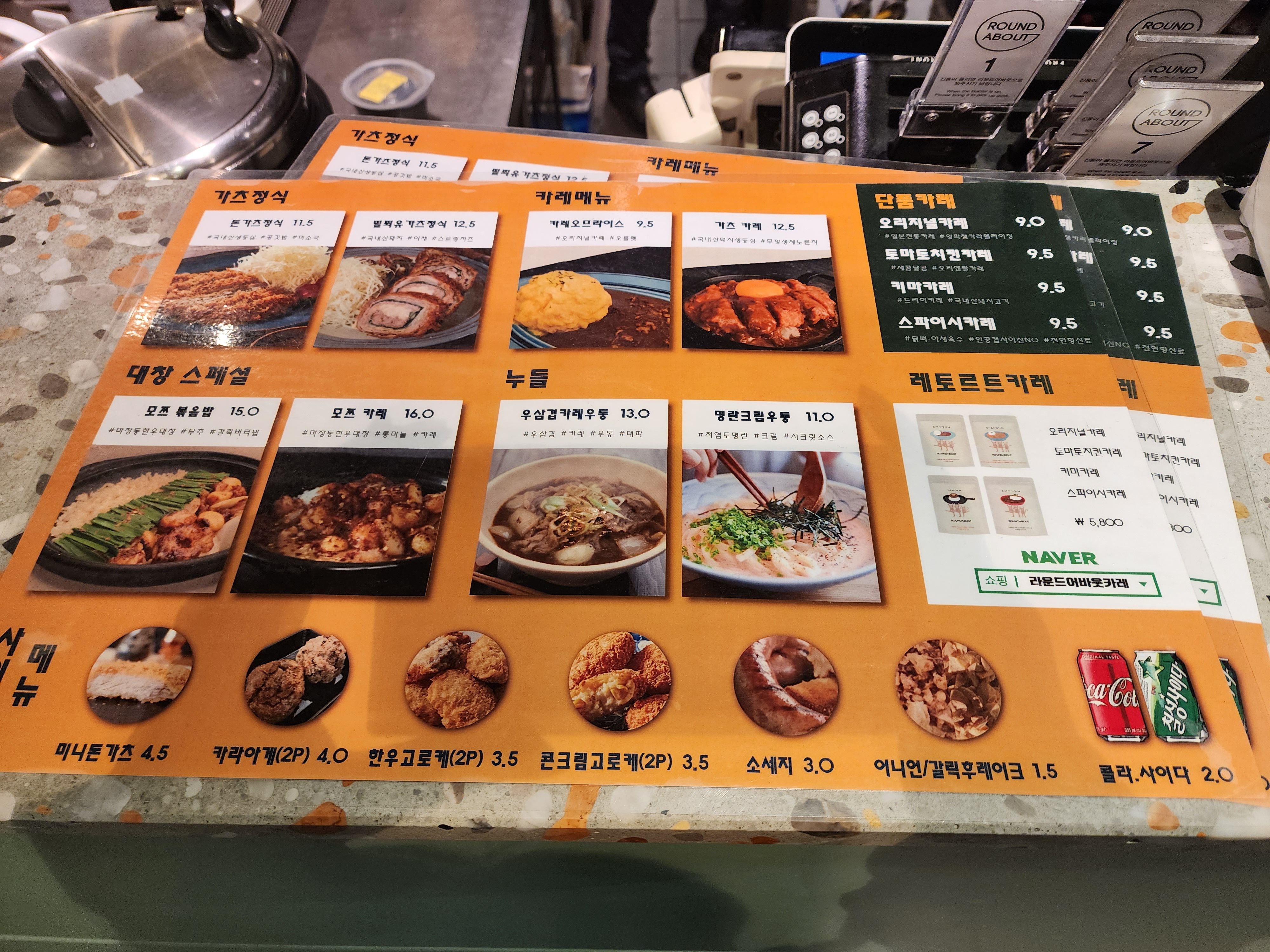 타임스퀘어에 가려고 했는데 사람이 너무 많아서 차선으로 간 신도림 디큐브시티! 어디서 밥을 먹을까 고민하다가 디큐브시티 지하에 있는 "라운드어바웃"이란 카레집에 가게 되었다. 모츠(대창)을 이용한 메뉴도 있고 나름 일반 카레가 아닌 카레(?!)를 취급하는 곳이라서 후기를 들려드리려고 한다.