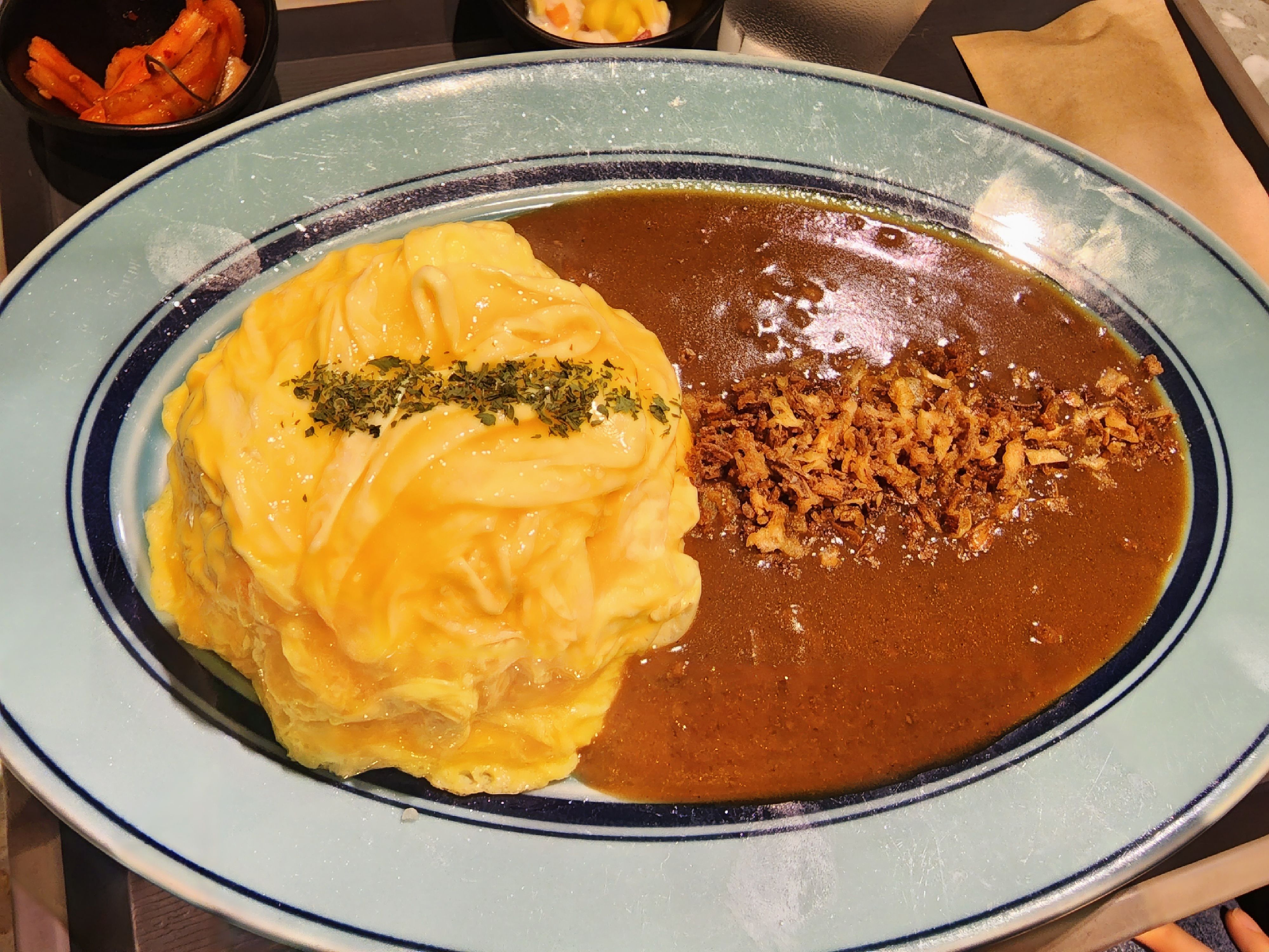 기다리다 보니 메뉴가 나왔다. 먼저 남자친구가 시킨 카레오므라이스! 진짜 사진이랑 똑같다고 보시면 된다. 남자친구한테 물어보니 엄청 맛있다!!! 이건 아니고 그냥 먹을만하다고 괜찮았다고 이야기해 줬다.