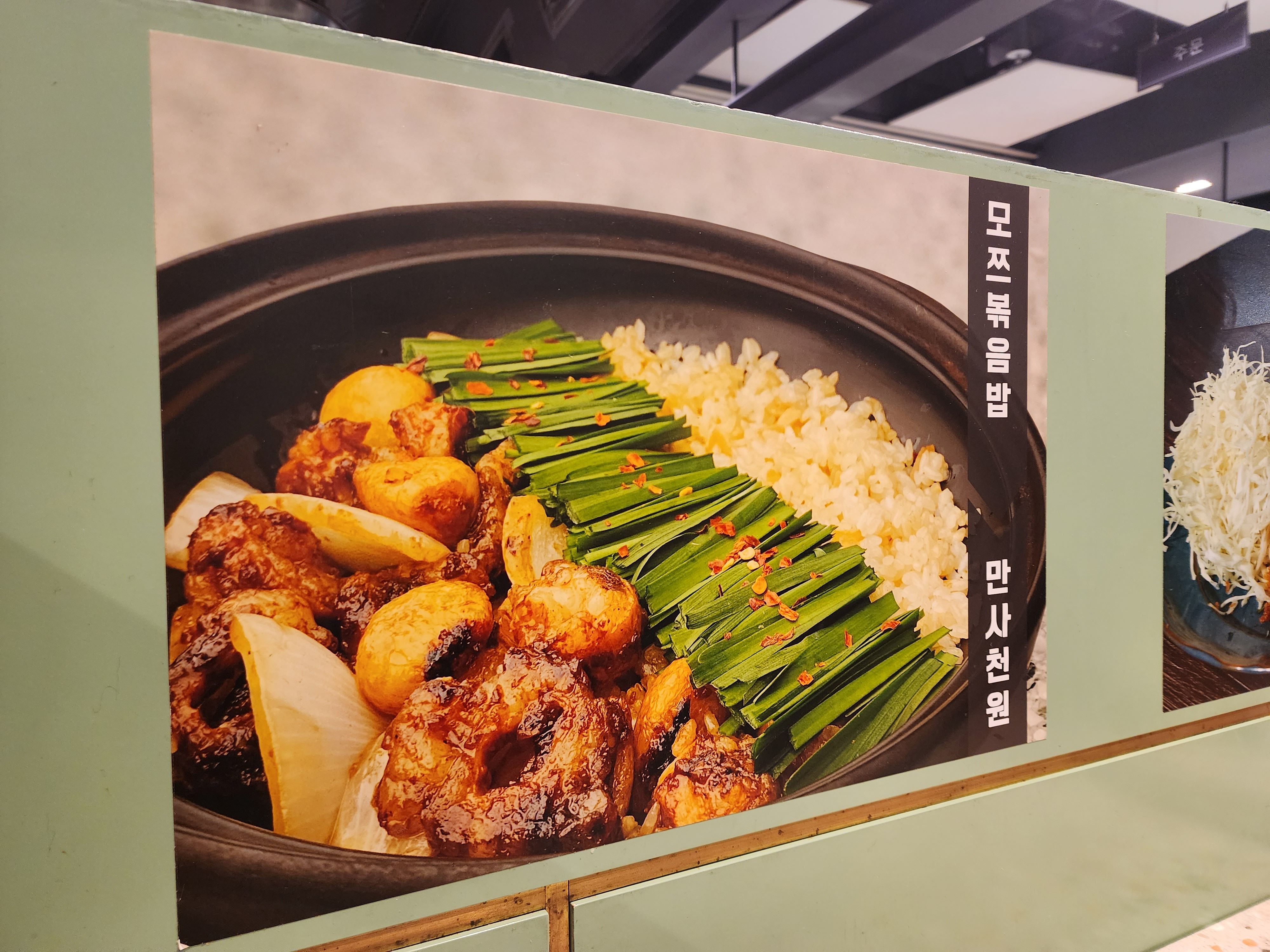 주문을 하고 자리에 앉으니 앞쪽에 메뉴 그림들이 보였다. 보고 있으니 더 배고픈 느낌😁 아무리 봐도 여기는 모쯔 메뉴가 대표인 것 같으니 다음에는 도전해 봐야지! 이런 생각을 하면서 기다렸다.