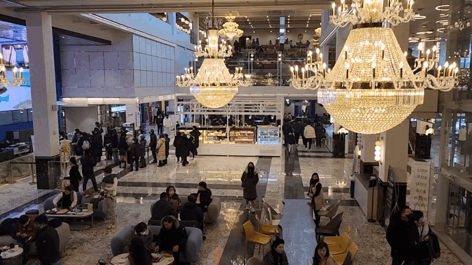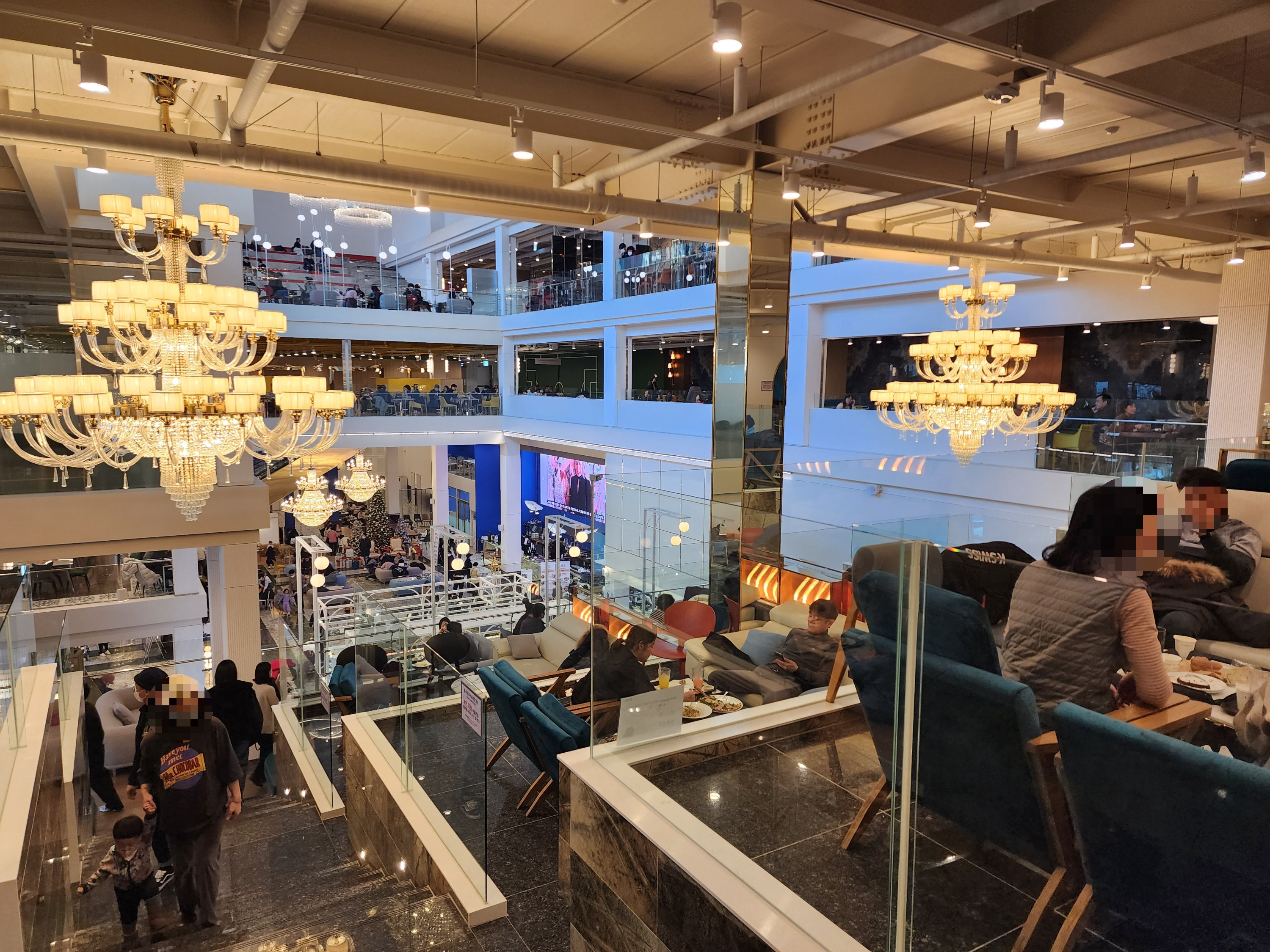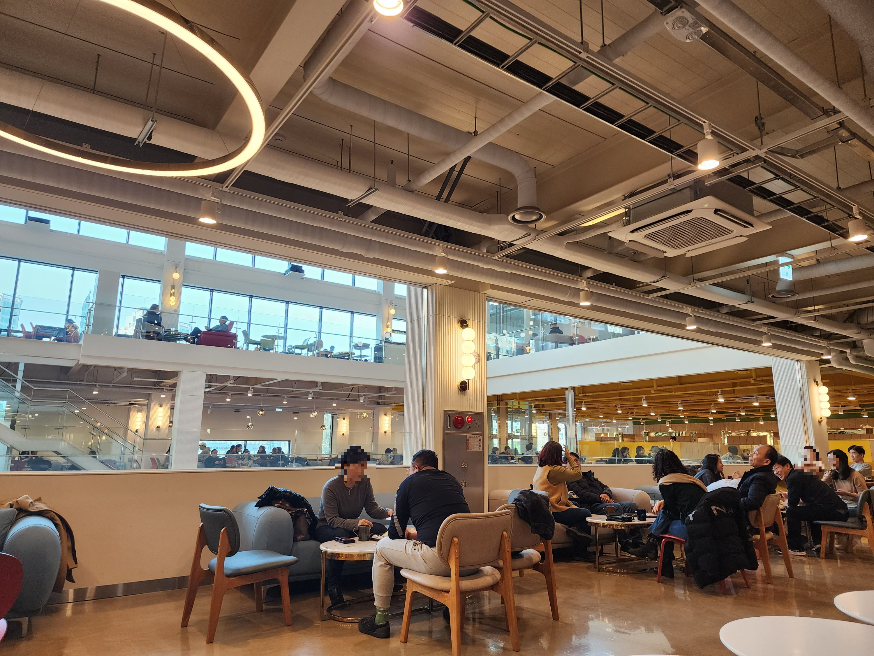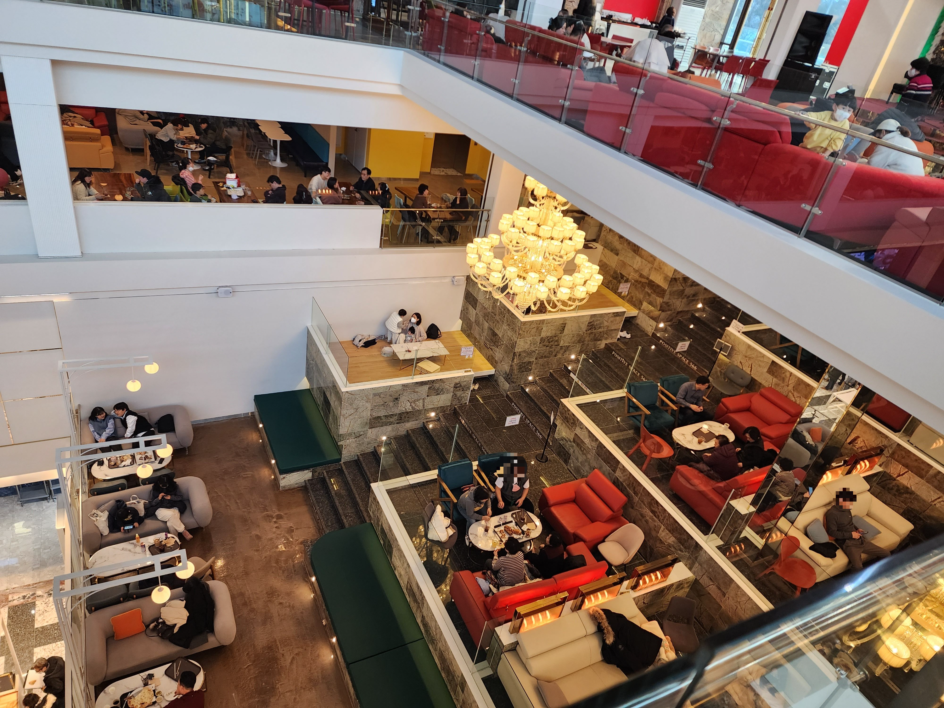 유리칸 공간을 위에서 보면 요런 느낌! 좌식으로 된 공간들도 있는데 여긴 대부분 아이가 있는 가족, 어르신이 있는 가족들이 이용하고 있었다. 안전하면서 편하게 이야기하기 좋은 공간이라 그런지 인기가 매우 많았다.