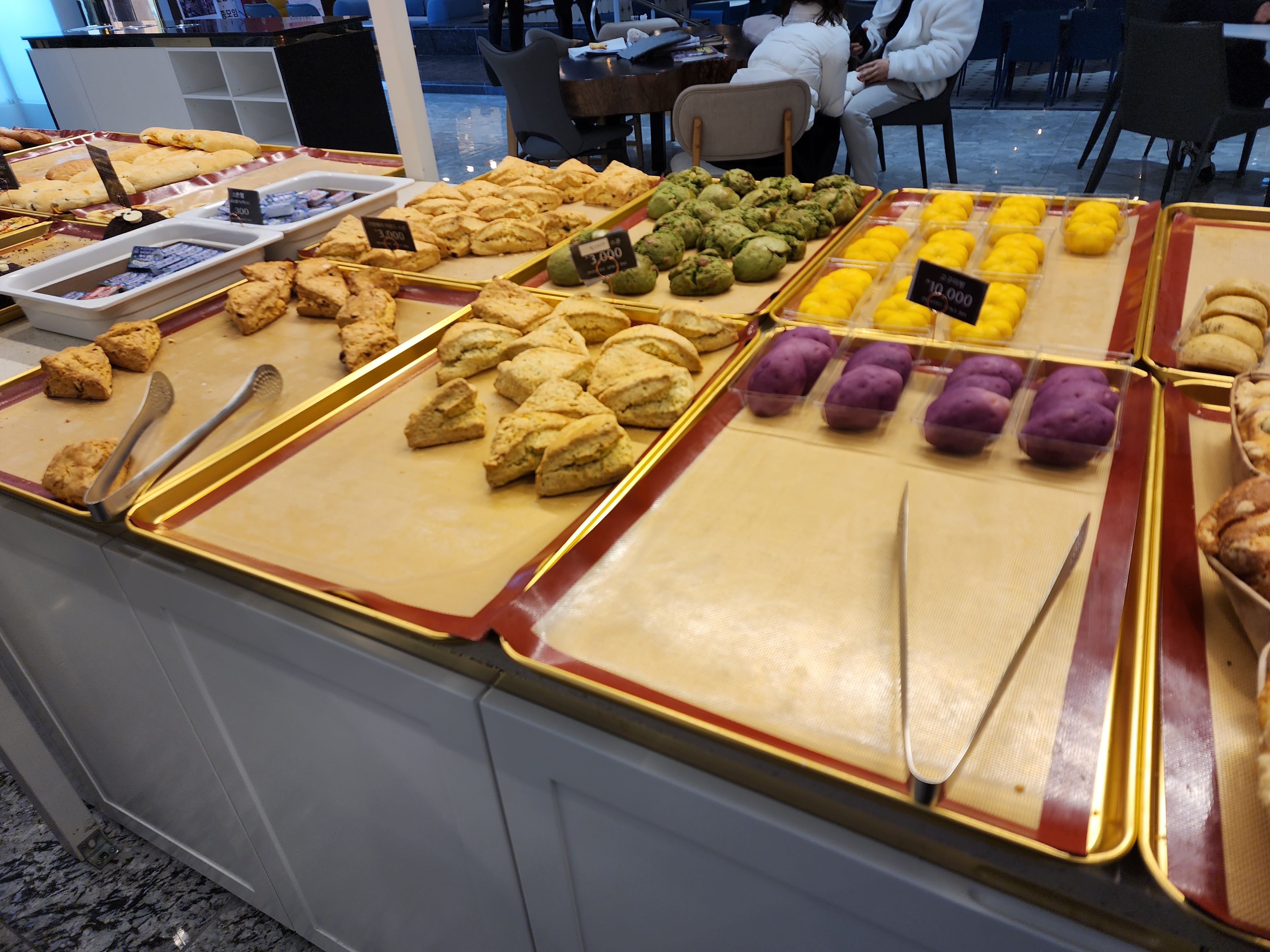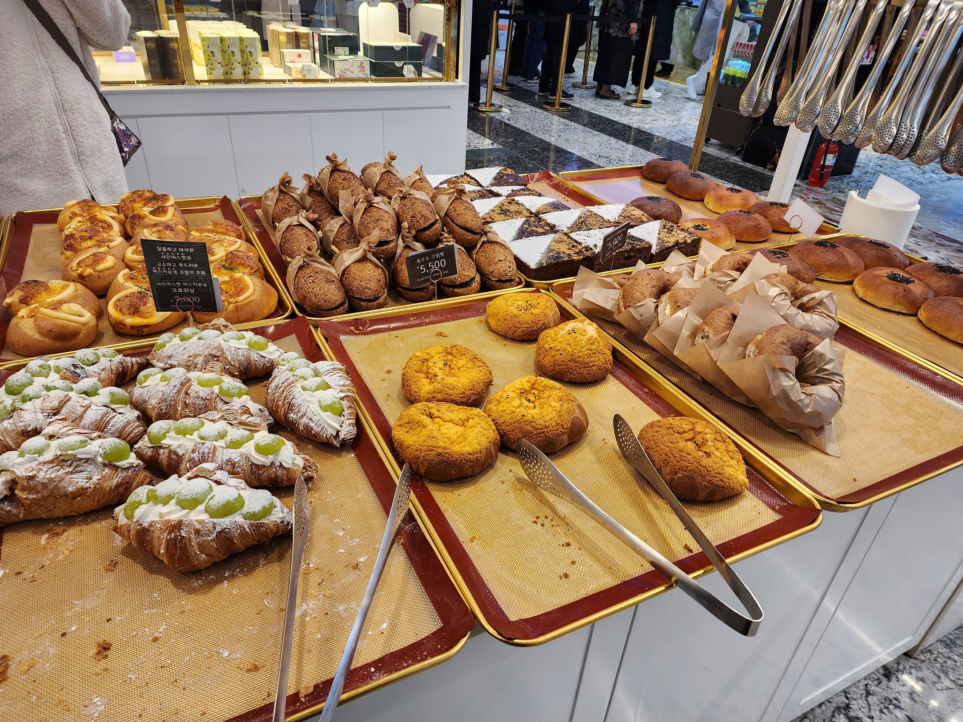 나는 주문하지 않았지만 빵도 꽤 다양한 편이었다. 사람들이 워낙 많아서 꾸준히 빵을 새로 채워 넣고 계셨다. 근데 위생적인지는...글쎄 잘 모르겠다. 공간이 비위생적인 건 아닌데 사람이 워낙 많이 다니는데 빵이 그대로 노출되어 있어서 별로 먹고 싶은 생각이 들지 않았다.