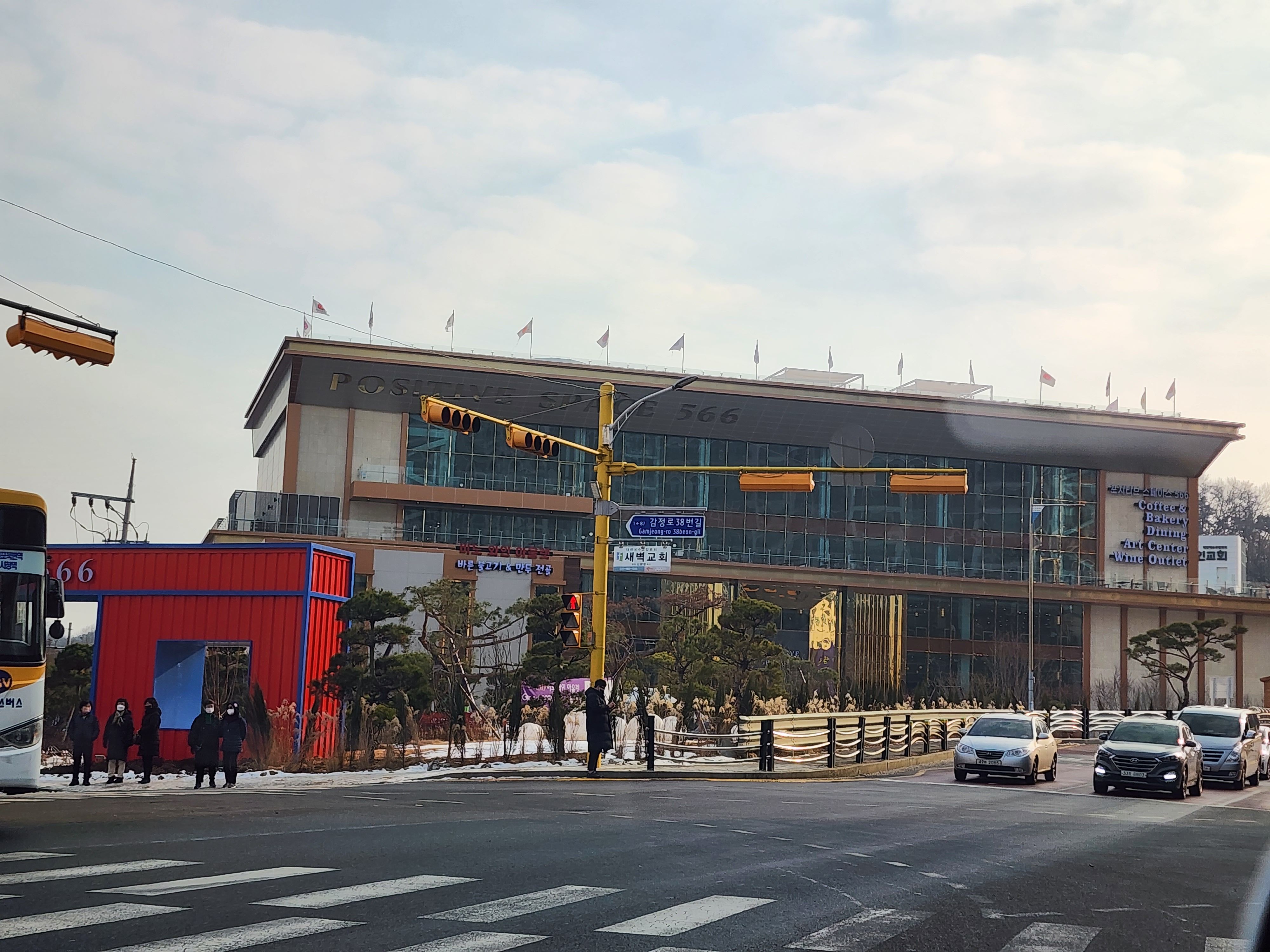 김포 대형카페 포지티브스페이스 가는 길! 웨딩홀? 백화점? 정도의 크기라서 진짜 멀리서도 한눈에 보인다. 아래 사진에 보이는 건물 전체가 카페이다. 우리나라에서 가장 큰 카페임이 확실하구먼!