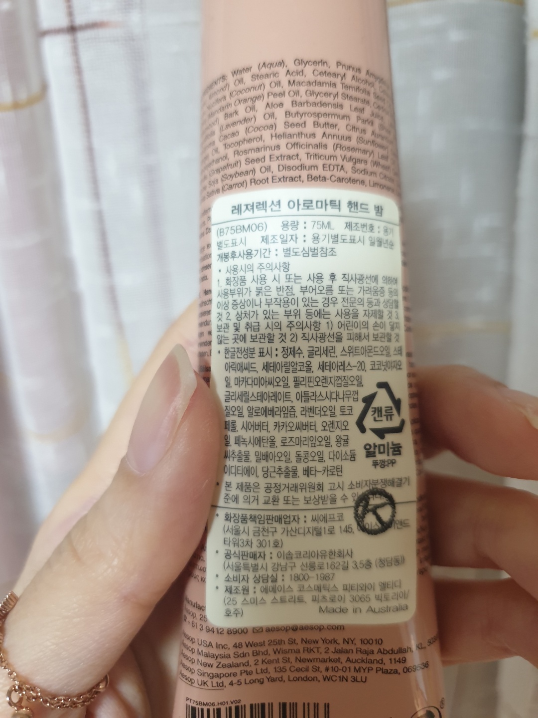 ② 손을 자주 씻어서 그런지 매우 건조하다. 어떤 핸드크림은 발라도 금방 건조해지는 경우가 많은데, 이솝의 경우 바르기 적절한 정도의 꾸덕함이지만 건조함을 잘 잡아준다.
