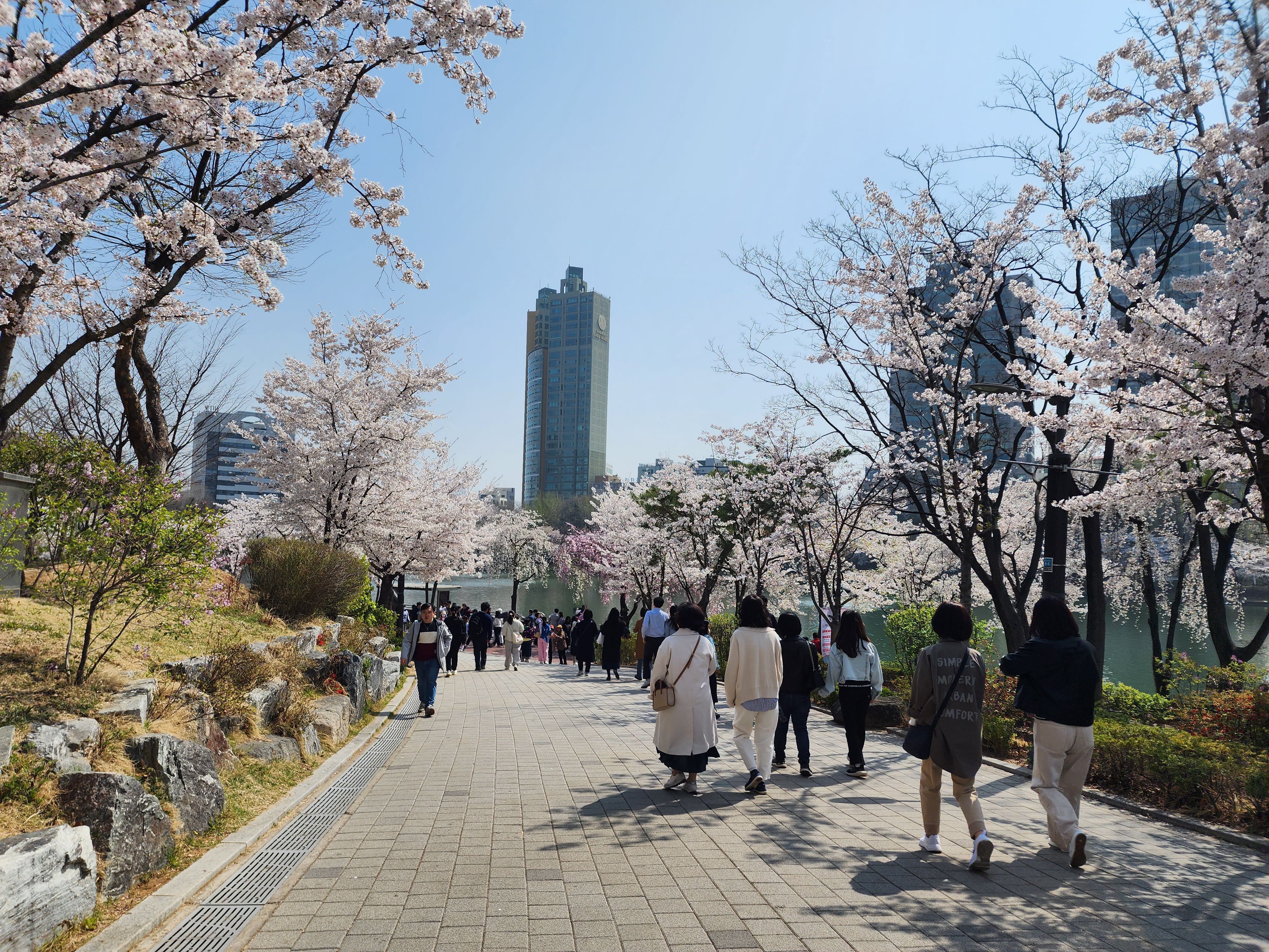 당시 날씨가 너무 좋고 벚꽃이 예쁘게 피었을 때라 석촌호수에 사람이 엄청 많았다. 평일 11시 30분인데도 이렇게 사람들이 많다니 나만 일하는 건가 놀라고, 꽃이 예뻐서 놀라고 그렇게 식당까지 걸어갔다.