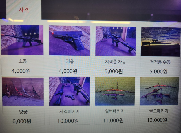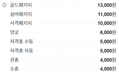 - 양궁+사격을 함께 할 수 있는 패키지: 골드패키지, 실버패키지
