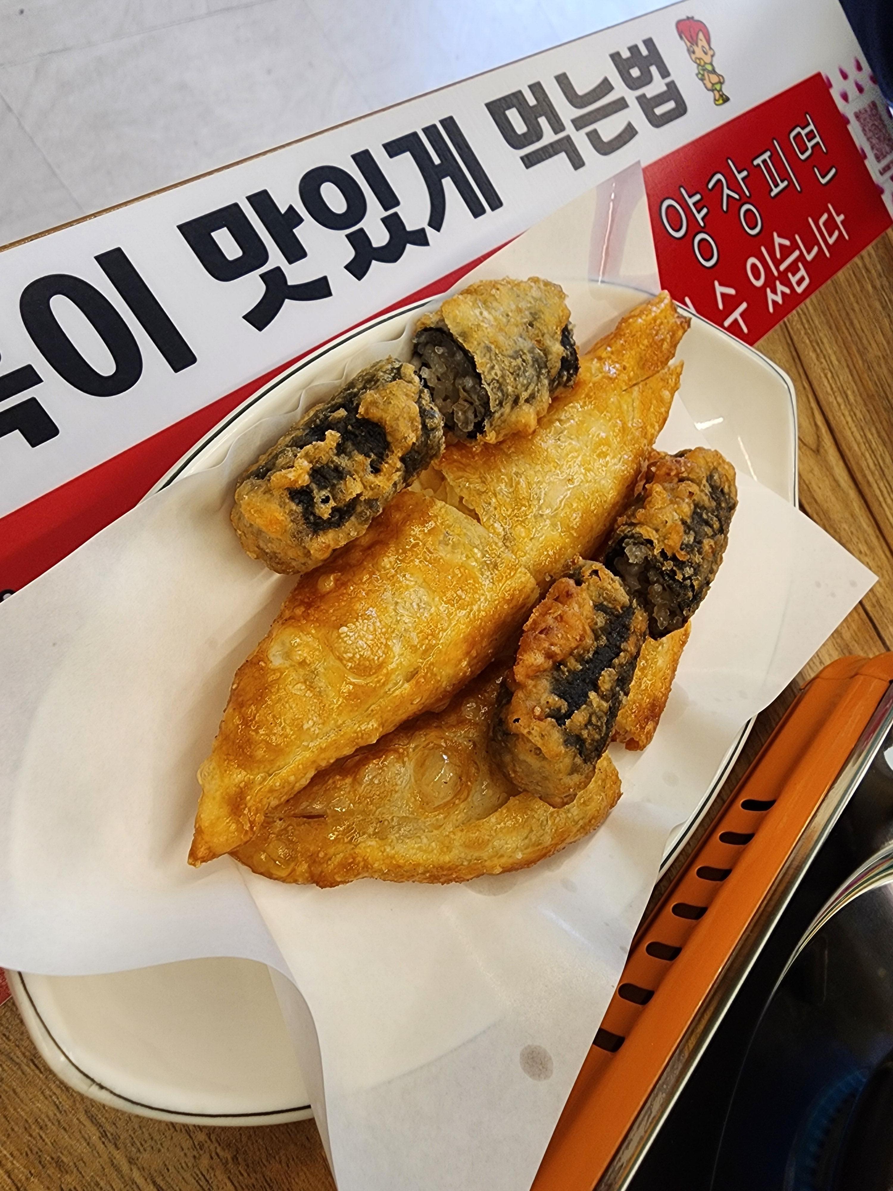 그 사이 나온 만두와 김말이.
