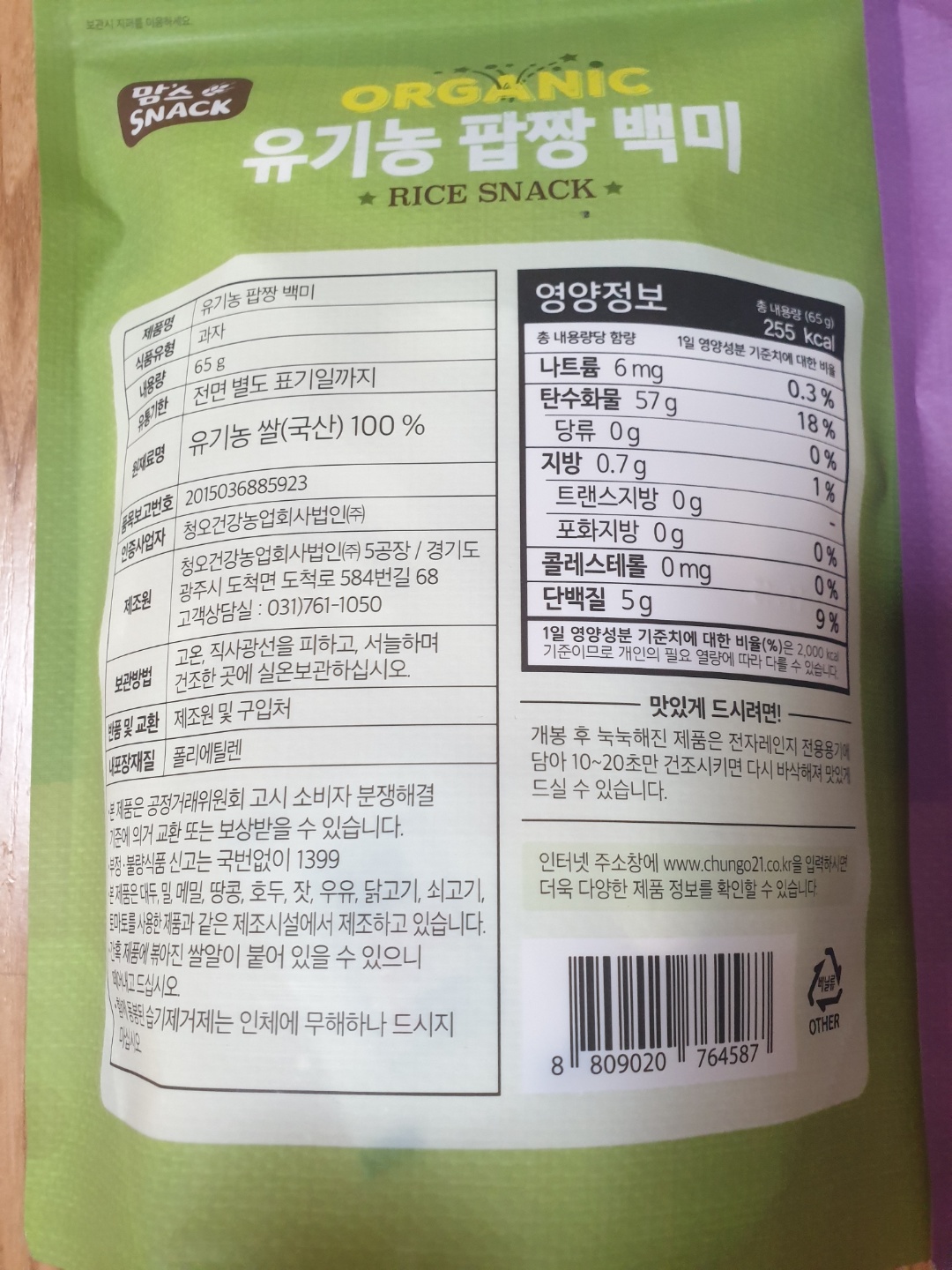 떡뻥은 아기들이 먹는 간식인데 종류는 다양하지만 대부분 쌀이 주요 성분이라는 점은 동일하다. '이거라도 먹어야겠다' 생각하면서 이마트에서 아기 과자 코너를 구경해보고 너무 놀랄 수밖에 없었다. 왜냐하면, 양은 적은데 가격은 엄청 비쌌기 때문이다. 그러다가 양에 비해 가격이 비교적 저렴한 유기농 팝짱을 알게 되었고, 지금도 과자가 당길 때에는 이걸 사 먹으려고 하고 있다.