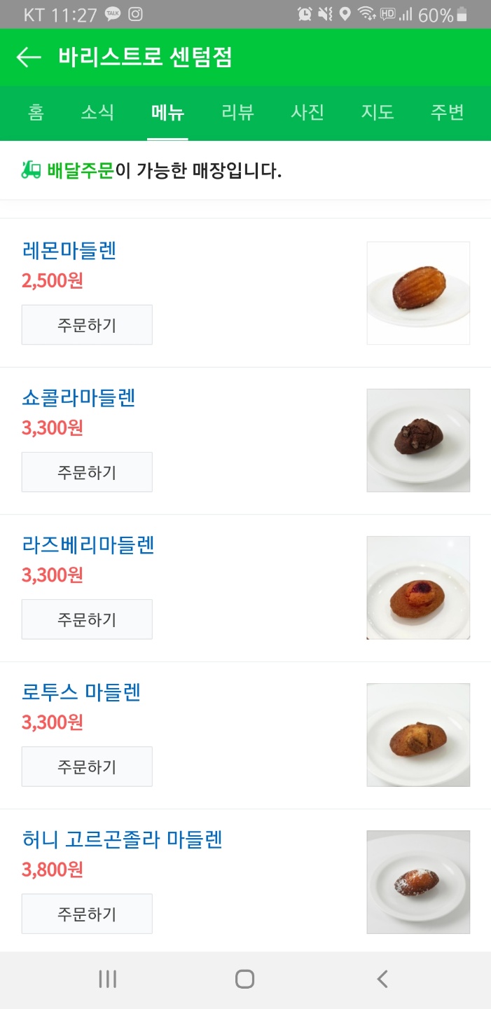 - 브런치 메뉴도 판매하고 간단하게 먹을 수 있는 마들렌 (레몬, 쇼콜라, 라즈베리, 허니 고르곤졸라 등), 에그타르트, 파운드 케이크도 판매한다. 특히, 마들렌 너무 맛있다 😝